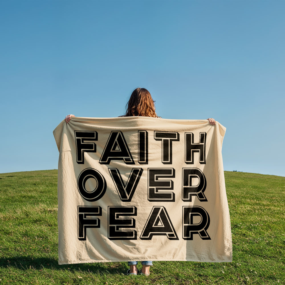 Faith Over Fear (Black with Cream Background) - Coral Fleece Blanket (4:3) - Gift for Her - Gift for Him