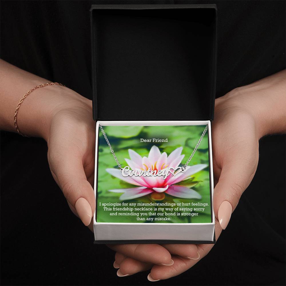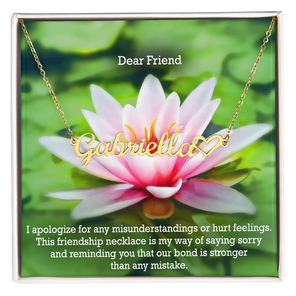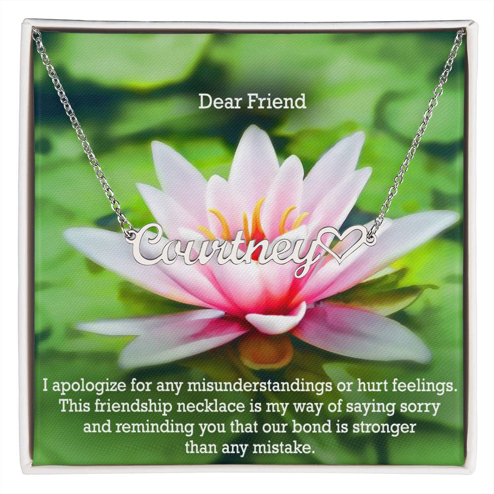 Dear Friend, I Apologize For Any Misunderstandings Or Hurt Feelings - Name Necklace + Heart Character with Message Card - Gift for Friend