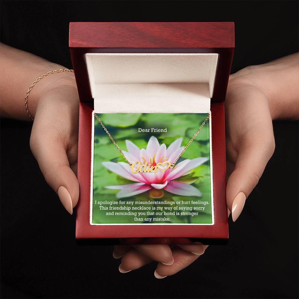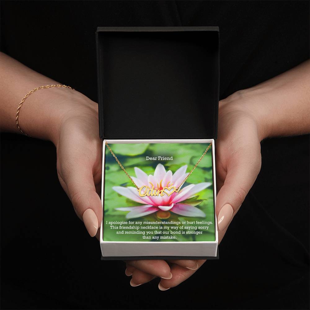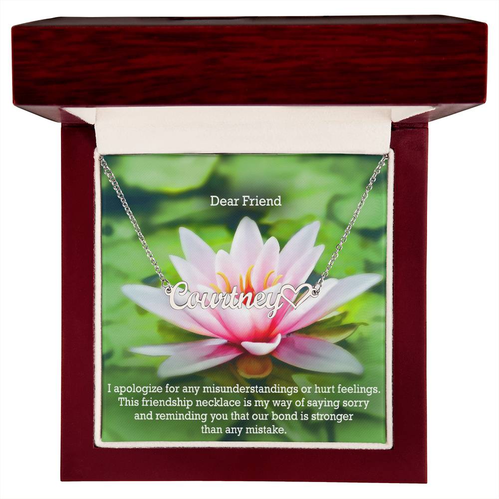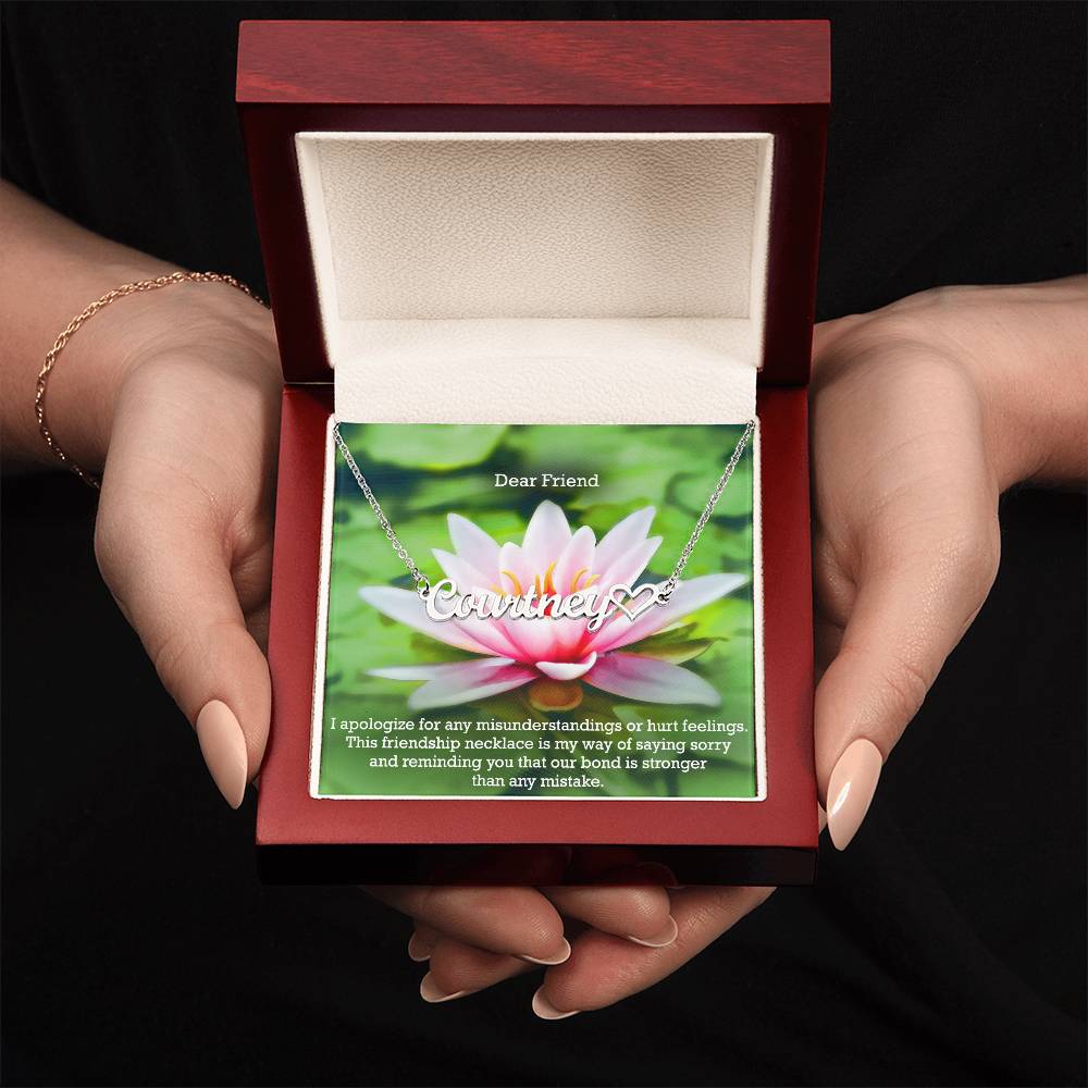Dear Friend, I Apologize For Any Misunderstandings Or Hurt Feelings - Name Necklace + Heart Character with Message Card - Gift for Friend