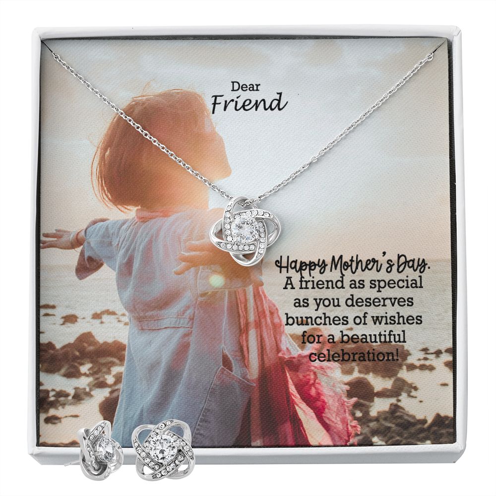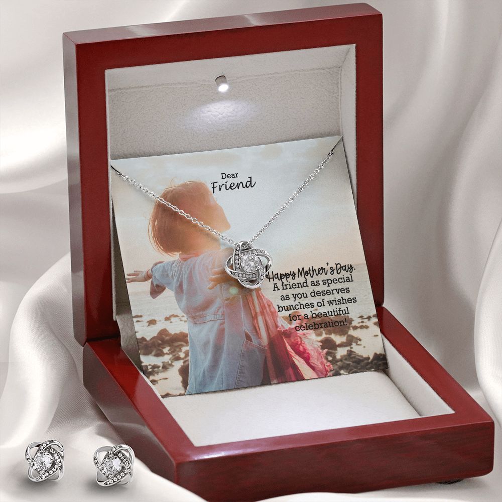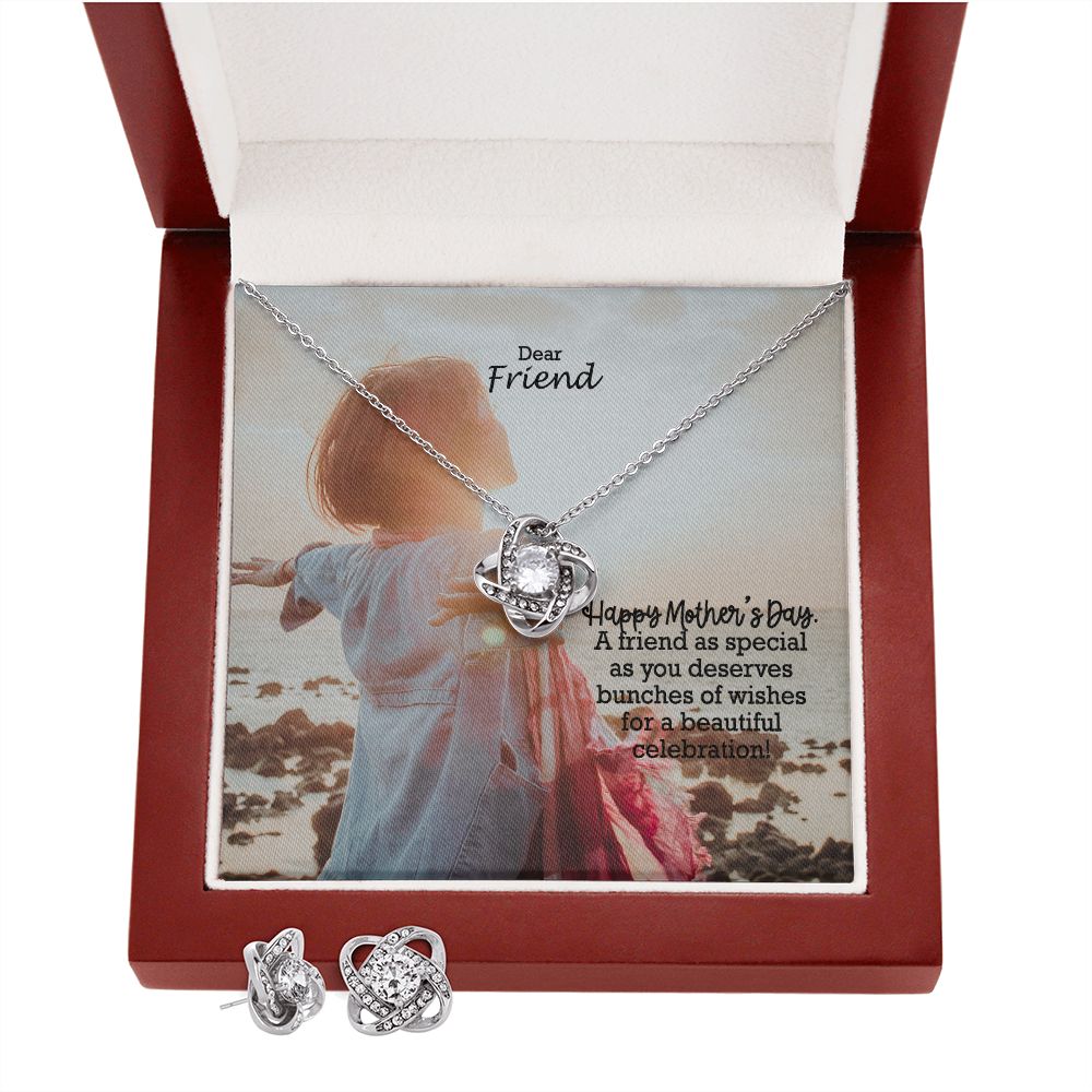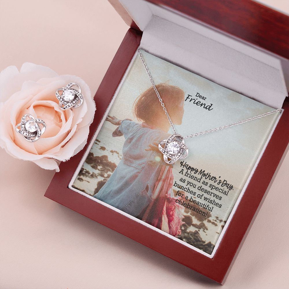 Happy Mother's Day! - A Friend As Special As You Deserves Bunches Of Wishes For A Beautiful Celebration - Love Knot Earring & Necklace Set - Gift for Friend