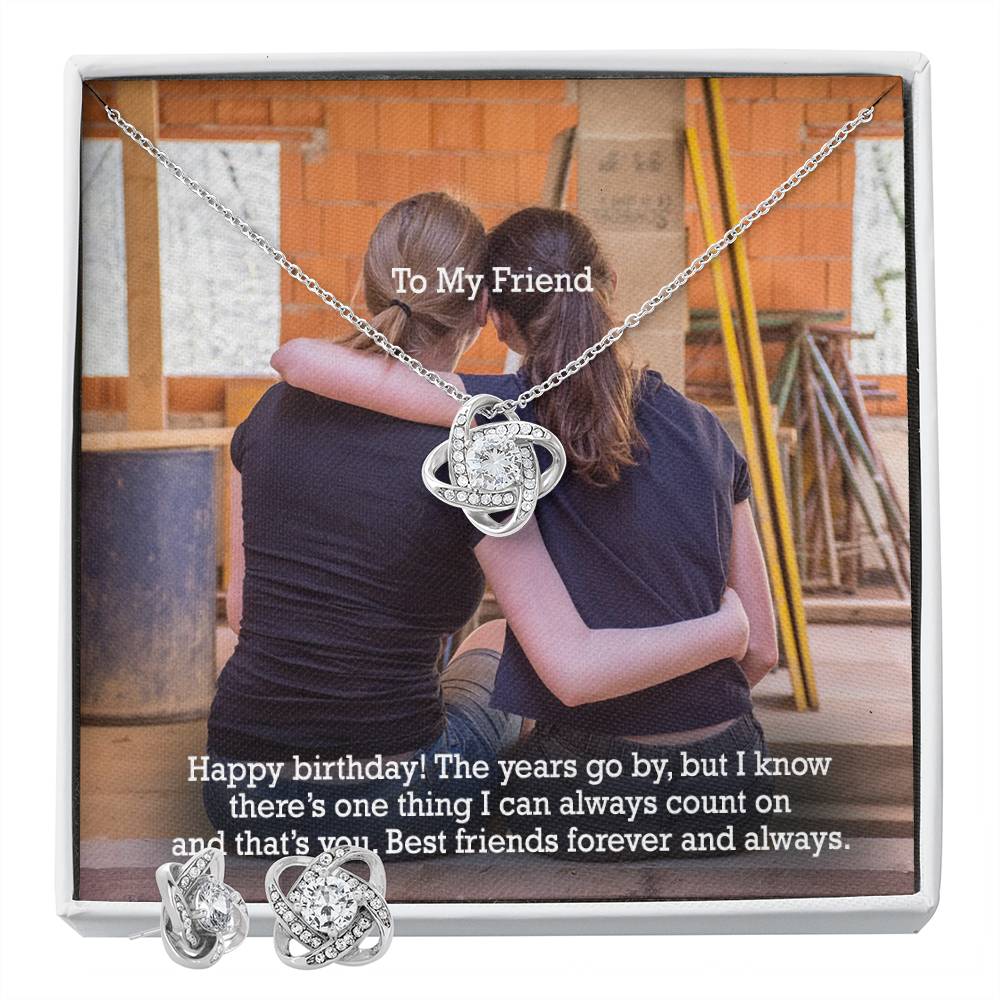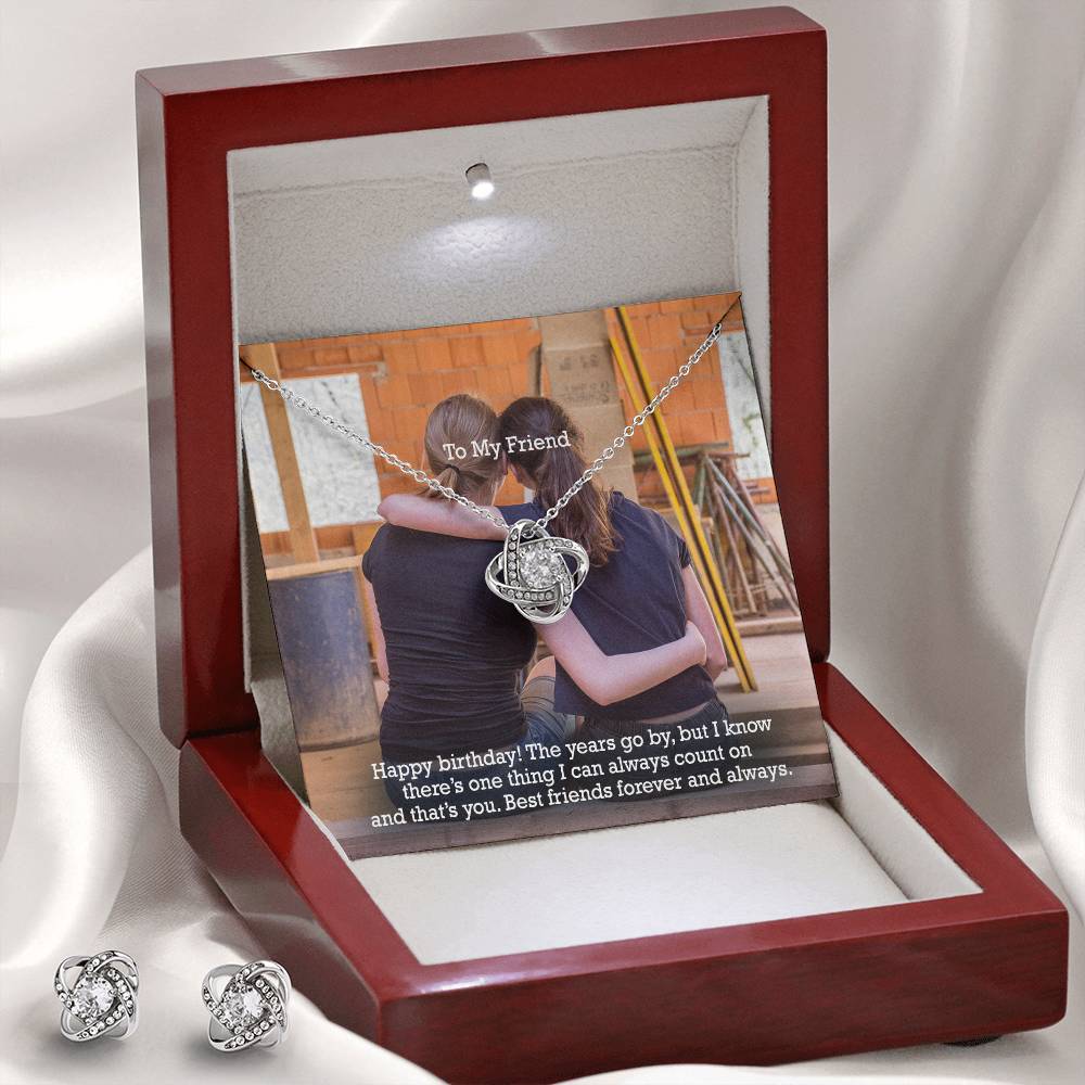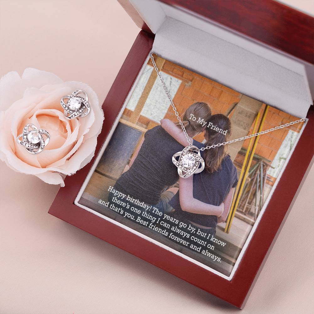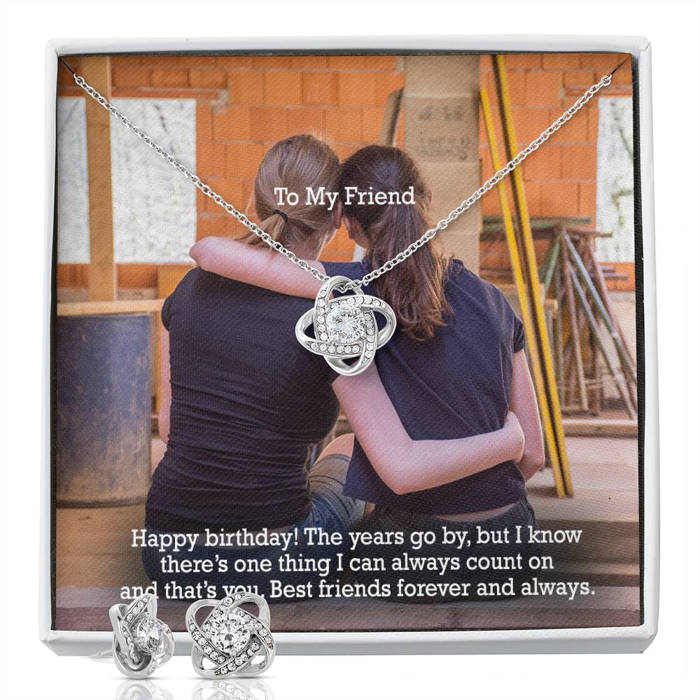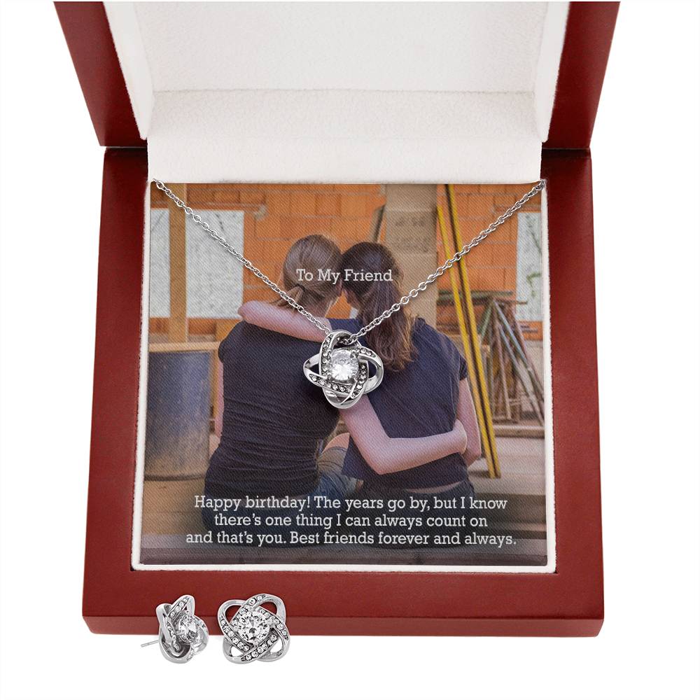 To My Friend, Happy Birthday! - The Years Go By, But I Know There's One Thing I Can Always Count On & That's You - Love Knot Earring & Necklace Set - Gift for Friend
