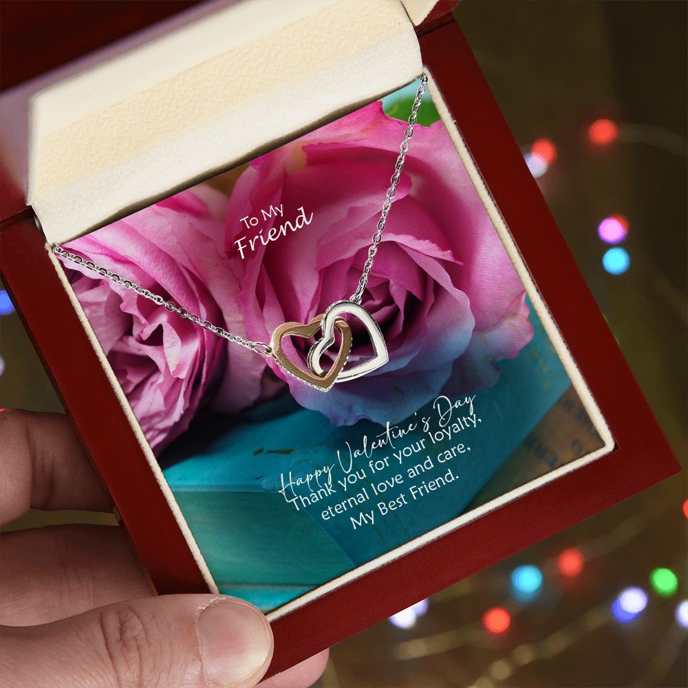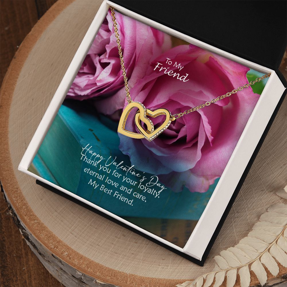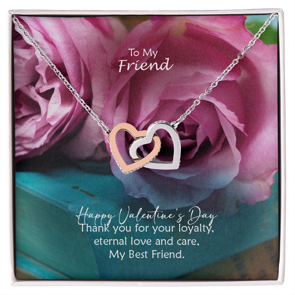 To My Friend, Happy Valentine's Day Thank You For Your Loyalty, Eternal Love & Care - Interlocking Hearts Necklace - Gift for Friend