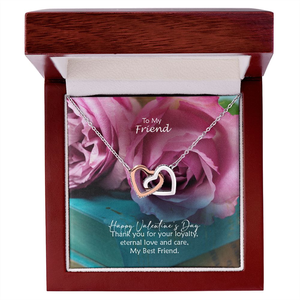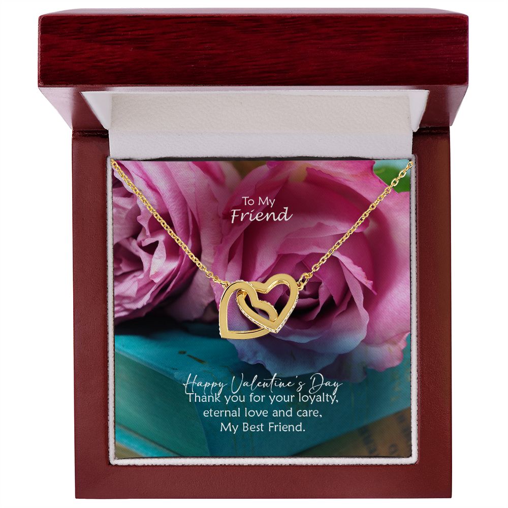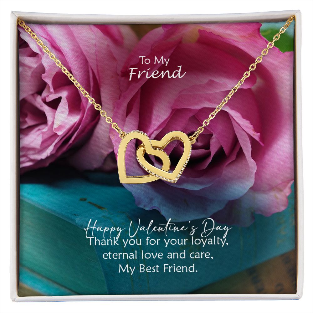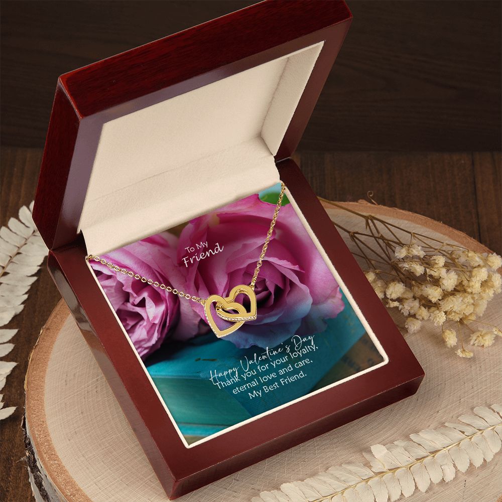 To My Friend, Happy Valentine's Day Thank You For Your Loyalty, Eternal Love & Care - Interlocking Hearts Necklace - Gift for Friend