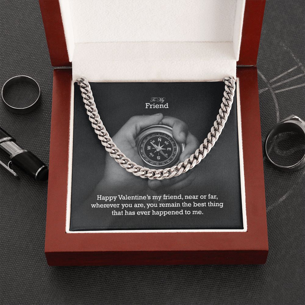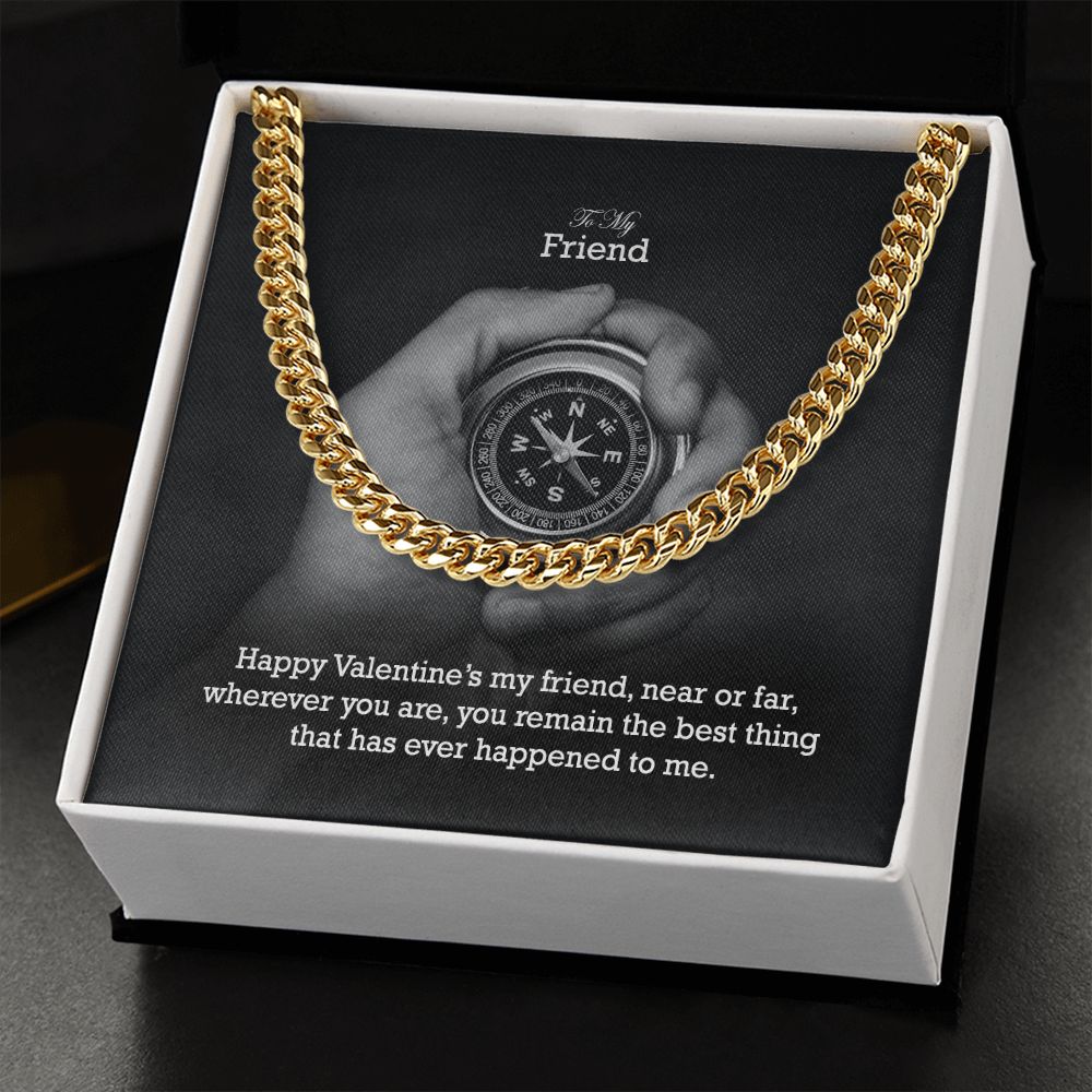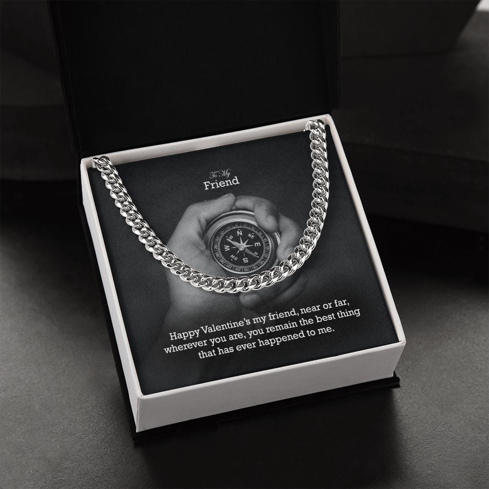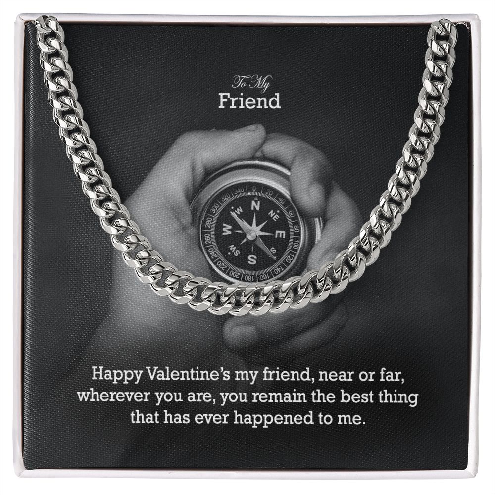 To My Friend, Happy Valentine's My Friend, Near or Far, Wherever You Are - Cuban Link Chain Necklace - Gift for Friend