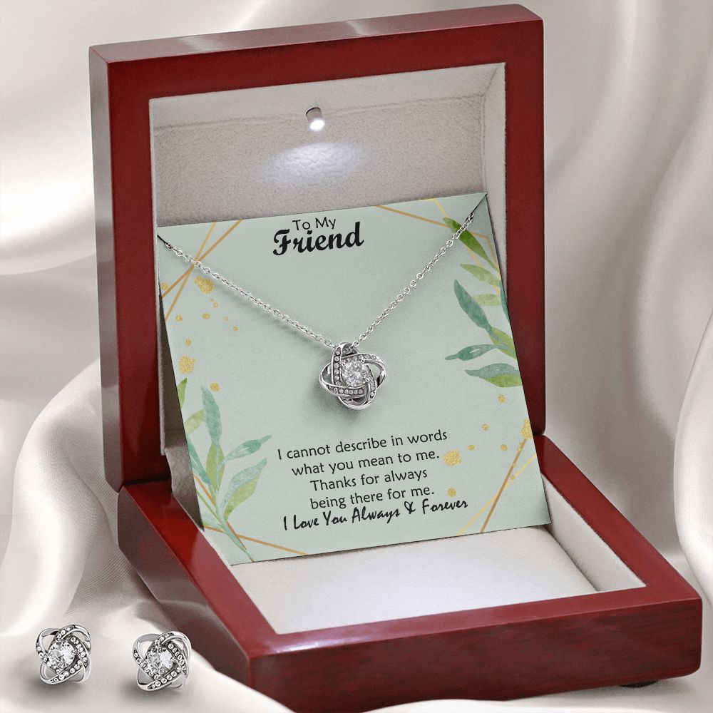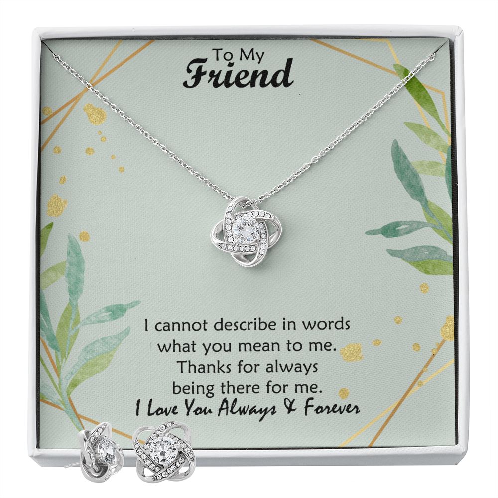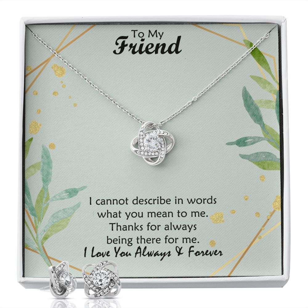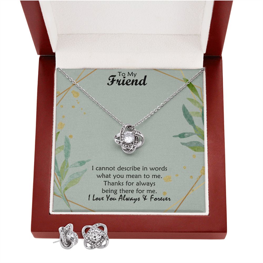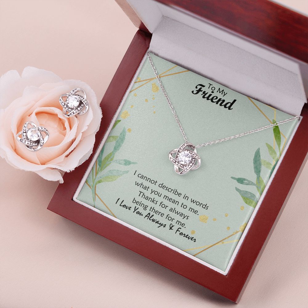To My Friend, I Cannot Describe In Words What You Mean To Me - Love Knot Earring & Necklace Set - Gift for Friend