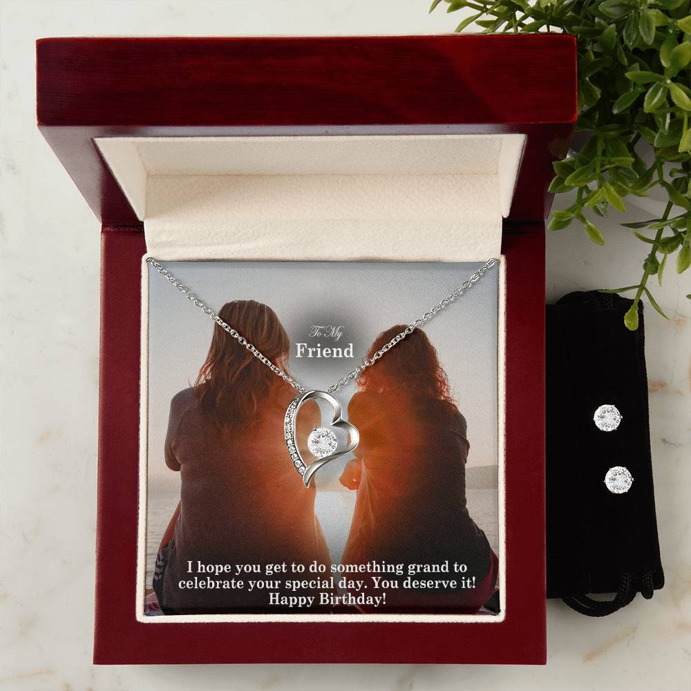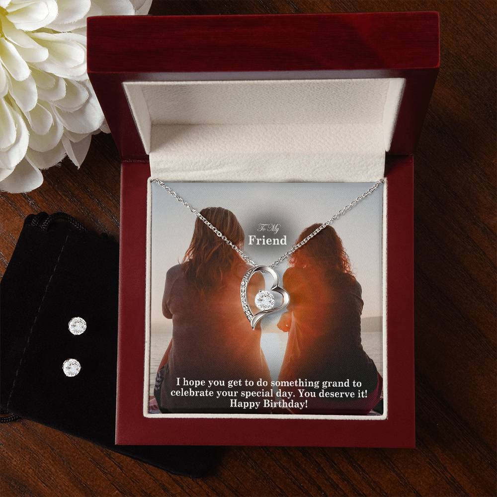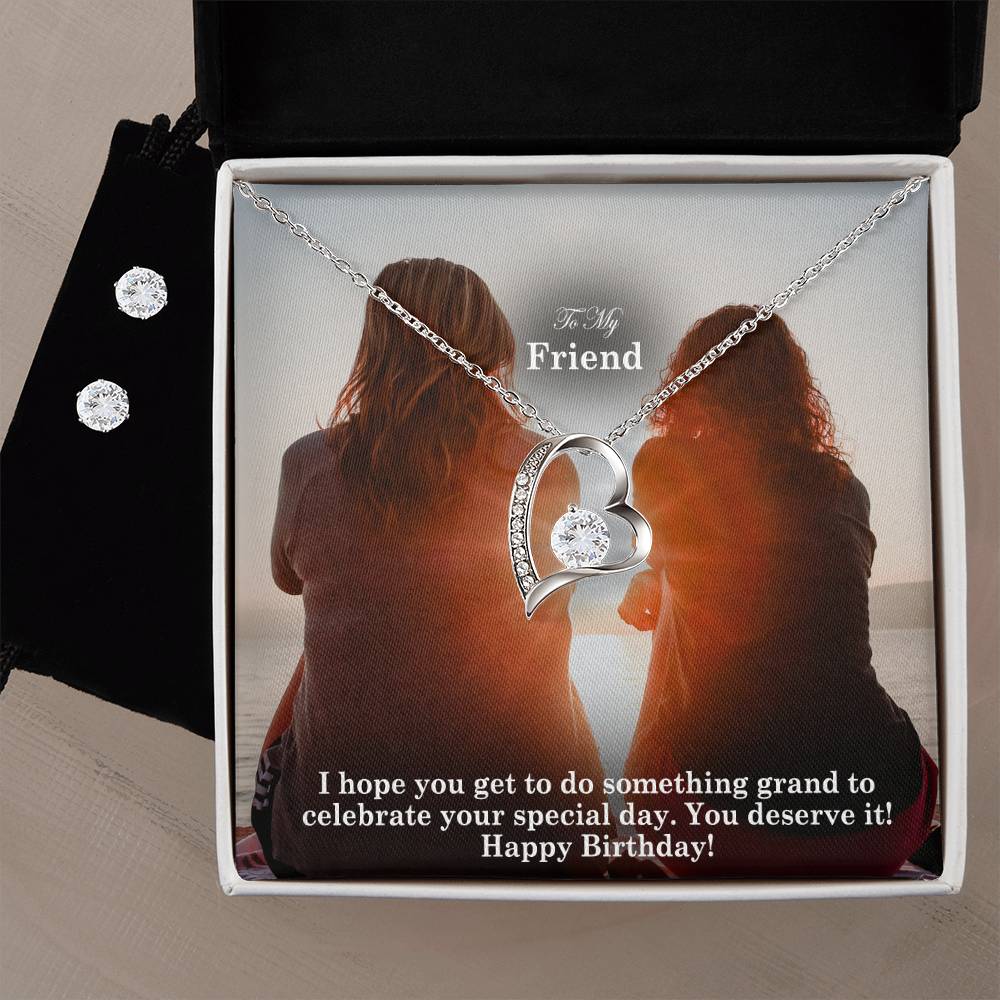 To My Friend, I Hope You Get To Do Something Grand To Celebrate Your Special Day - Happy Birthday - Forever Love Necklace & Clear CZ Earrings - Gift for Friend