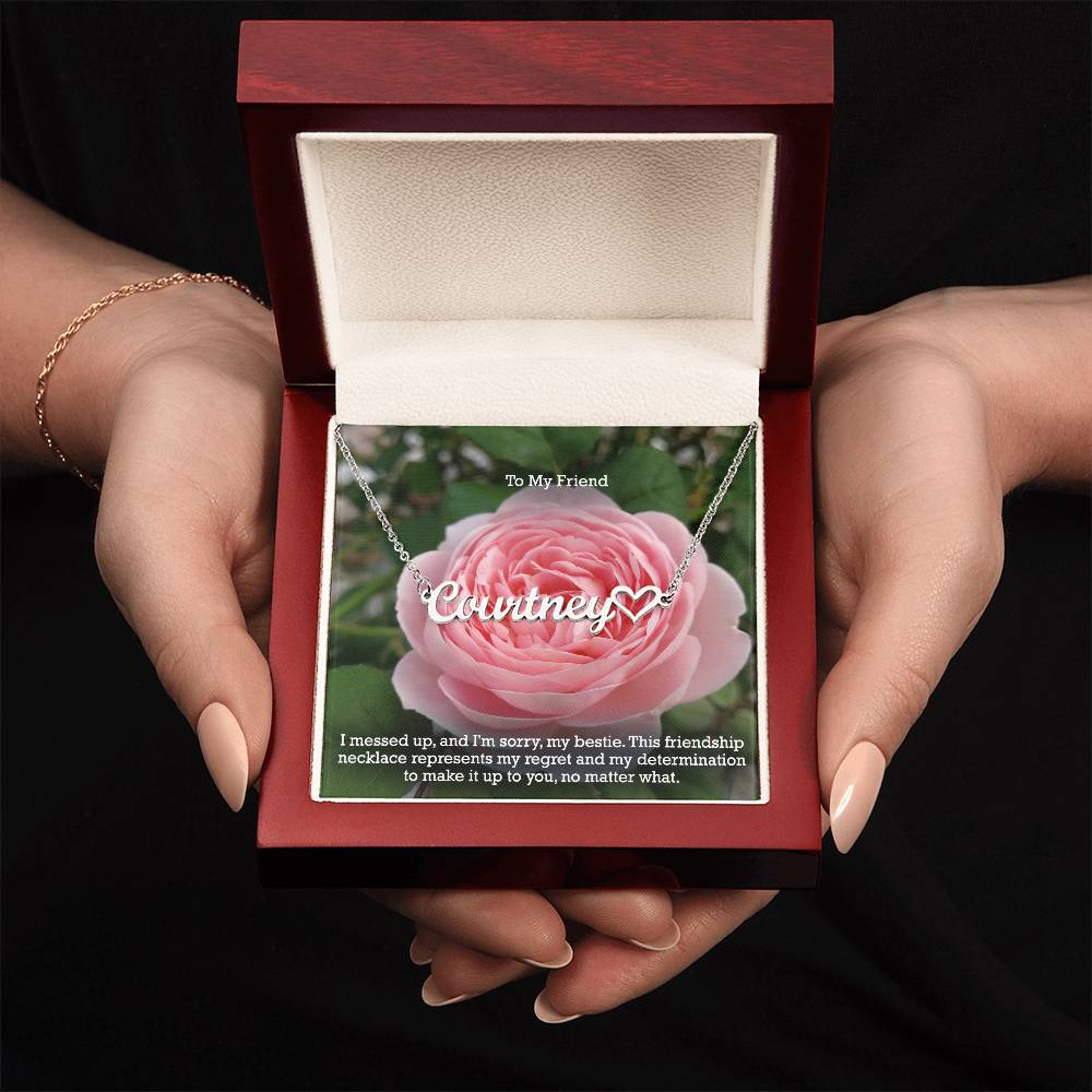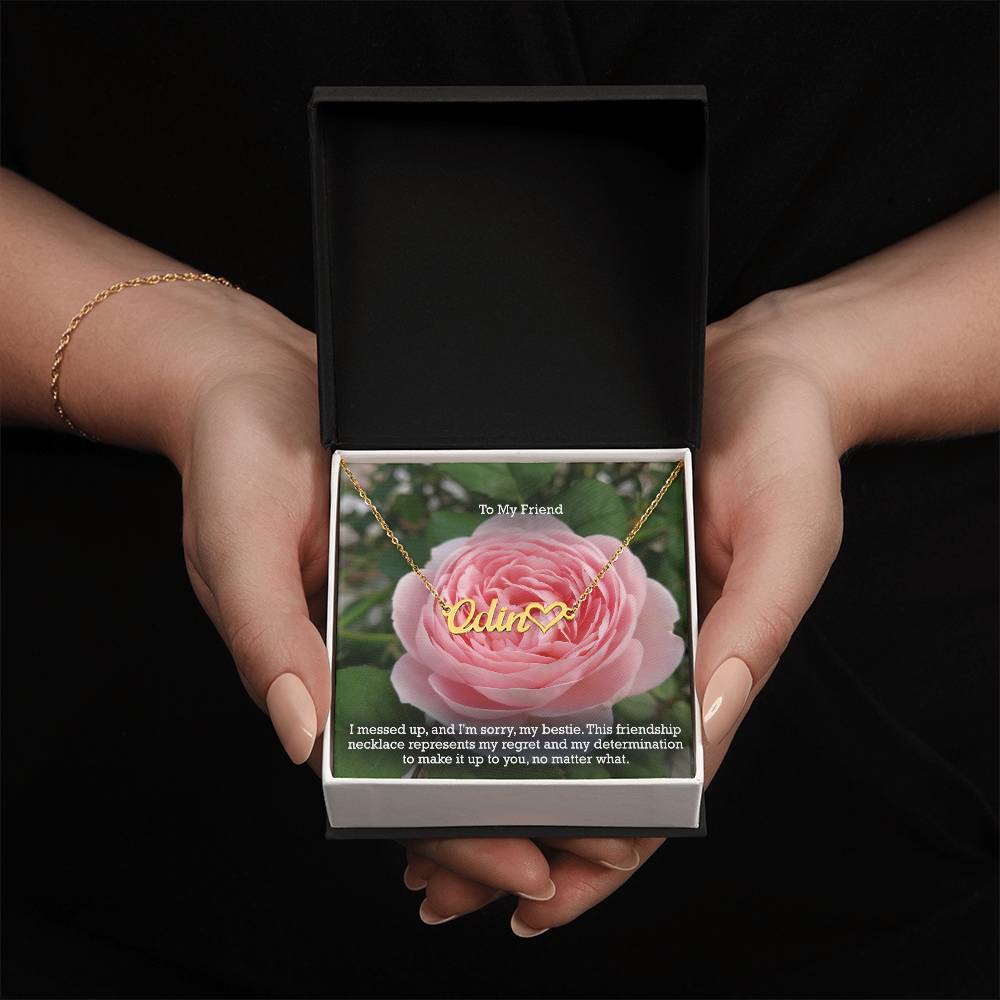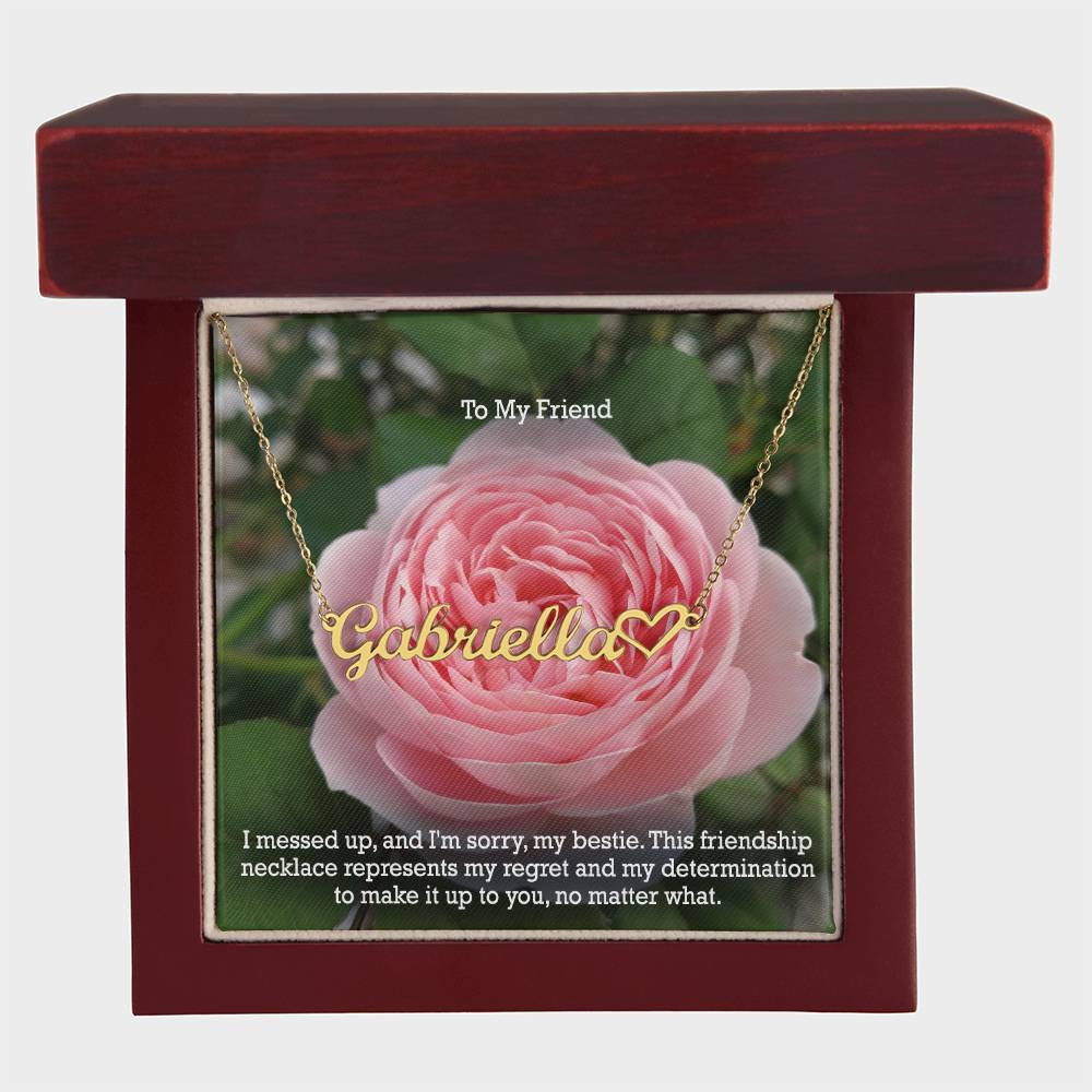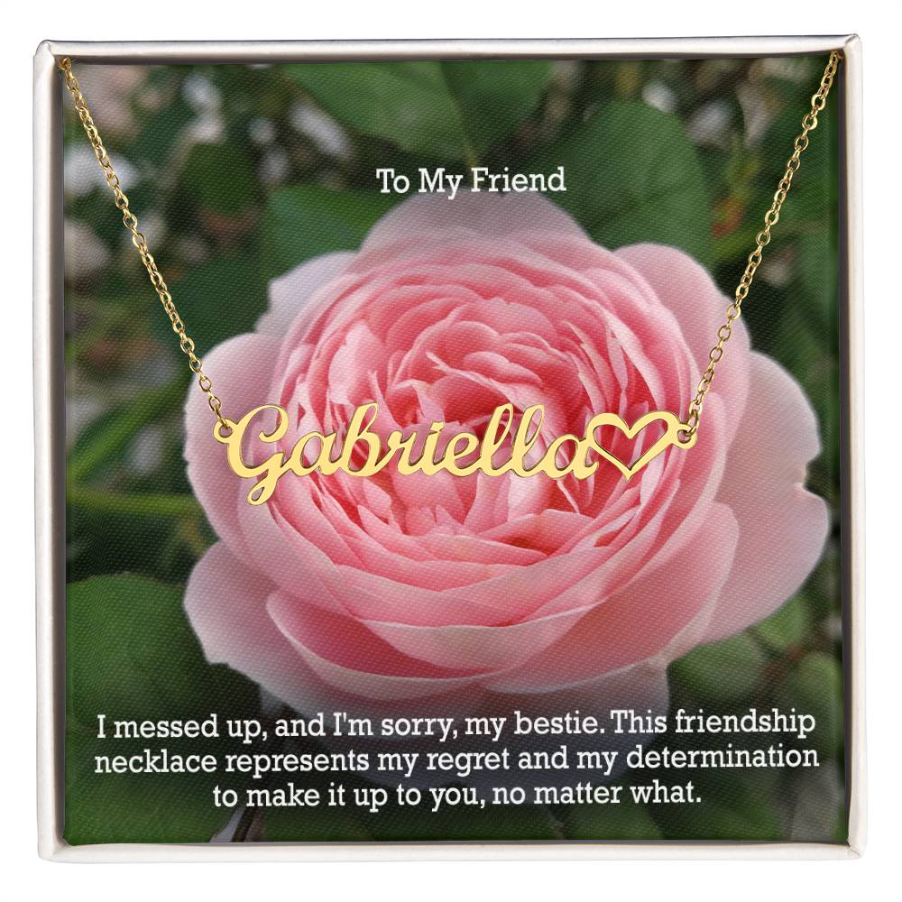 To My Friend, I Messed Up, & I'm Sorry, My Bestie - Name Necklace + Heart Character with Message Card - Gift for Friend