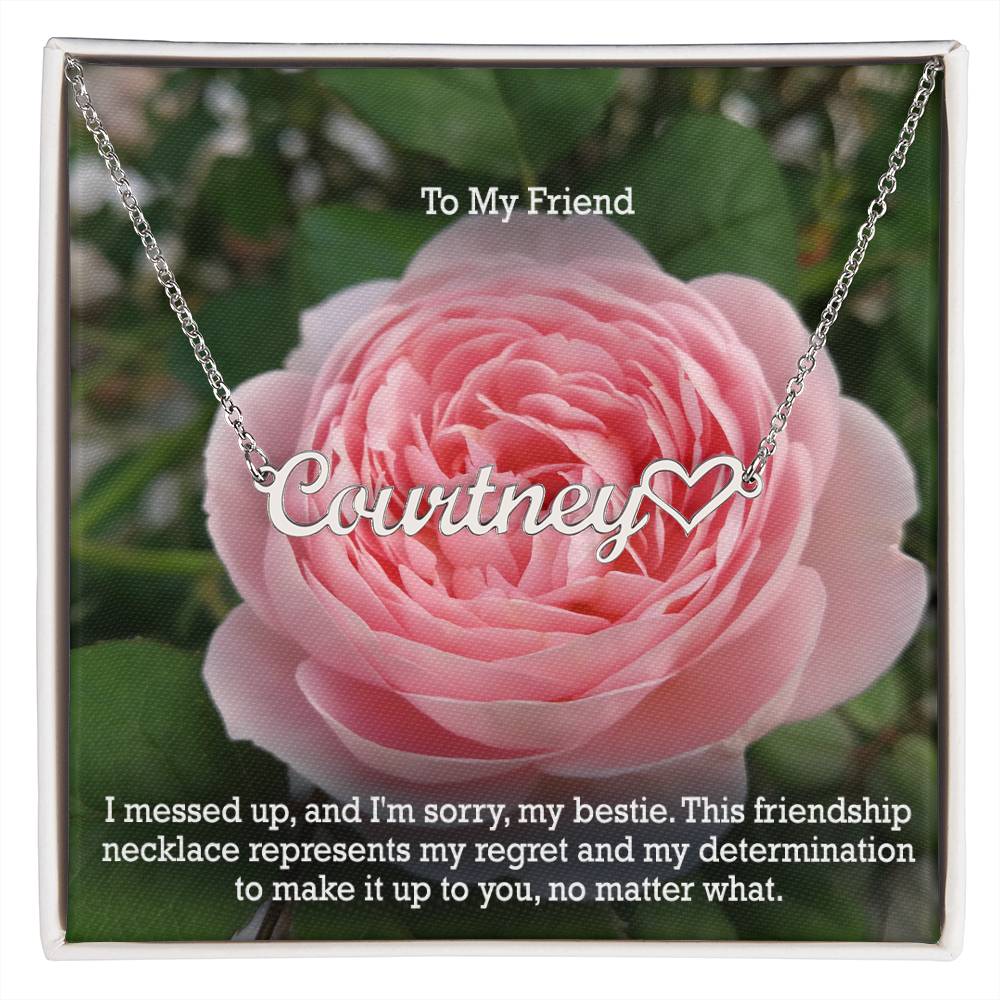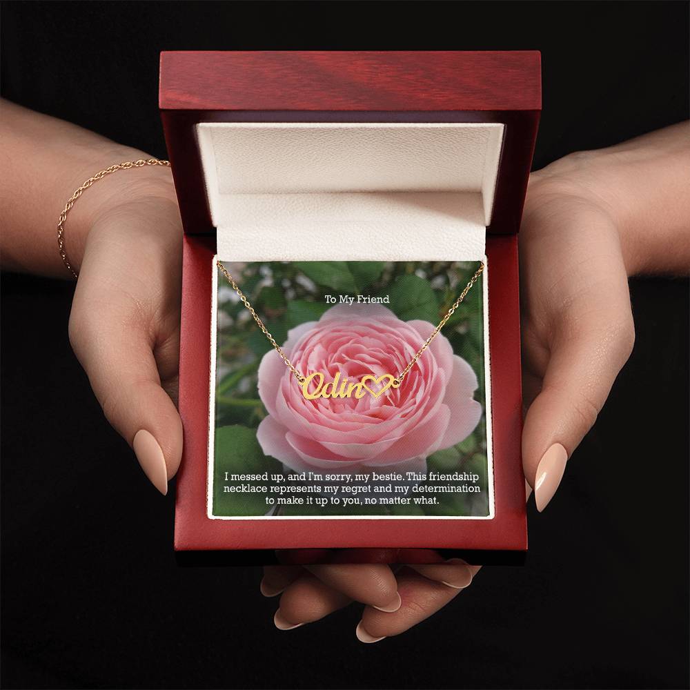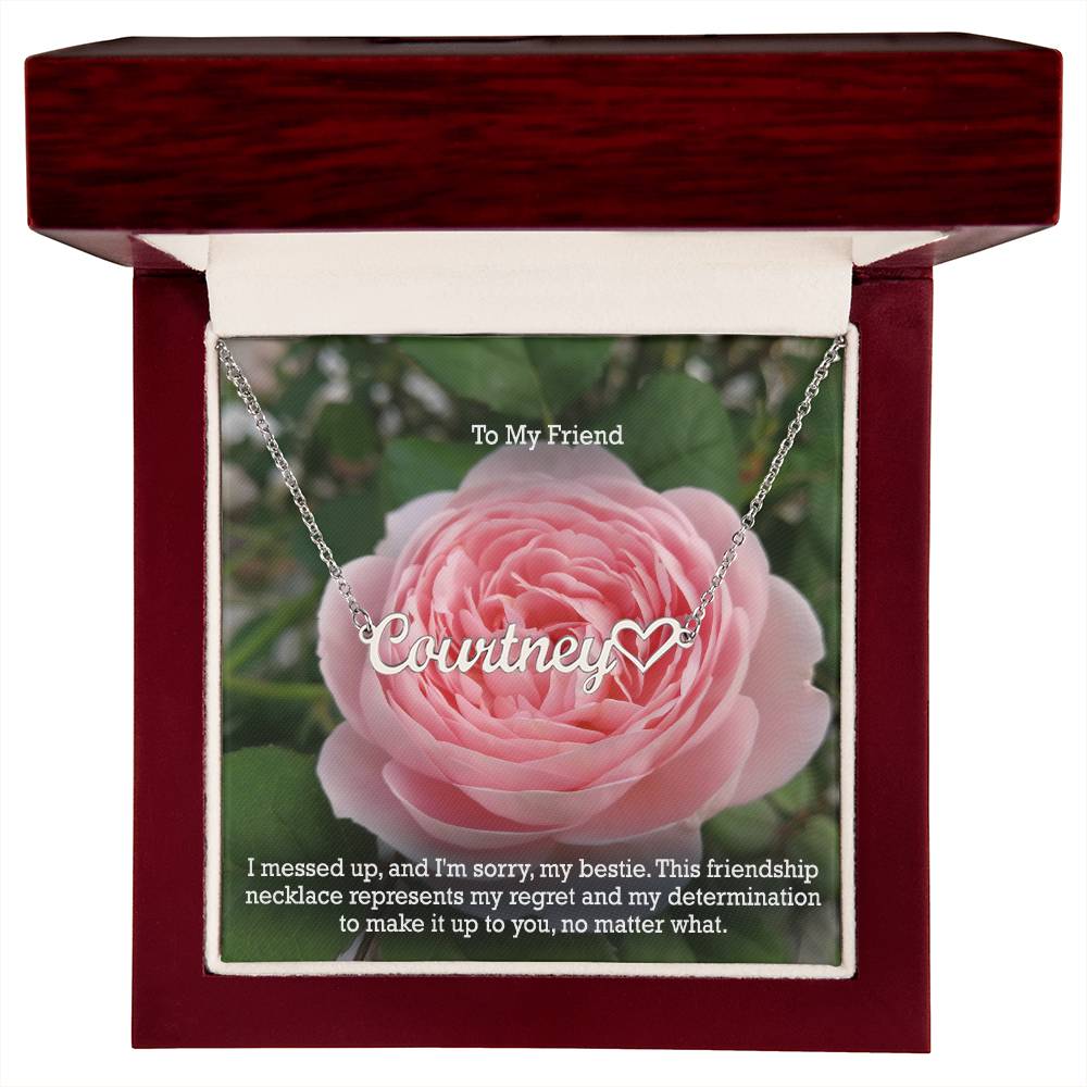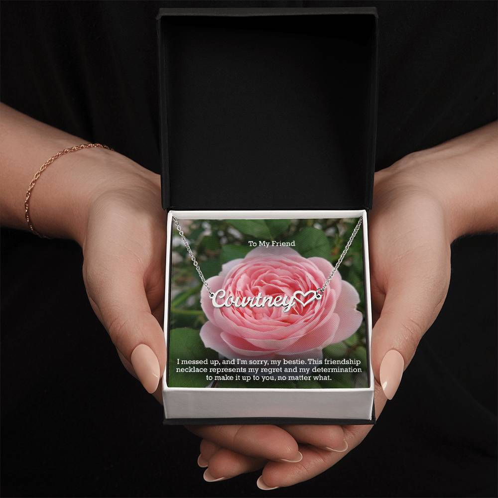 To My Friend, I Messed Up, & I'm Sorry, My Bestie - Name Necklace + Heart Character with Message Card - Gift for Friend