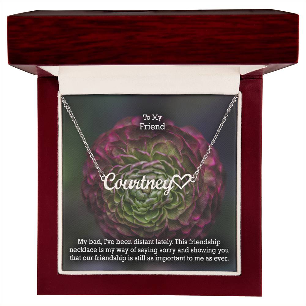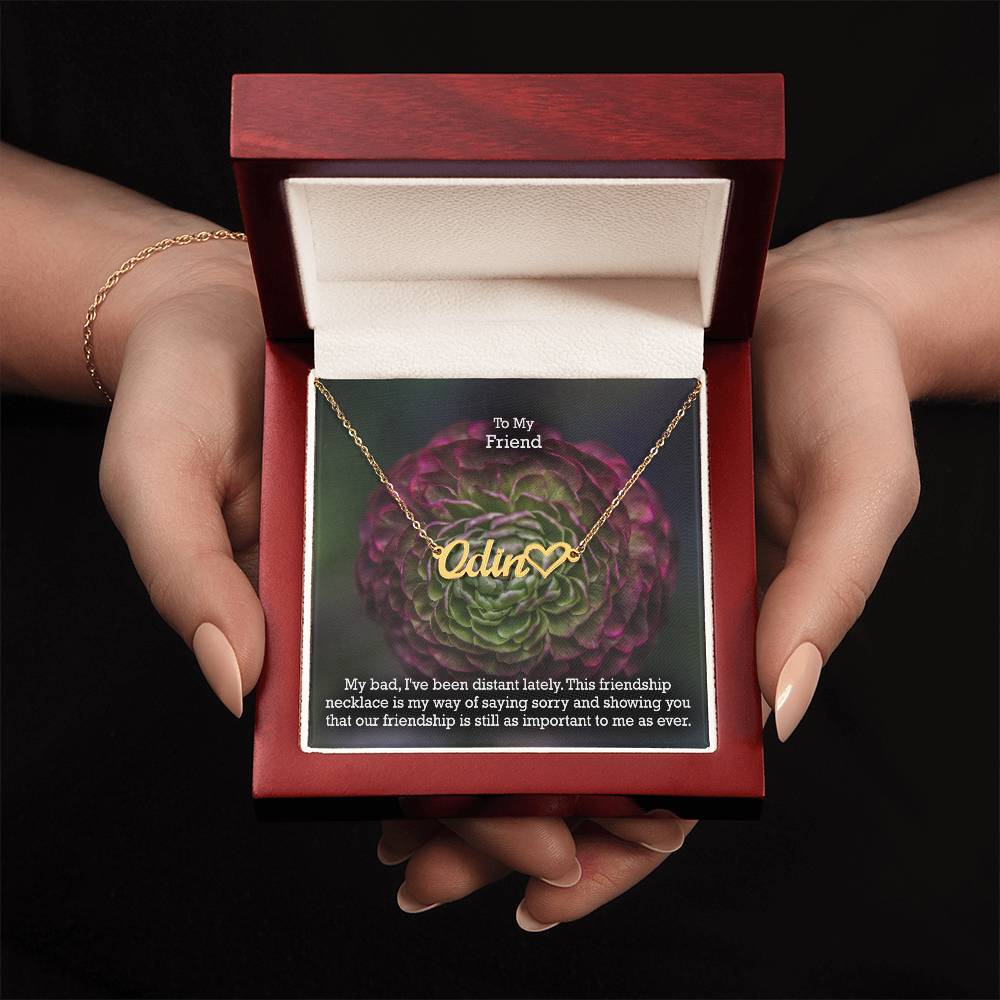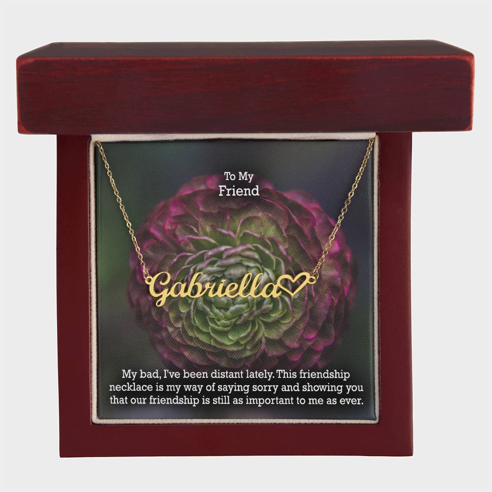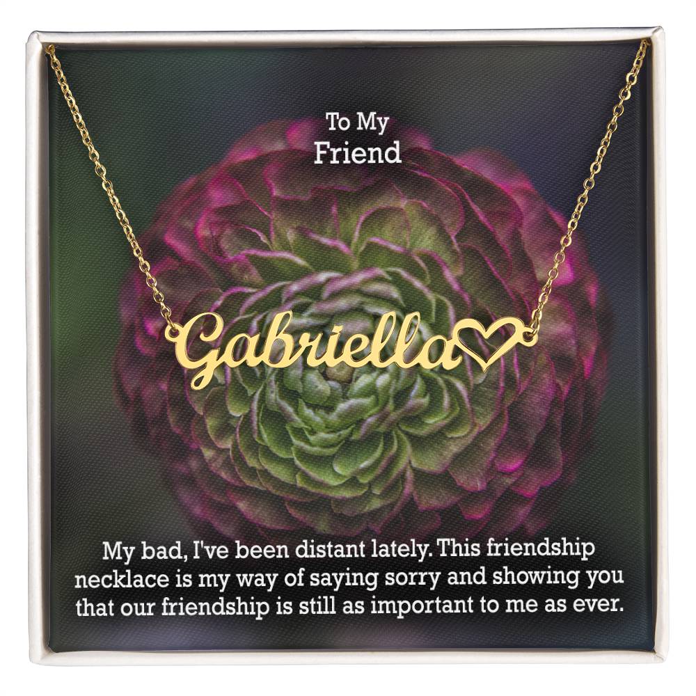 To My Friend, My Bad, I've Been Distant Lately - Name Necklace + Heart Character with Message Card - Gift for Friend