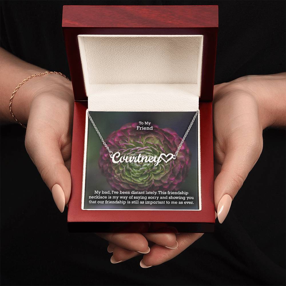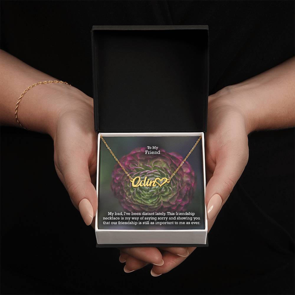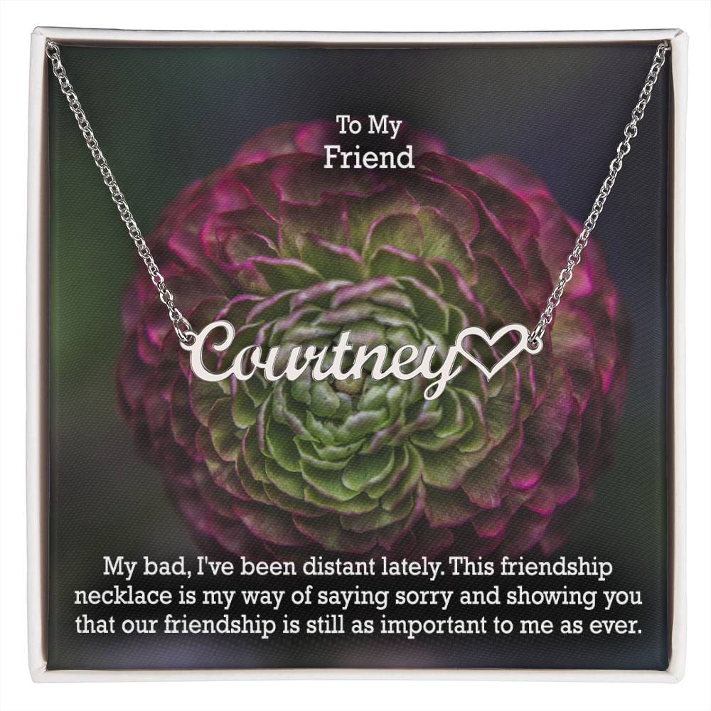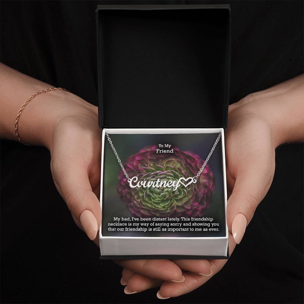 To My Friend, My Bad, I've Been Distant Lately - Name Necklace + Heart Character with Message Card - Gift for Friend