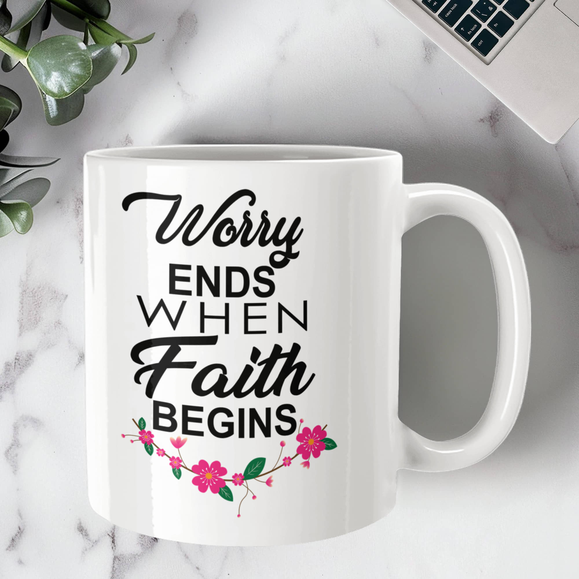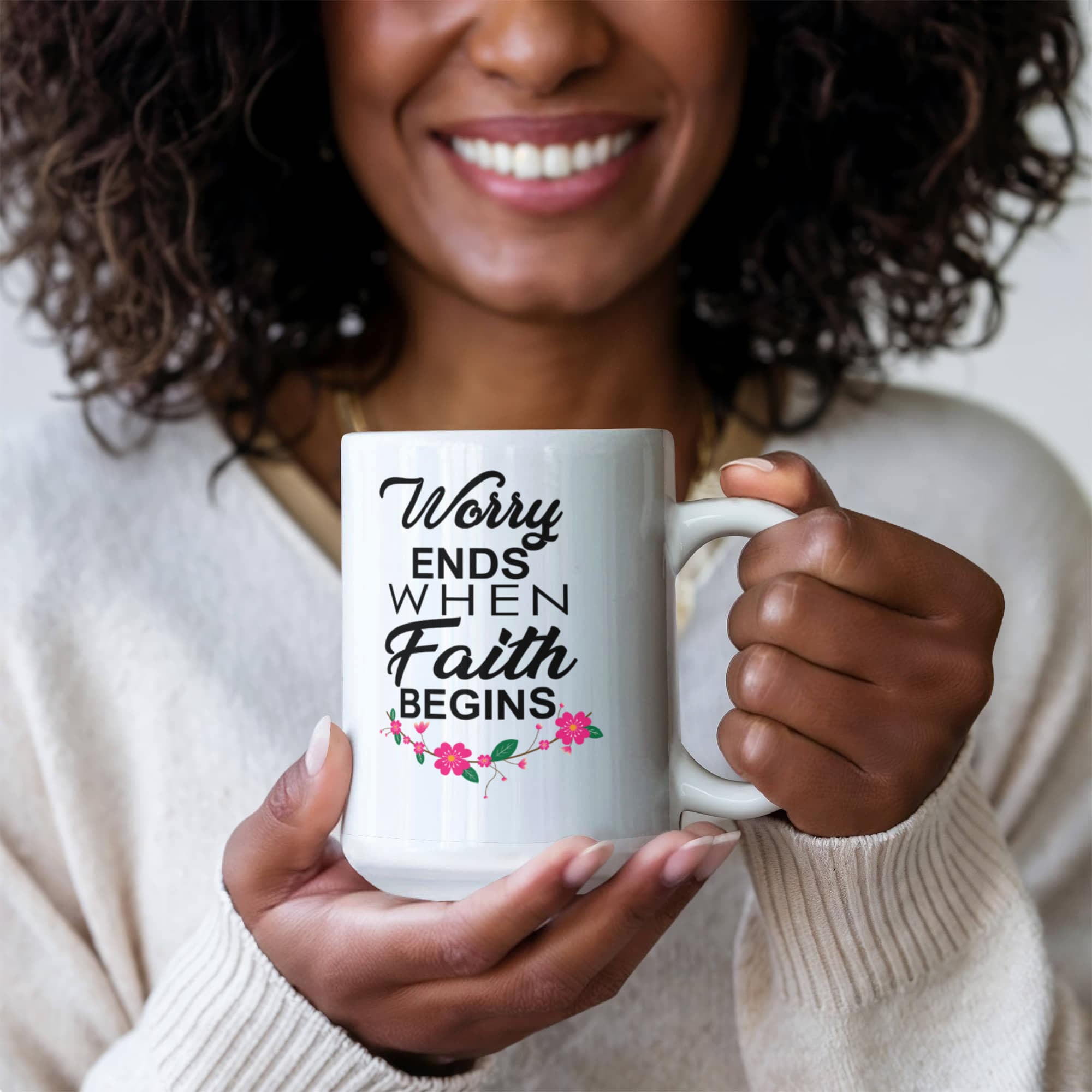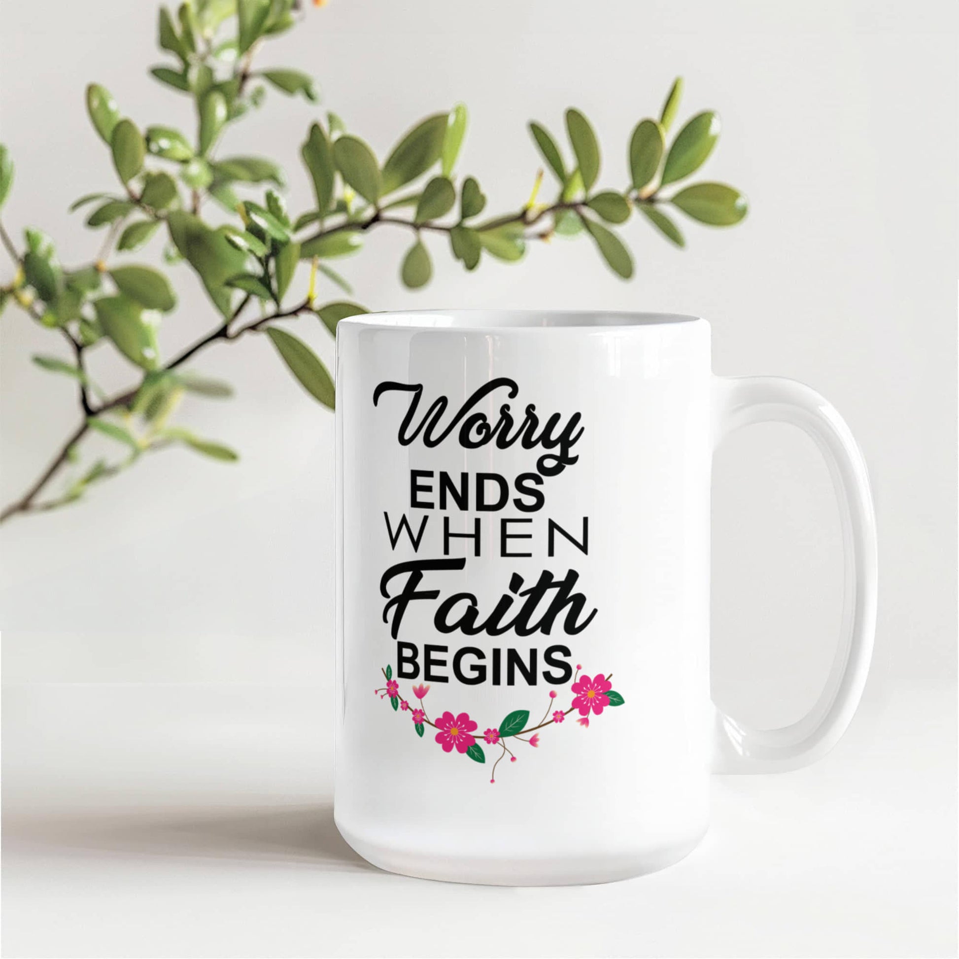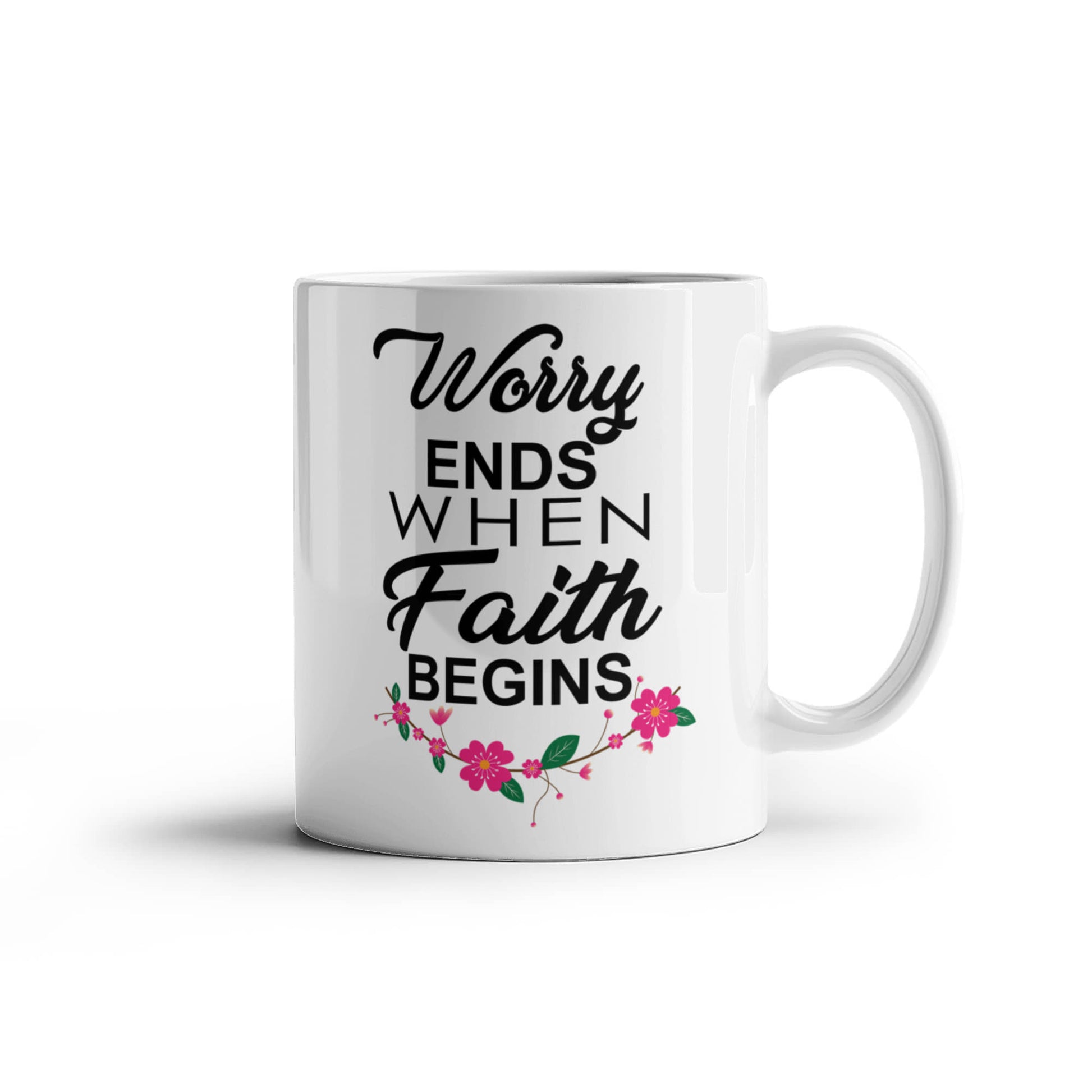 Worry Ends When Faith Begins - White Ceramic Mug 11oz. & 15oz. - Gift for Her