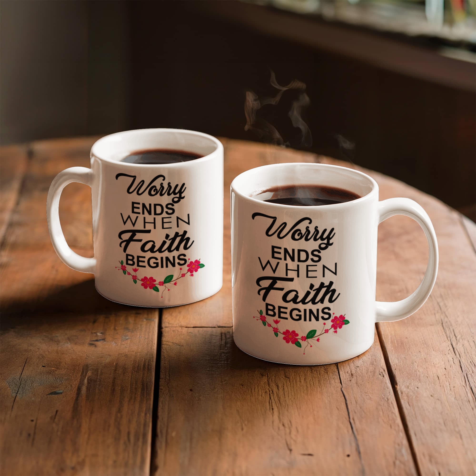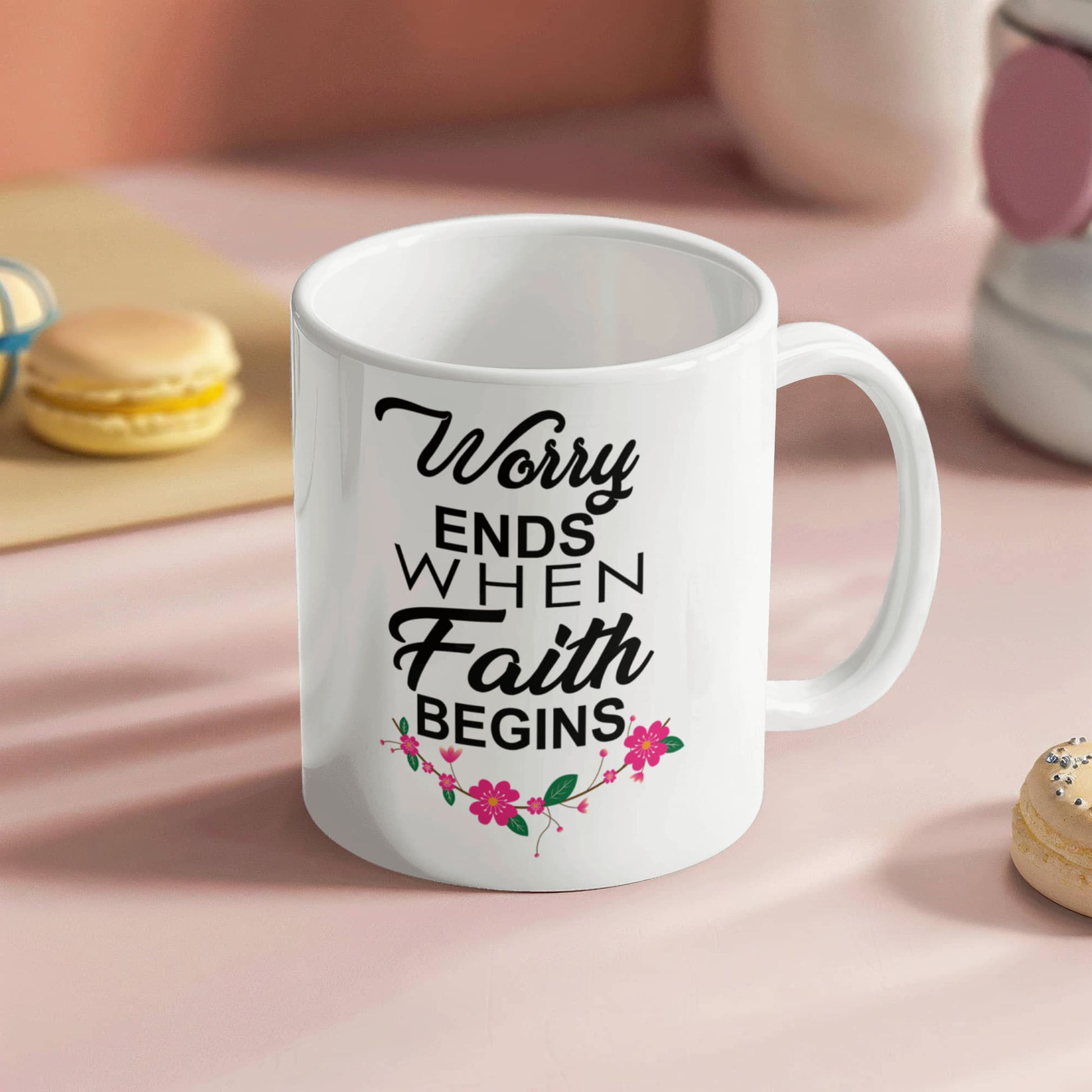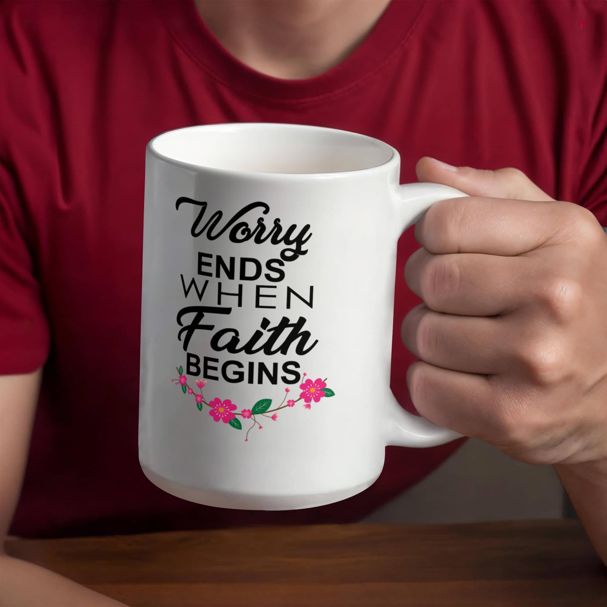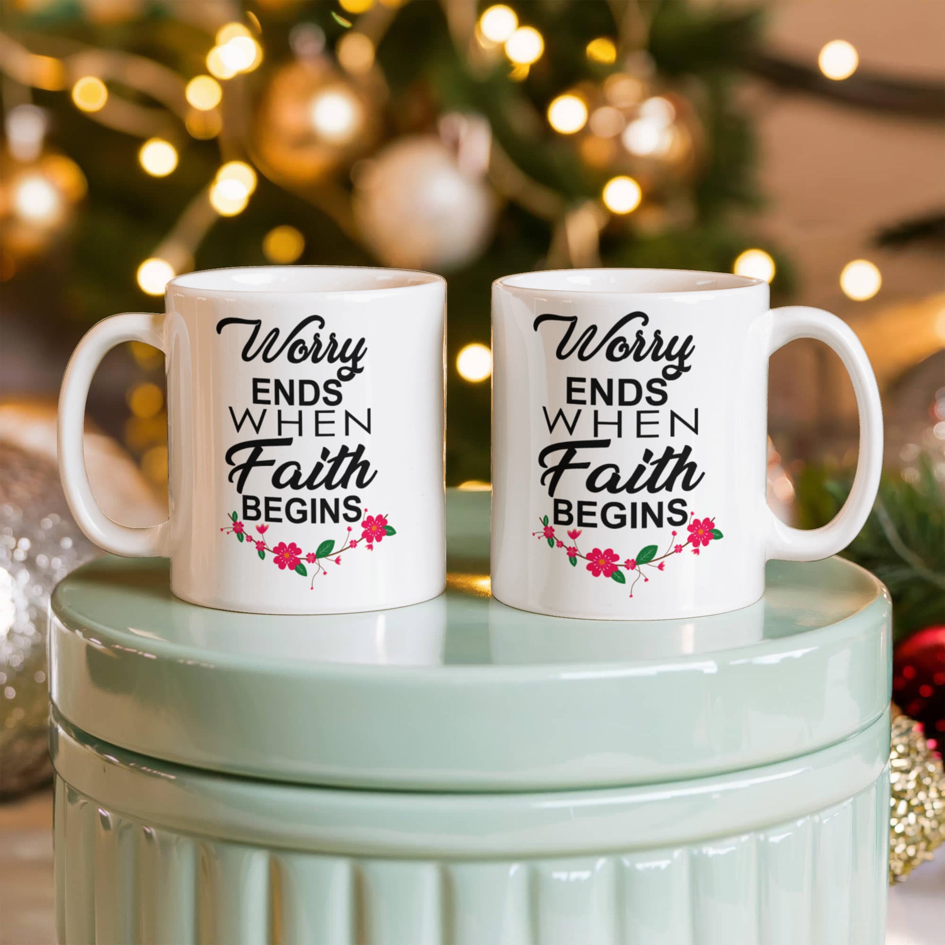 Worry Ends When Faith Begins - White Ceramic Mug 11oz. & 15oz. - Gift for Her