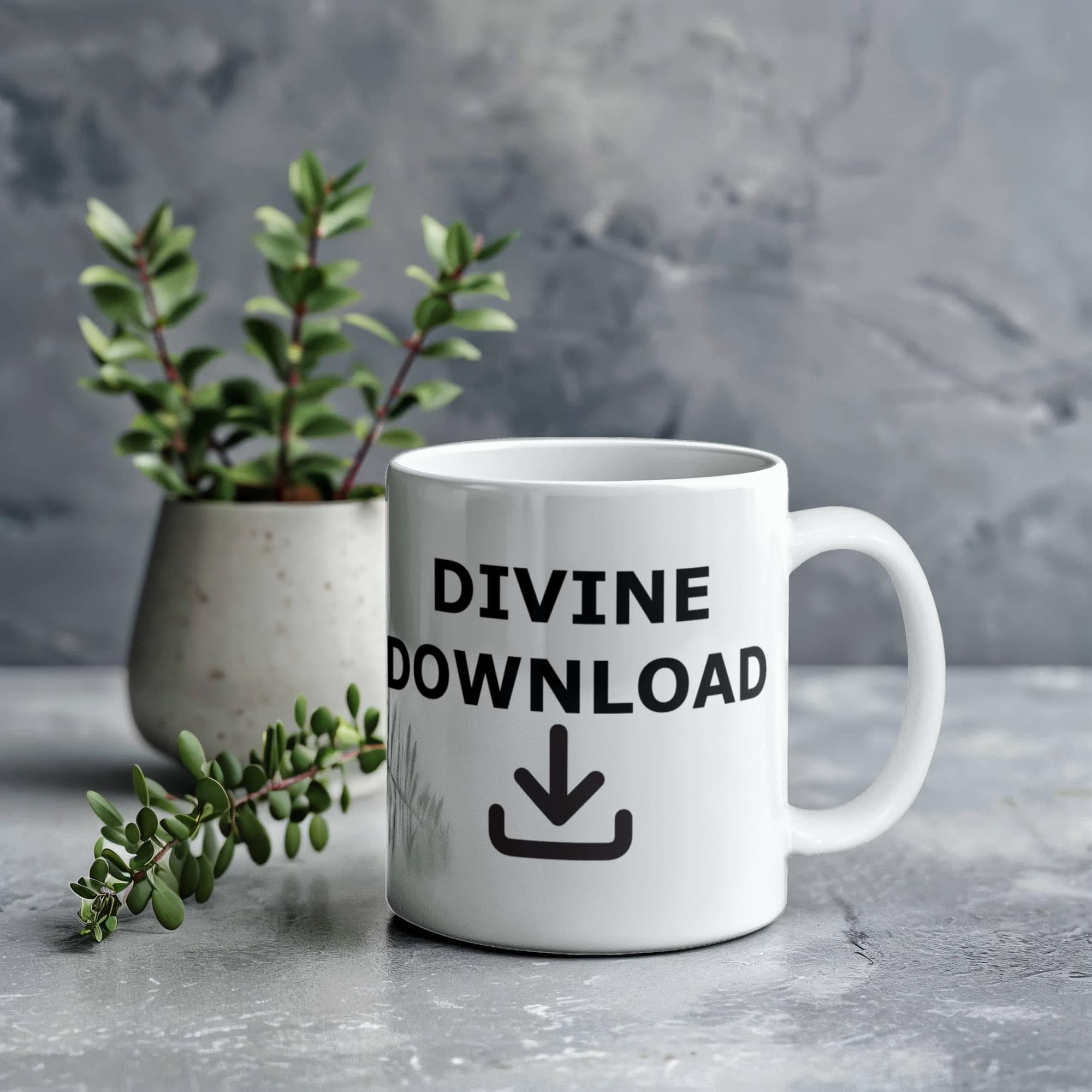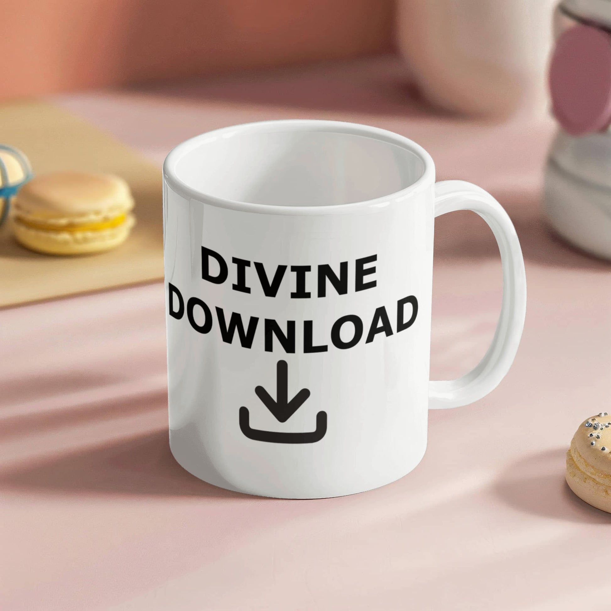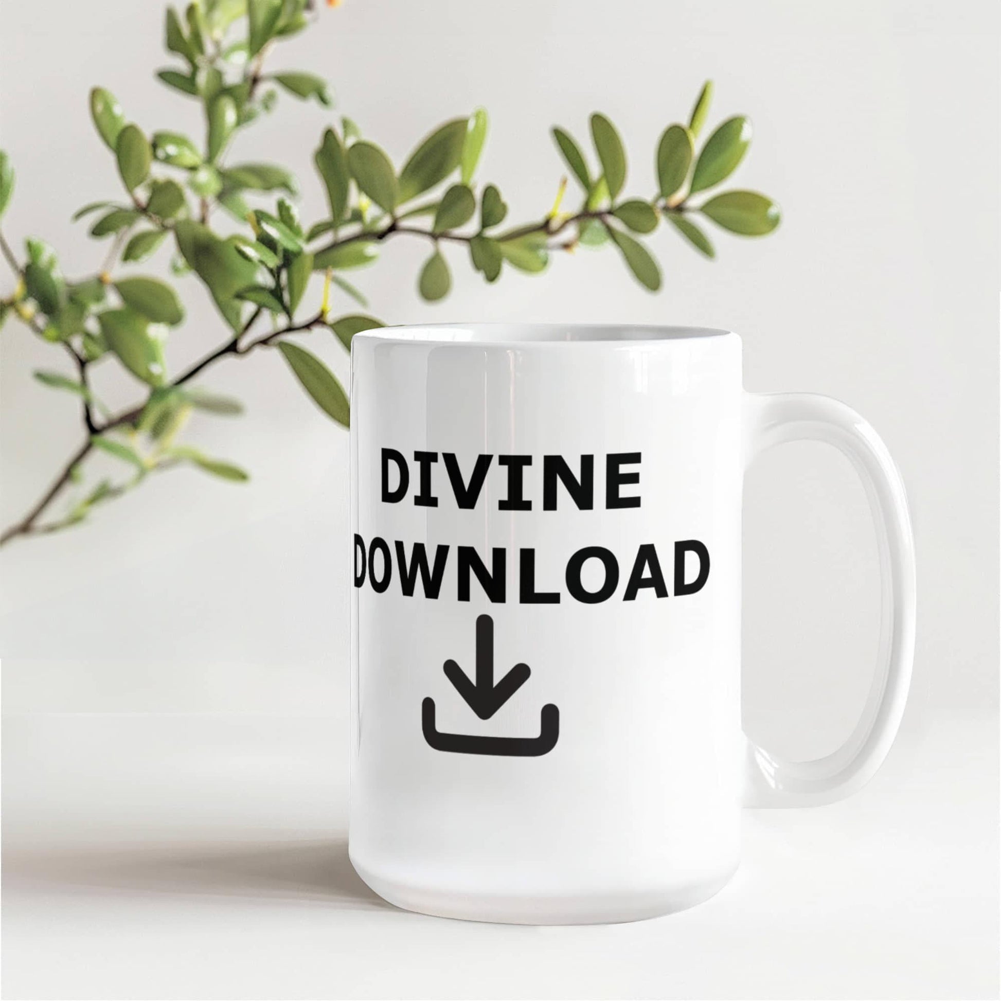 Divine Download - White Ceramic Mug 11oz. & 15oz. - Gift for Her - Gift for Him