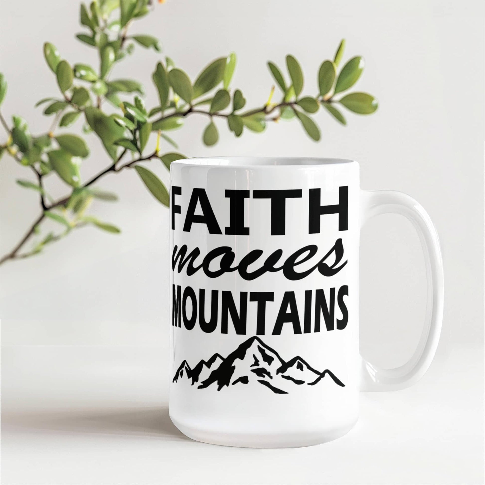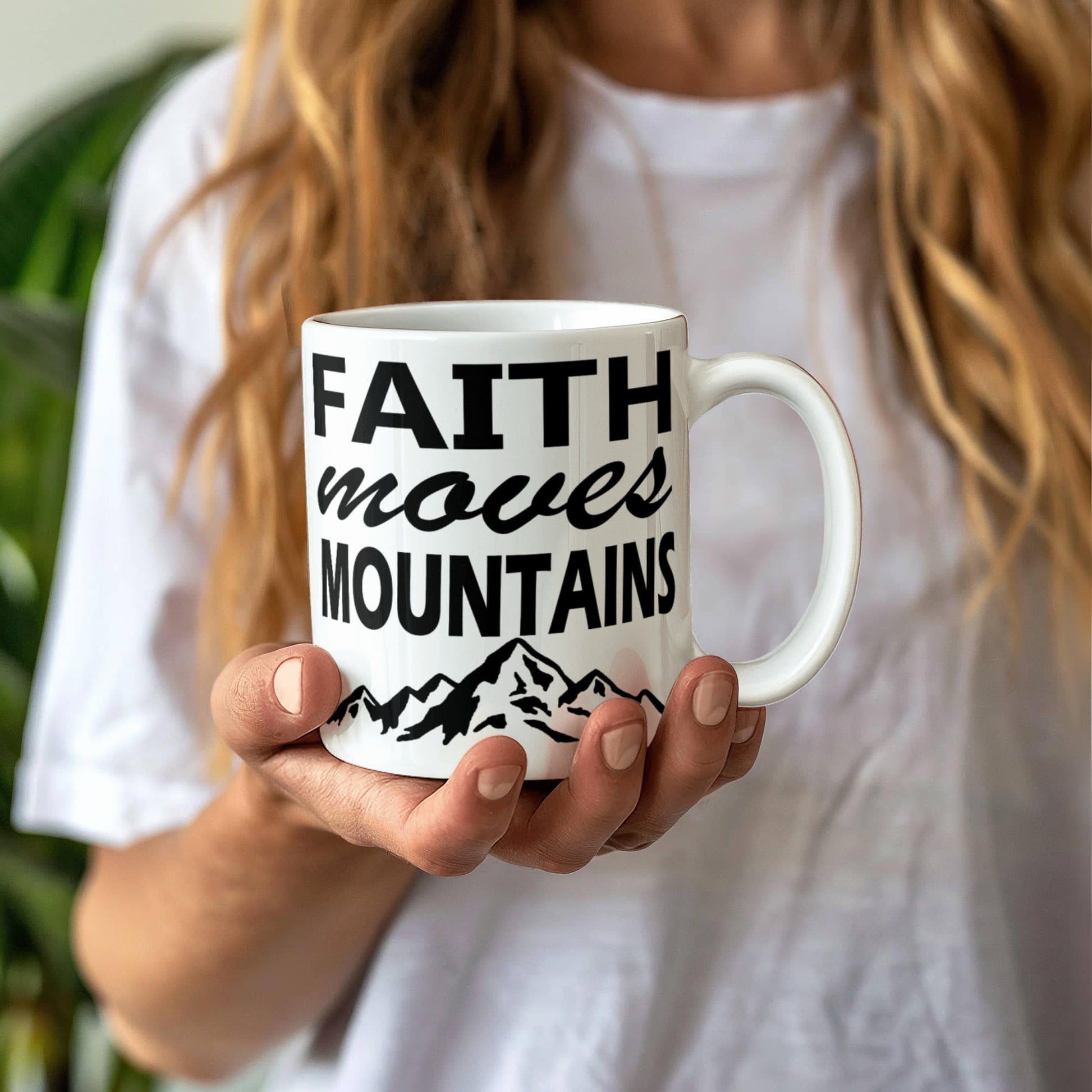 Faith Moves Mountains - White Ceramic Mug 11oz. & 15oz. - Gift for Her - Gift for Him