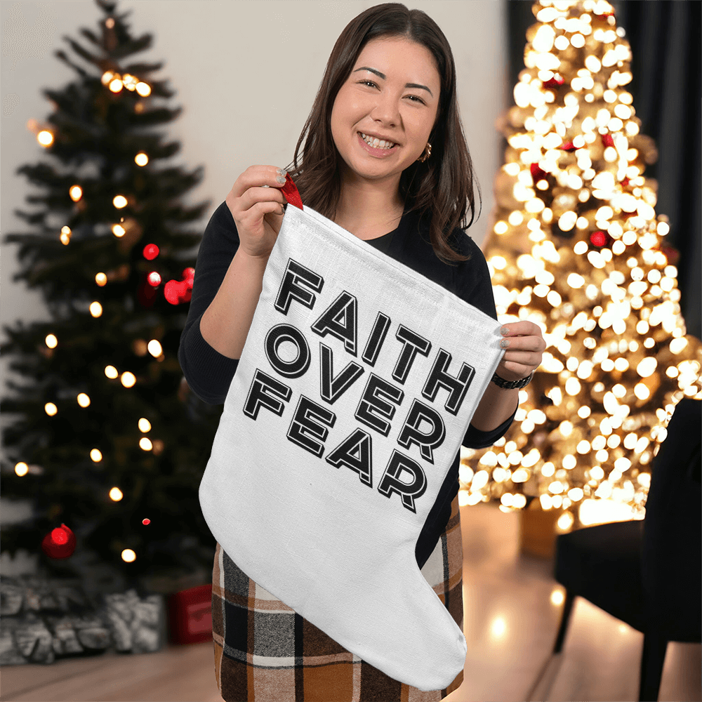 Faith Over Fear (Black) - Giant Holiday Stocking - Gift for Her - Gift for Him