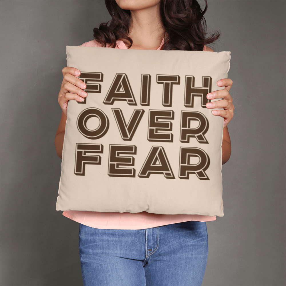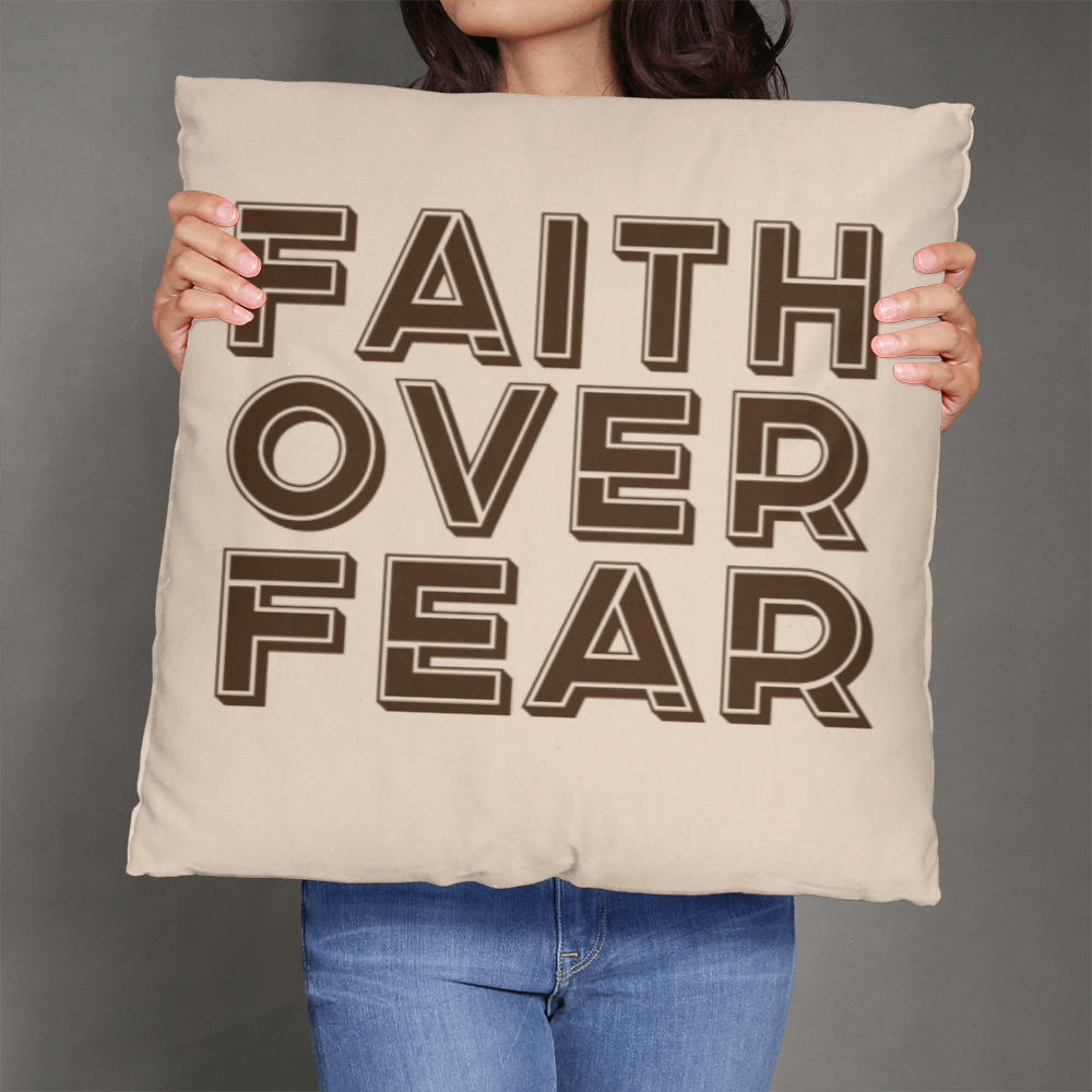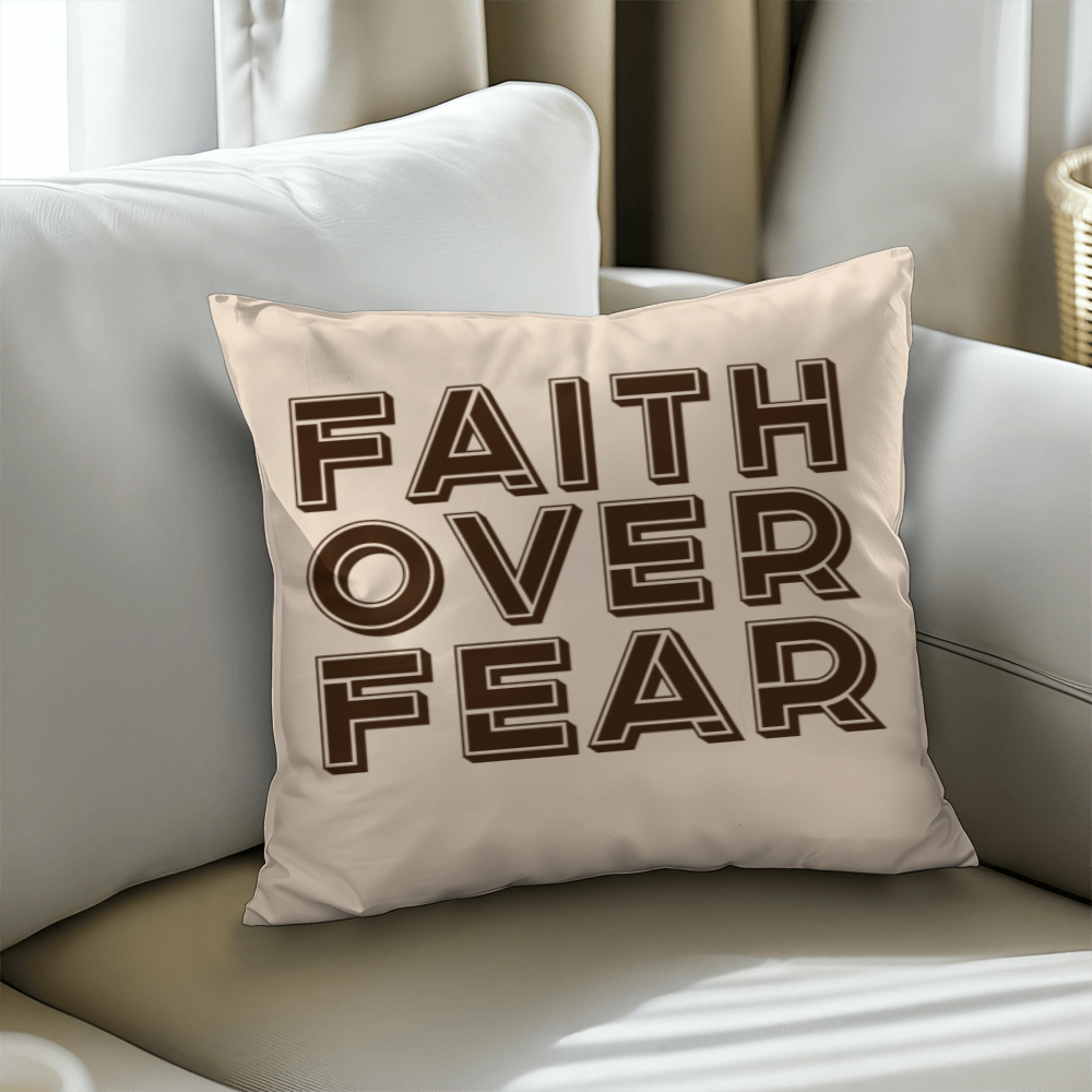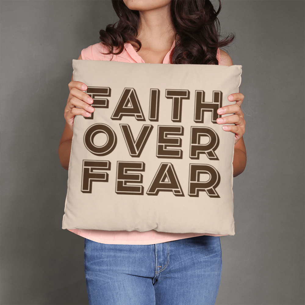 Faith Over Fear (Brown) - Classic Pillow Cover - Gift for Her - Gift for Him