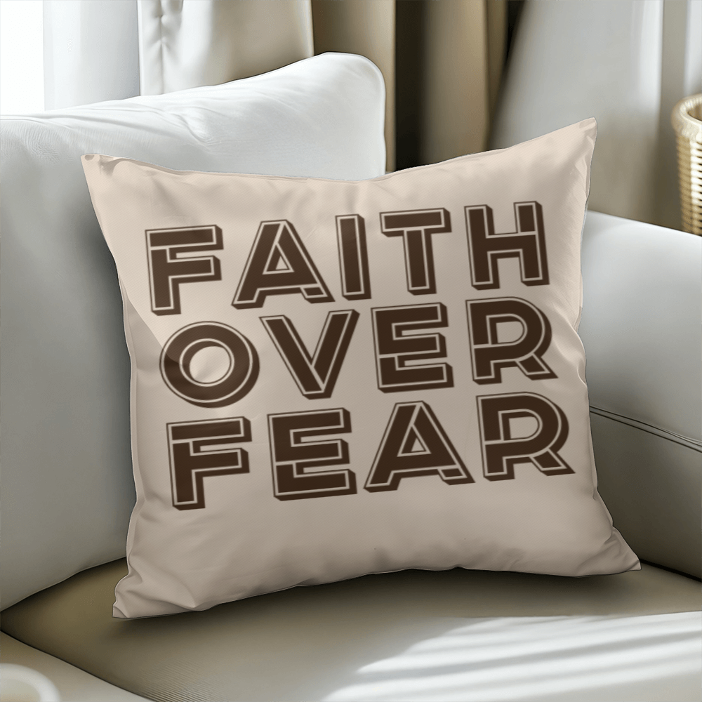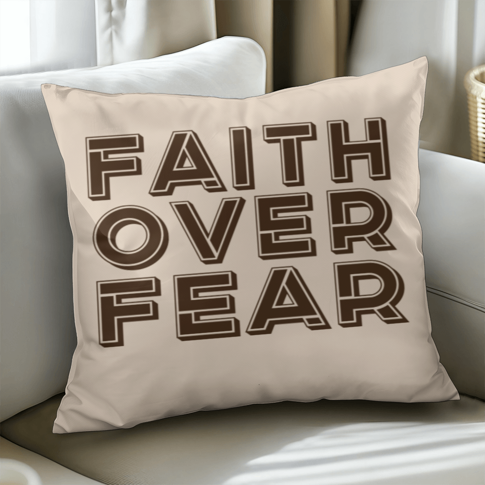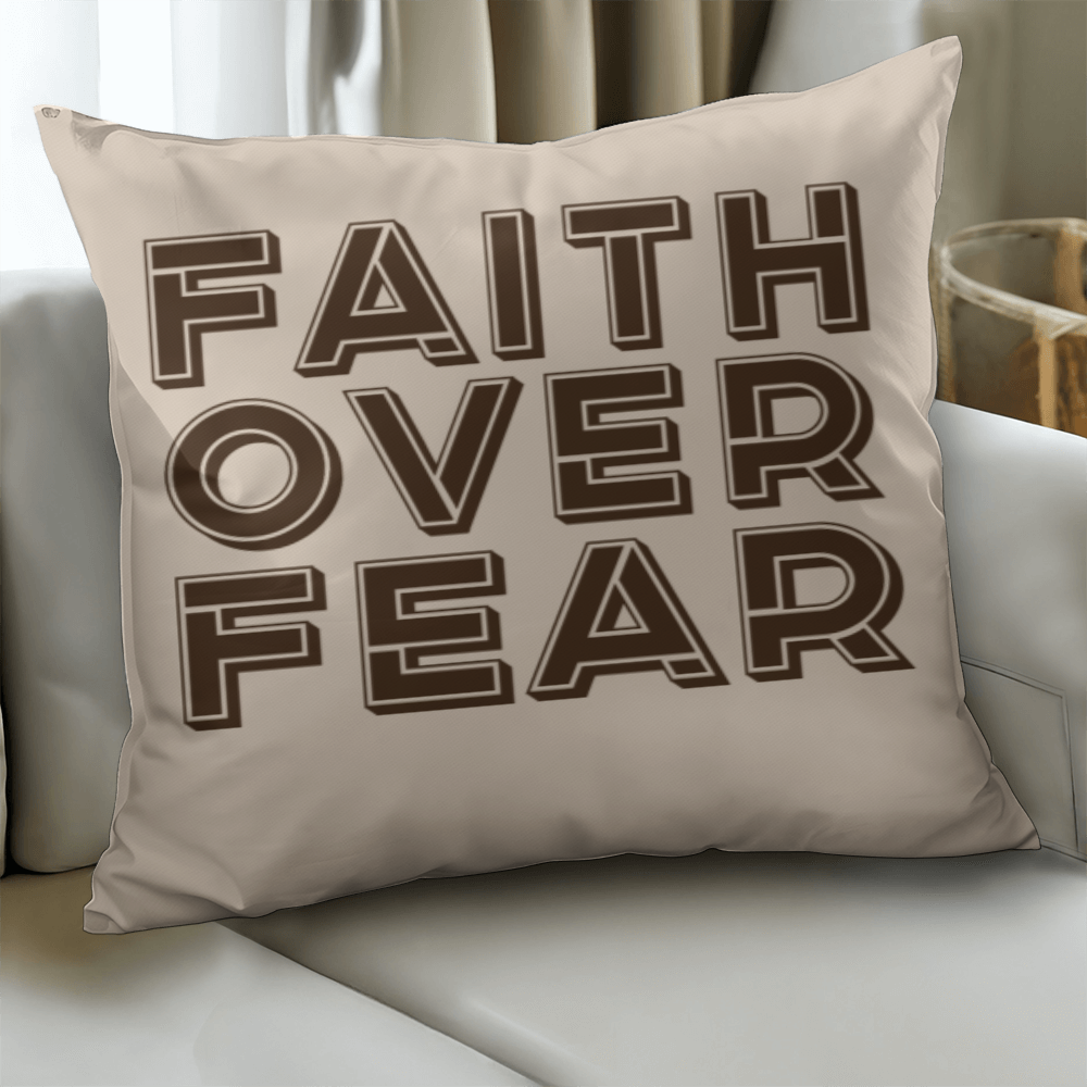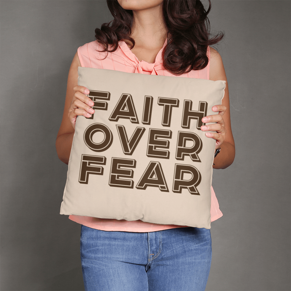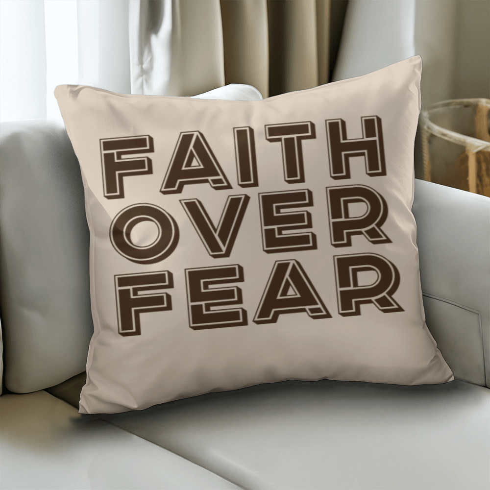 Faith Over Fear (Brown) - Classic Pillow Cover - Gift for Her - Gift for Him