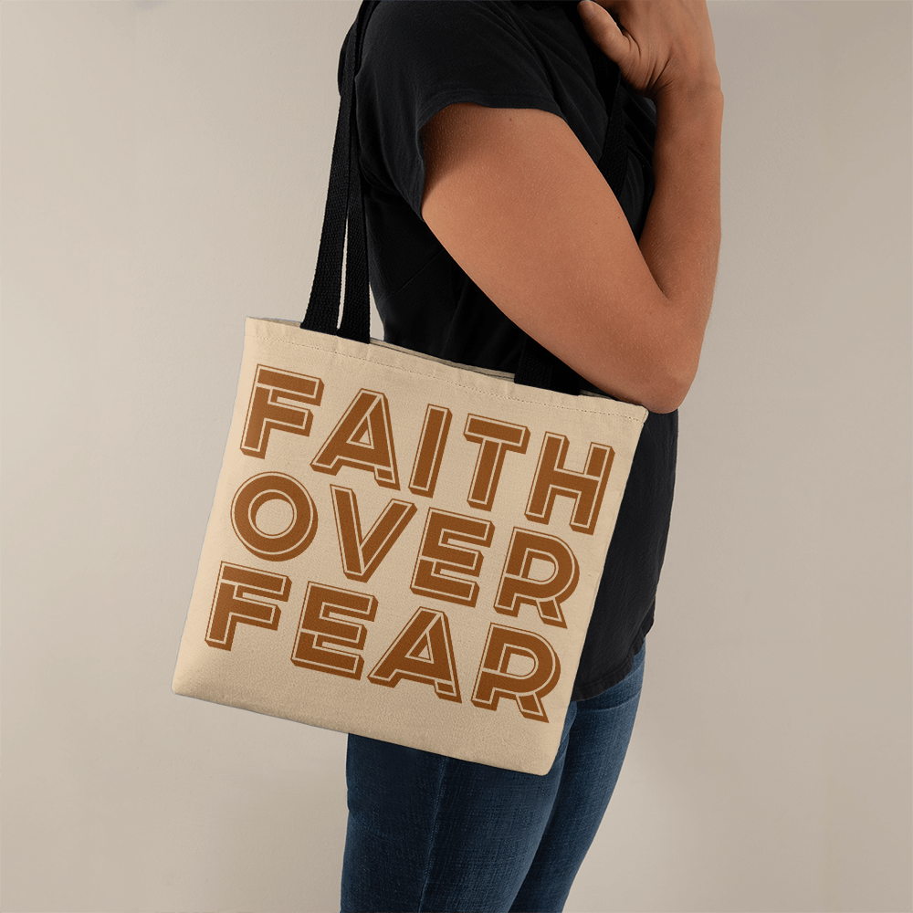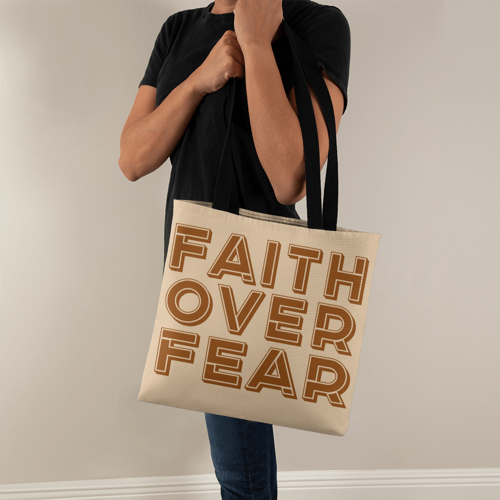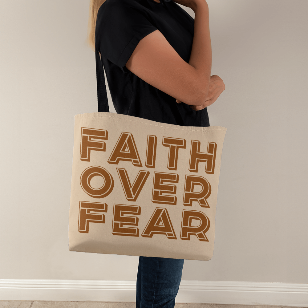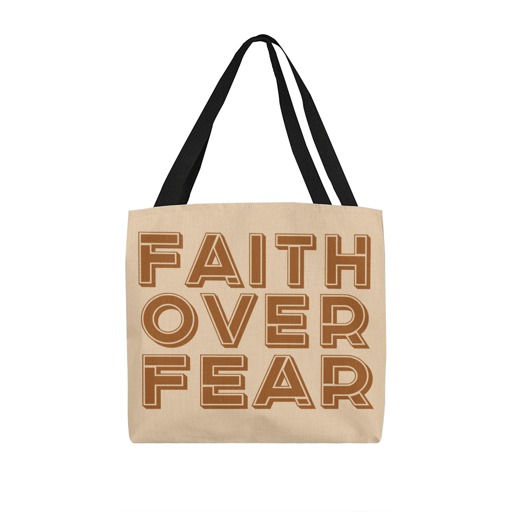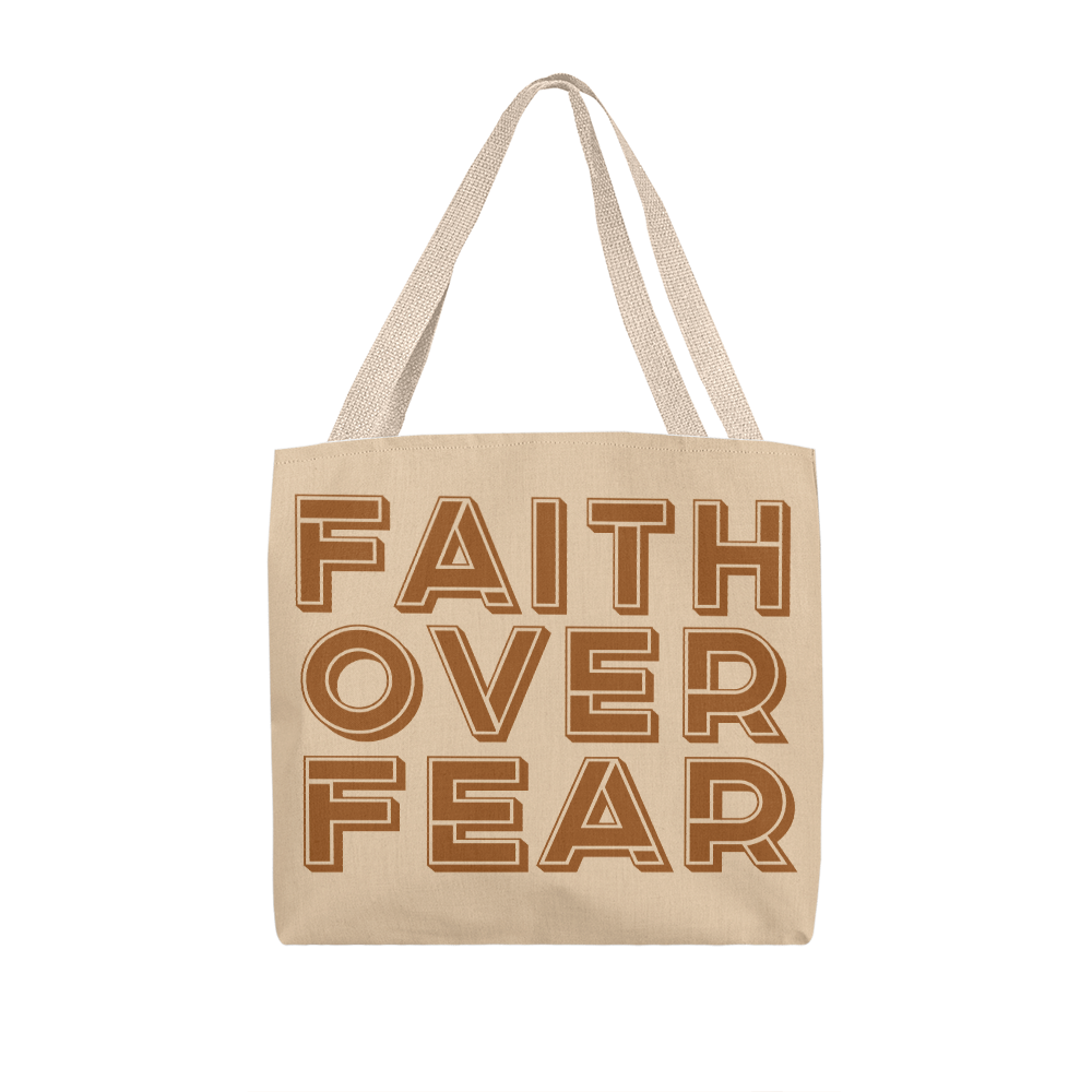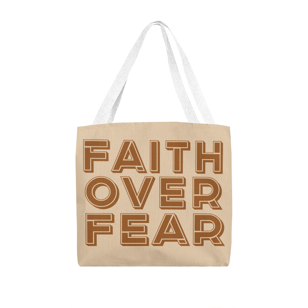 Faith Over Fear (Brown) - Classic Tote Bag - Gift for Her - Gift for Him