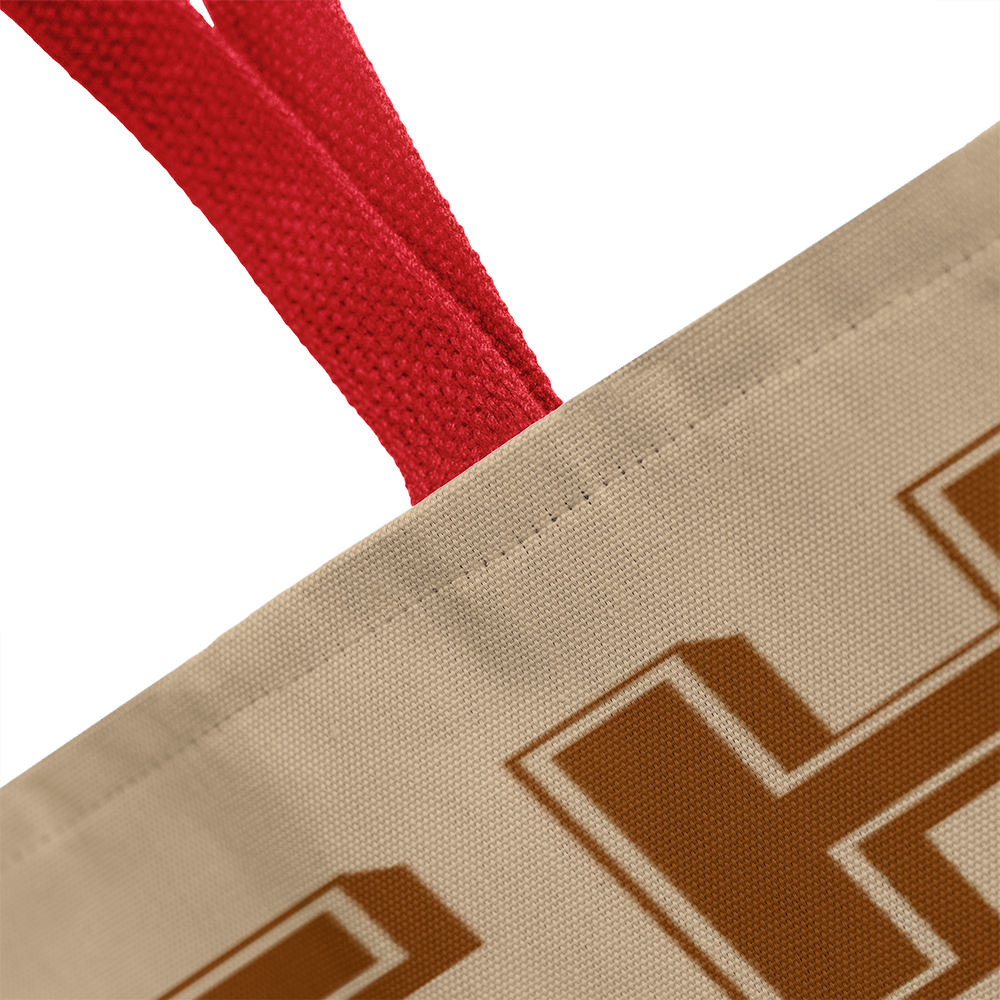 Your tote bag will be custom made upon order. You can expect a professionally printed design on both sides, making this a piece that can be treasured for a lifetime. Further your customization by choosing between 5 handle colors.