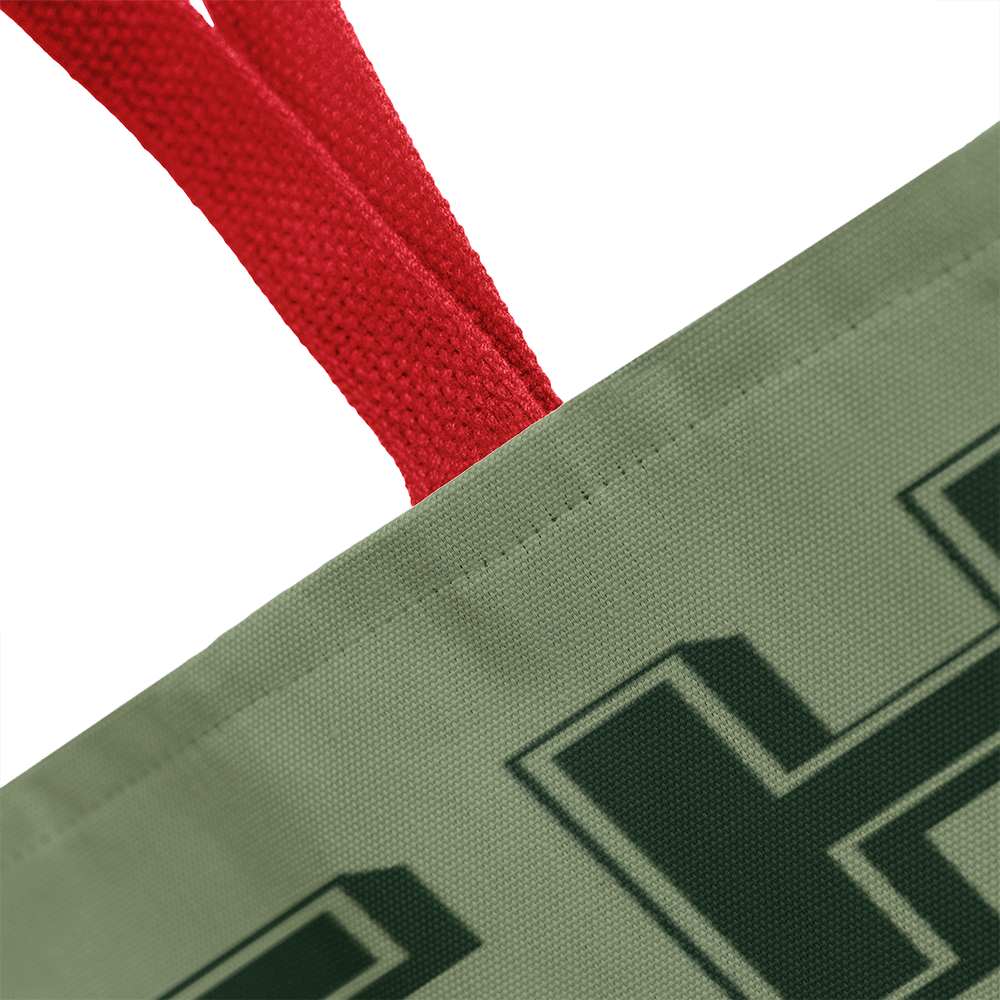 Your tote bag will be custom made upon order. You can expect a professionally printed design on both sides, making this a piece that can be treasured for a lifetime. Further your customization by choosing between 5 handle colors.