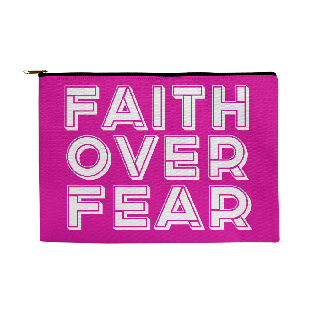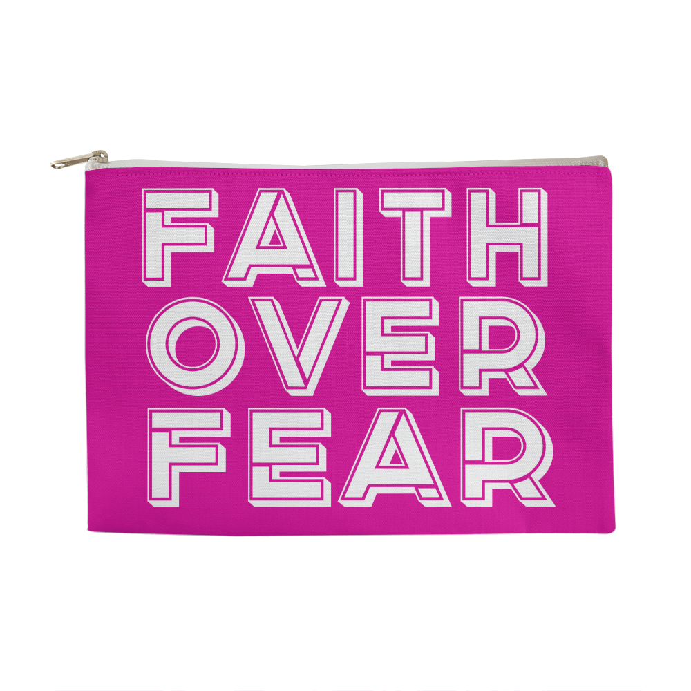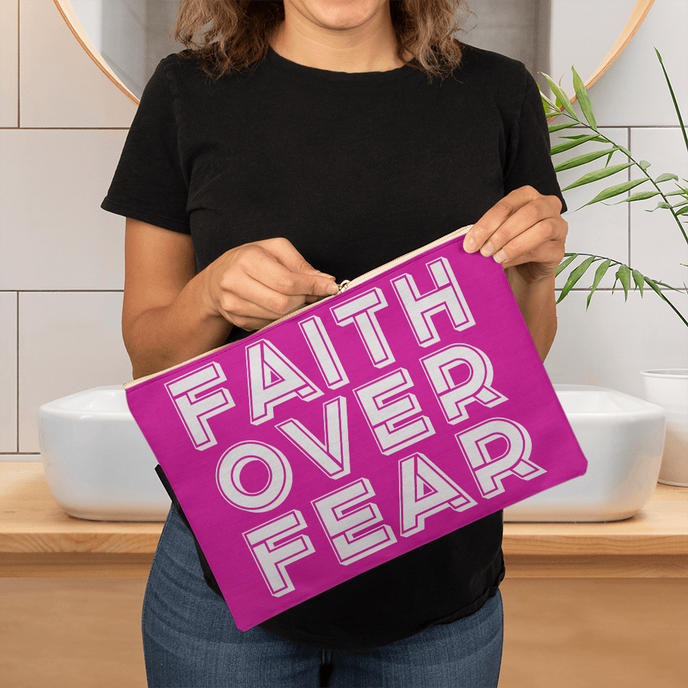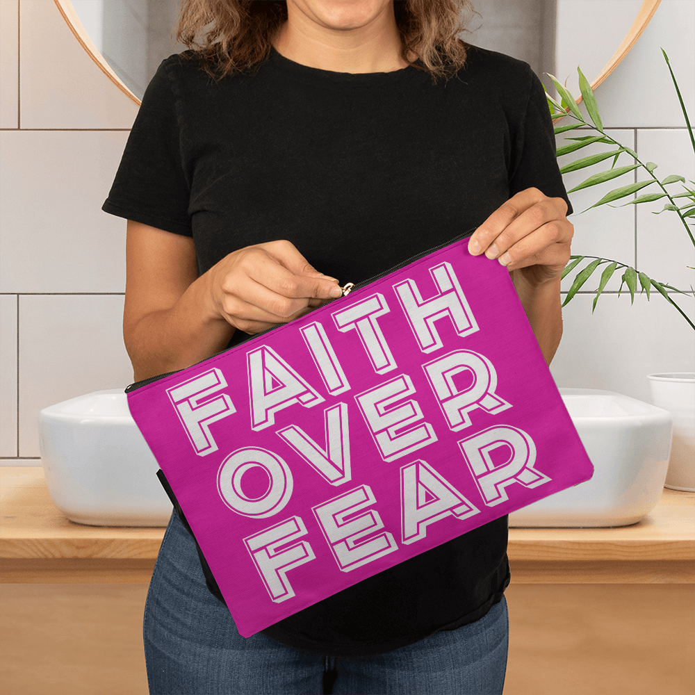 Faith Over Fear (White) - Fabric Zippered Pouch Large - Gift for Her - Gift for Him