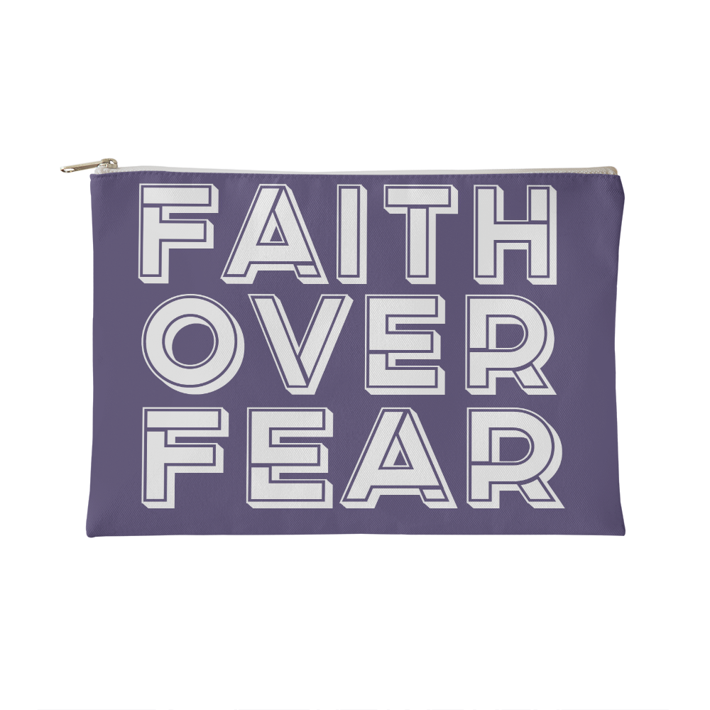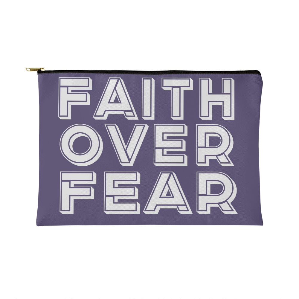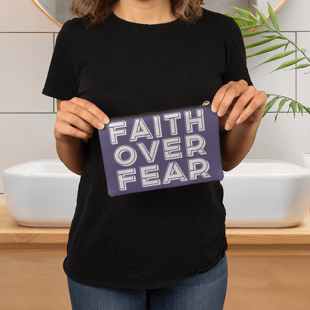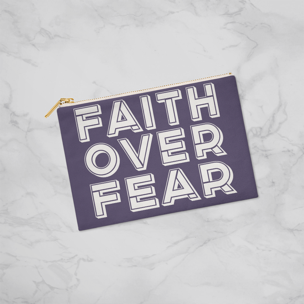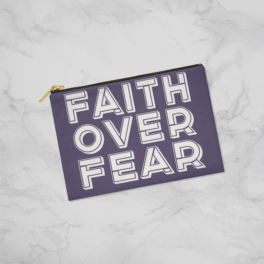 Faith Over Fear (White) - Fabric Zippered Pouch Small - Gift for Her - Gift for Him