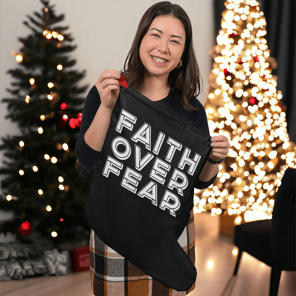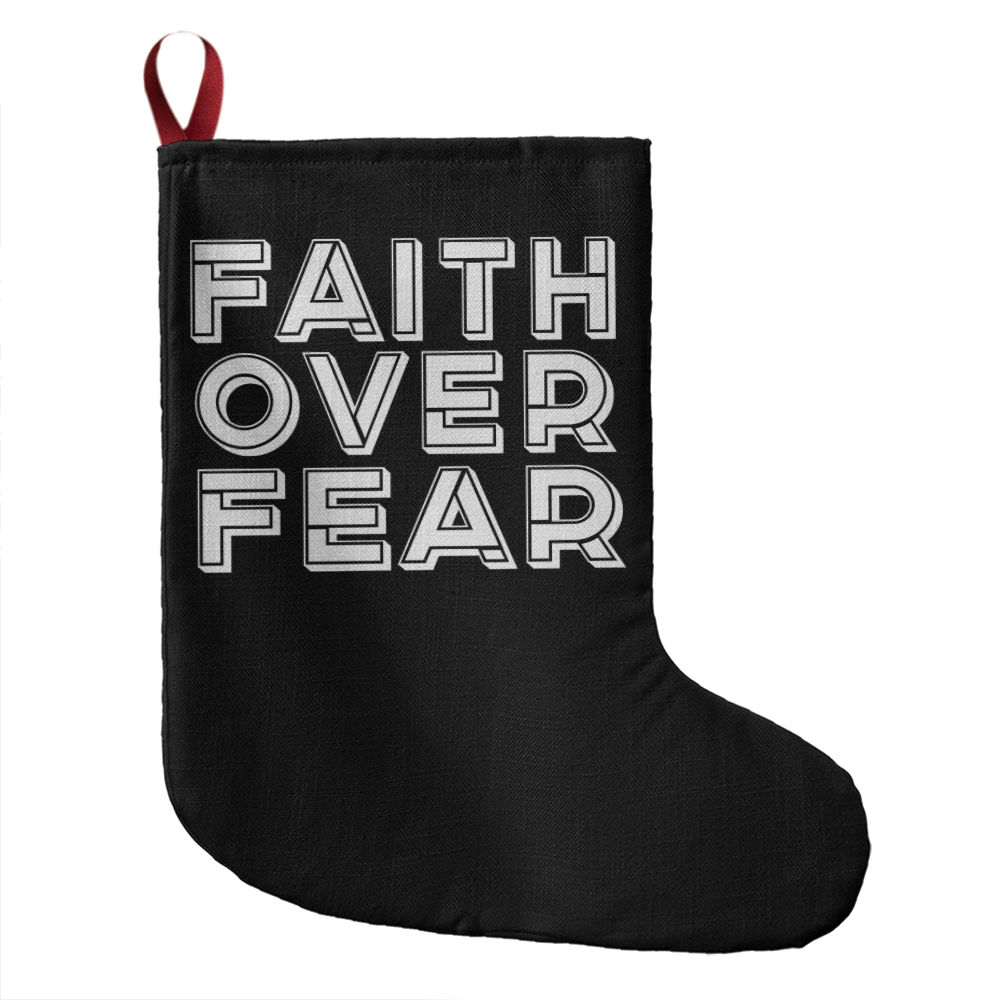 Faith Over Fear (White) - Giant Holiday Stocking - Gift for Her - Gift for Him