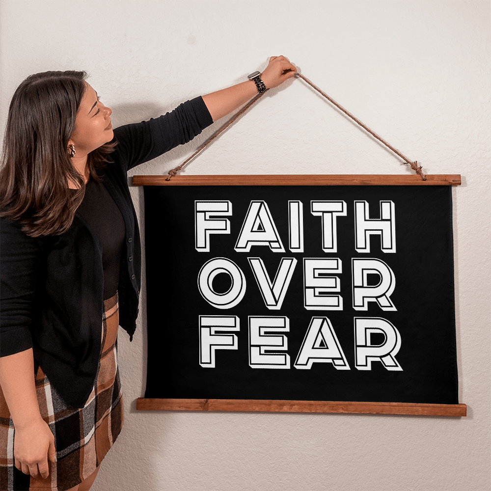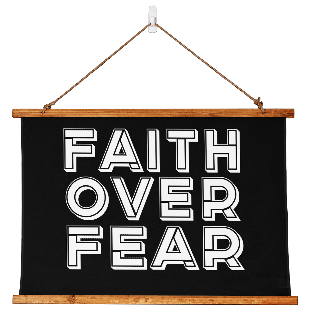 Faith Over Fear (White) - Wood Framed Wall Tapestry (Landscape) - Gift for Her - Gift for Him
