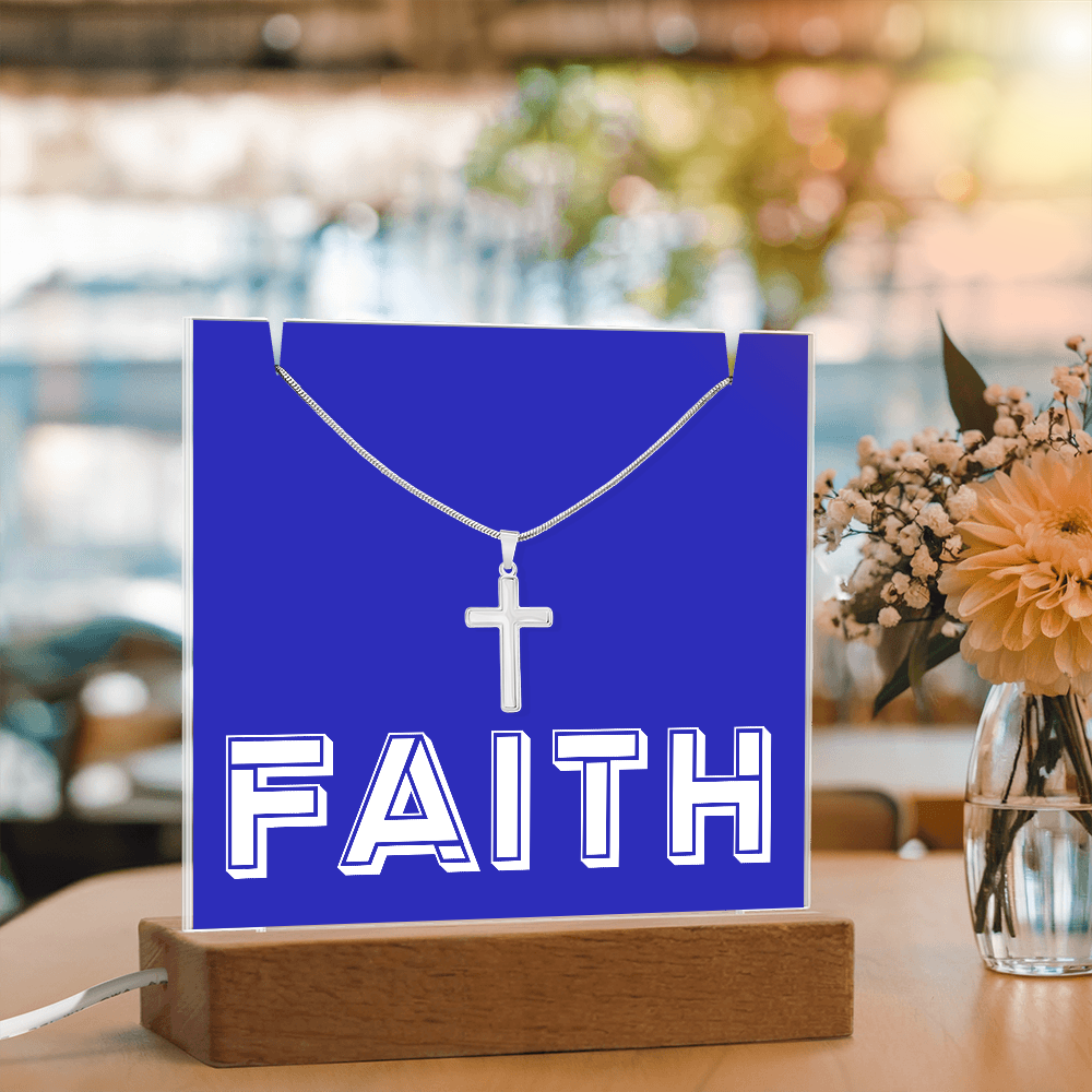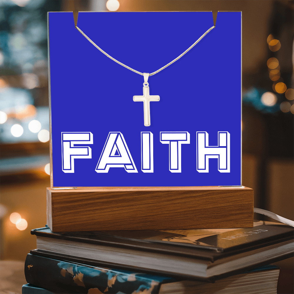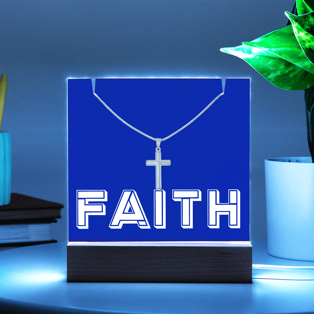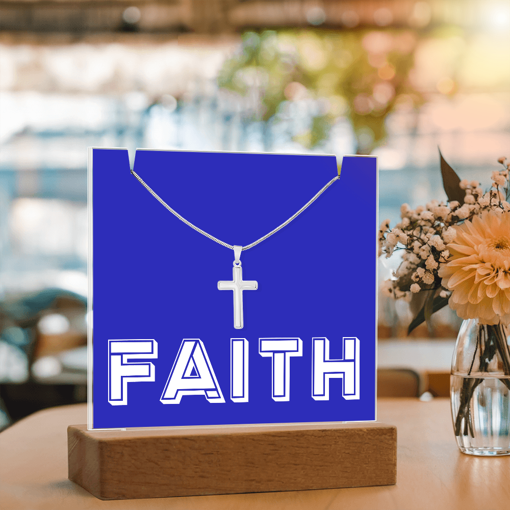 Faith (White) - Keepsake Acrylic Bundle (Square Acrylic and Cross Necklace) - Gift for Her - Gift for Him