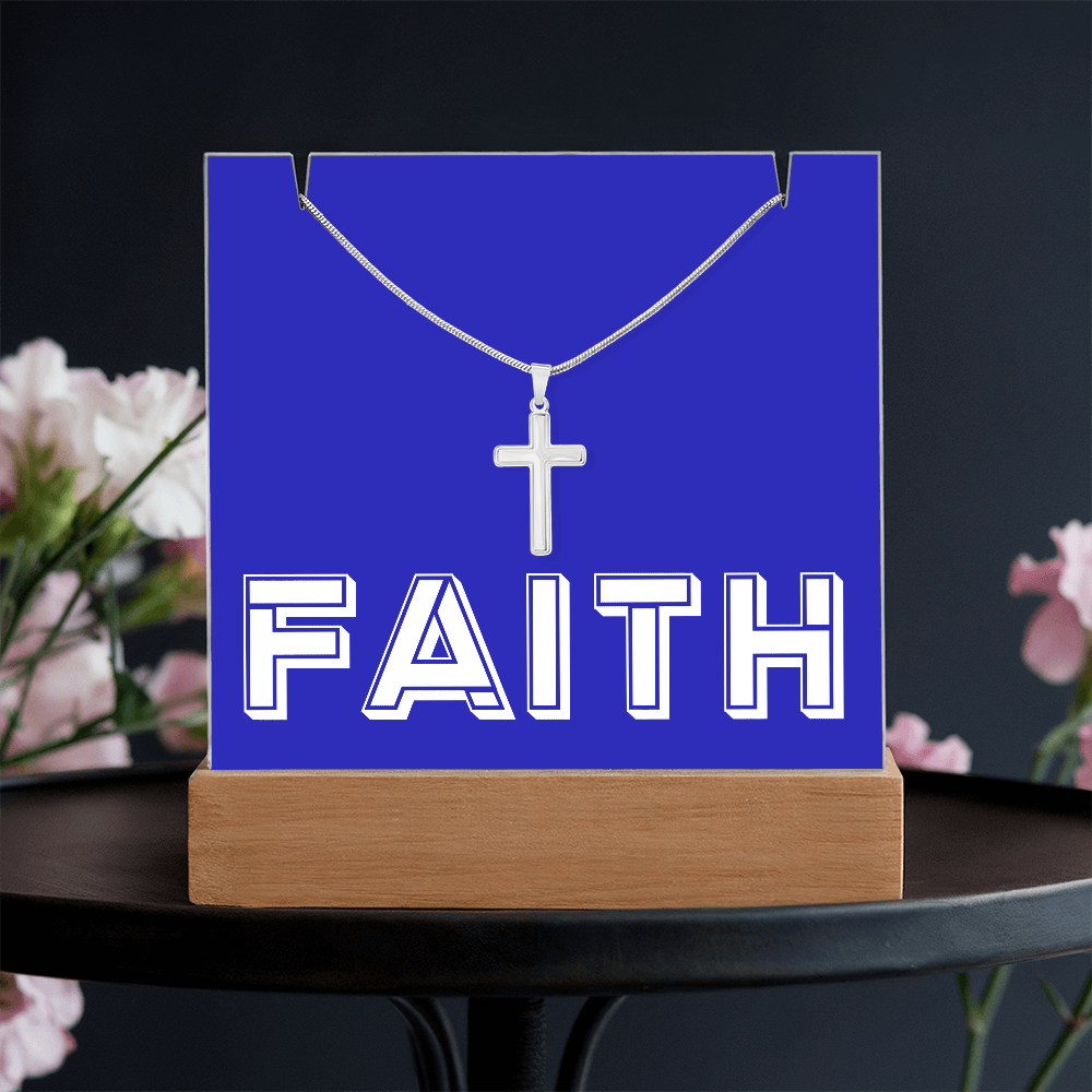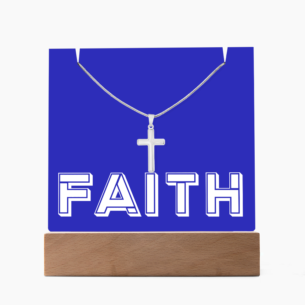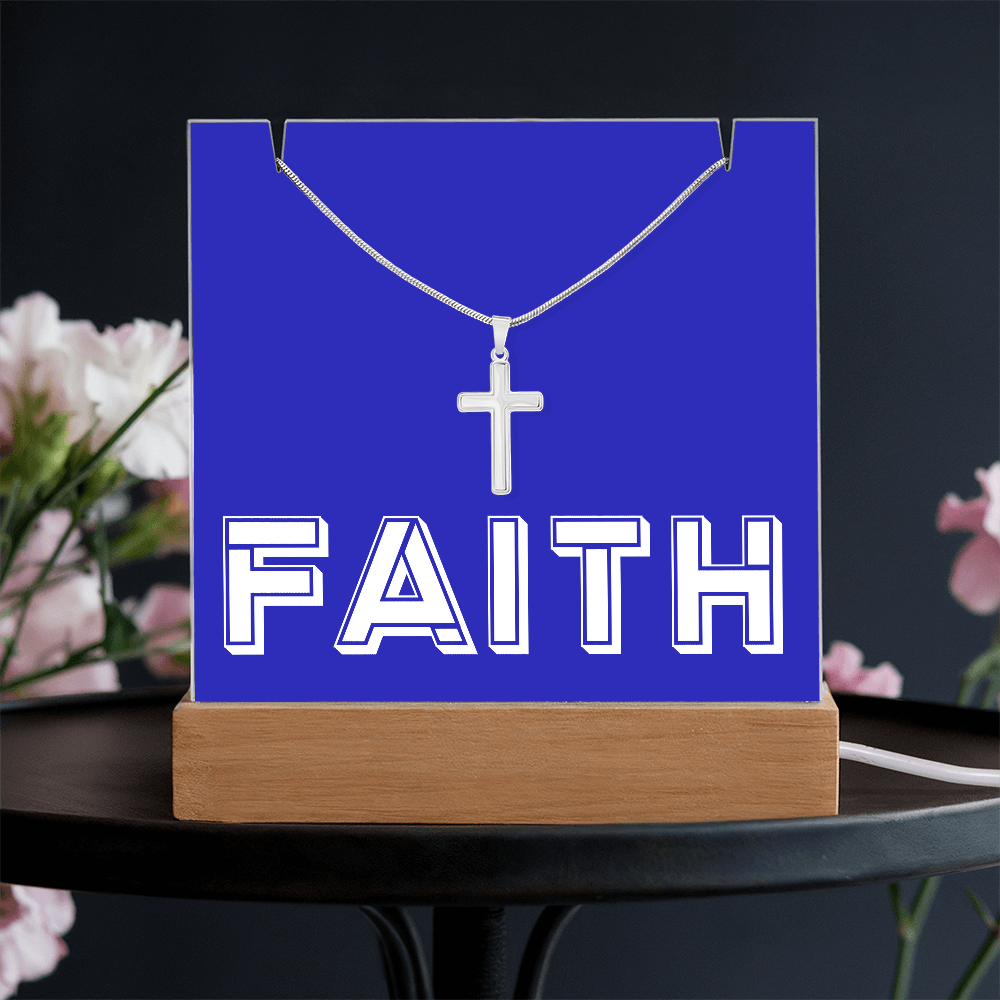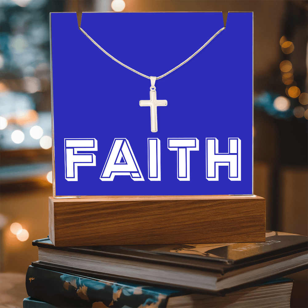 Faith (White) - Keepsake Acrylic Bundle (Square Acrylic and Cross Necklace) - Gift for Her - Gift for Him