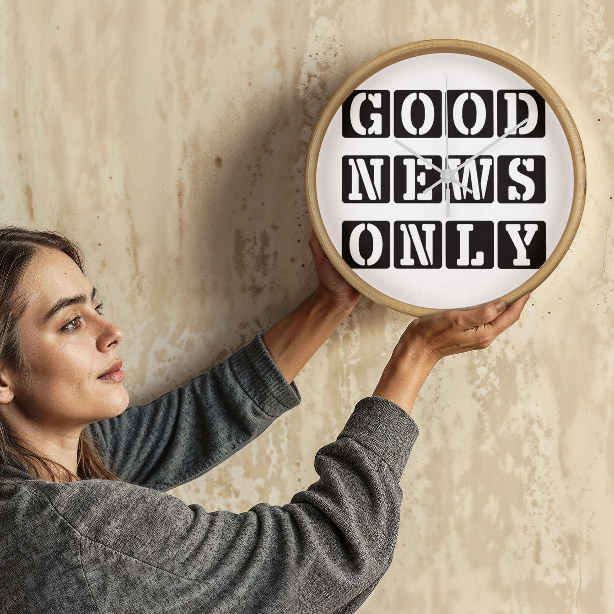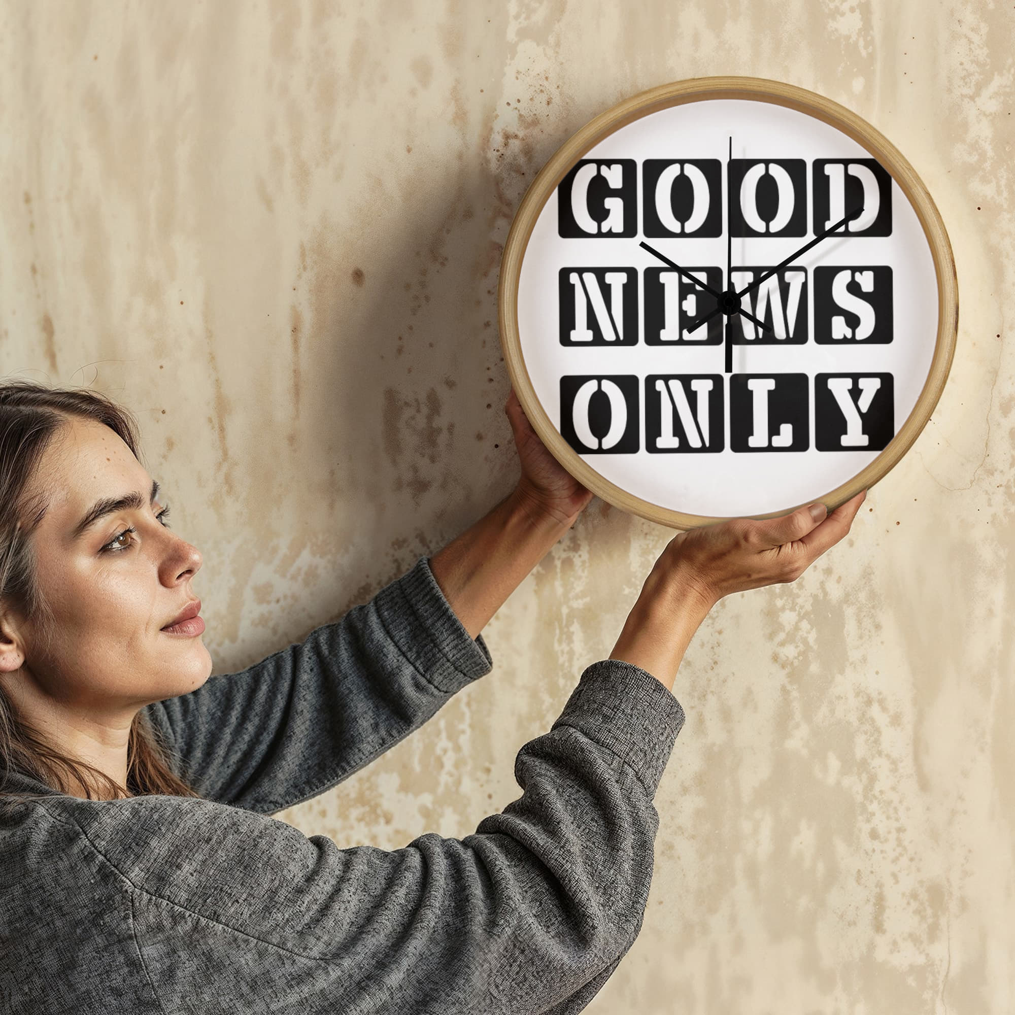 Good News Only (Black) - Wooden Frame 10" Clock - Gift for Her - Gift for Him