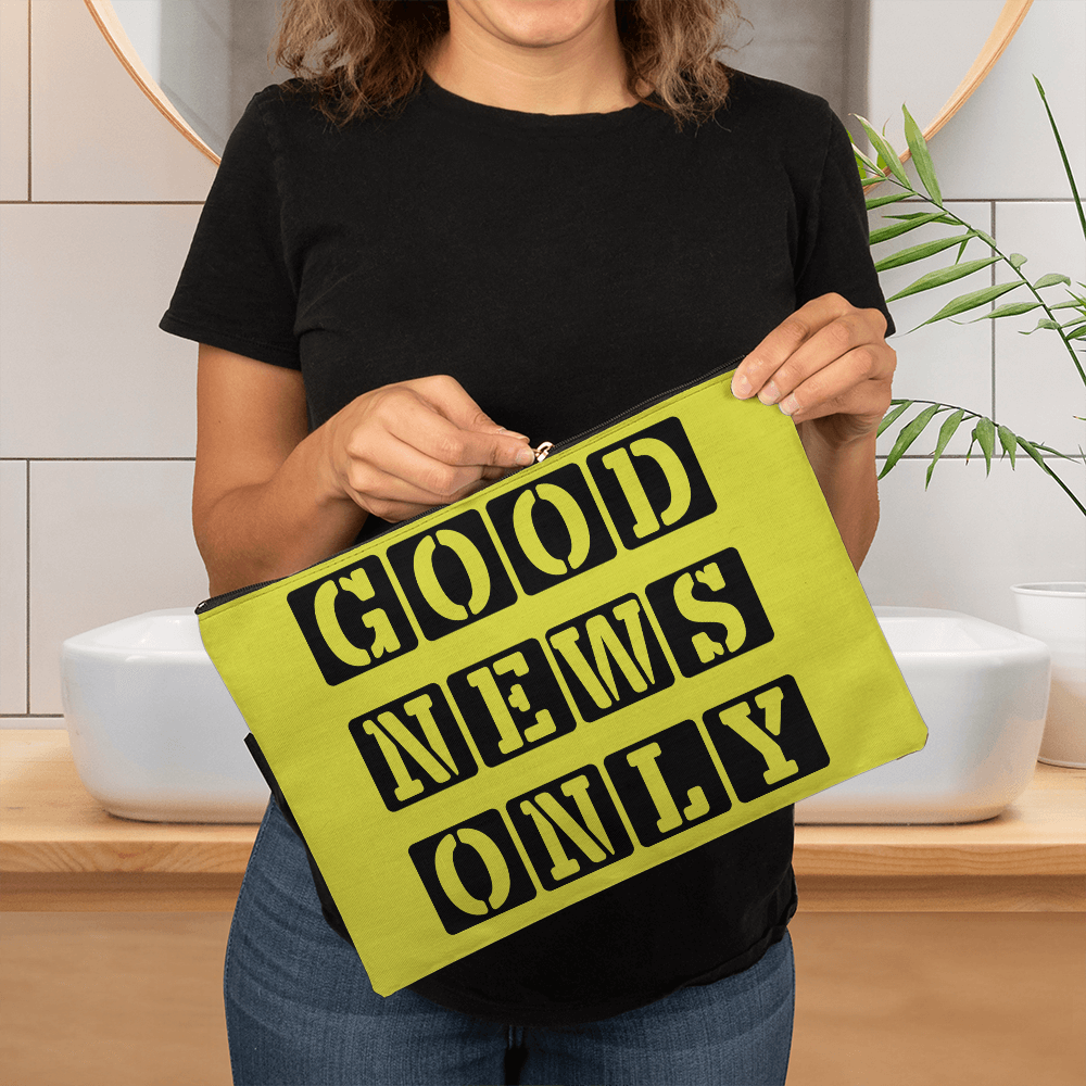 Good News Only - Large Fabric Zippered Pouch - Gift for Her - Gift for Him