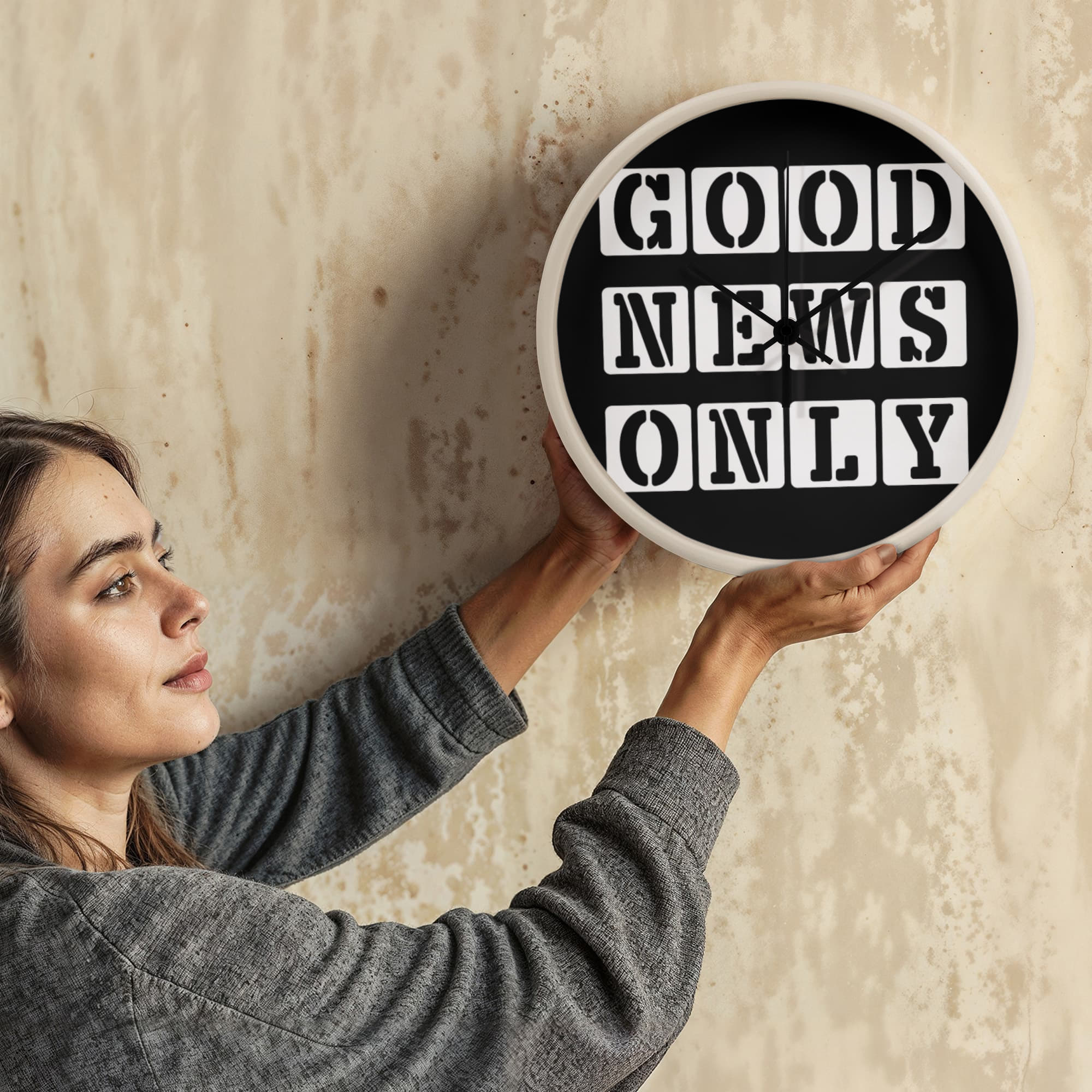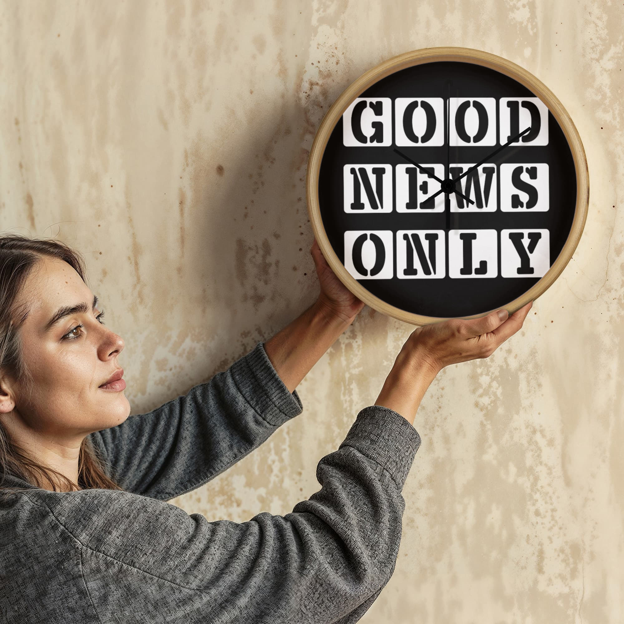 Good News Only (White) - Wooden Frame 10" Clock - Gift for Her - Gift for Him