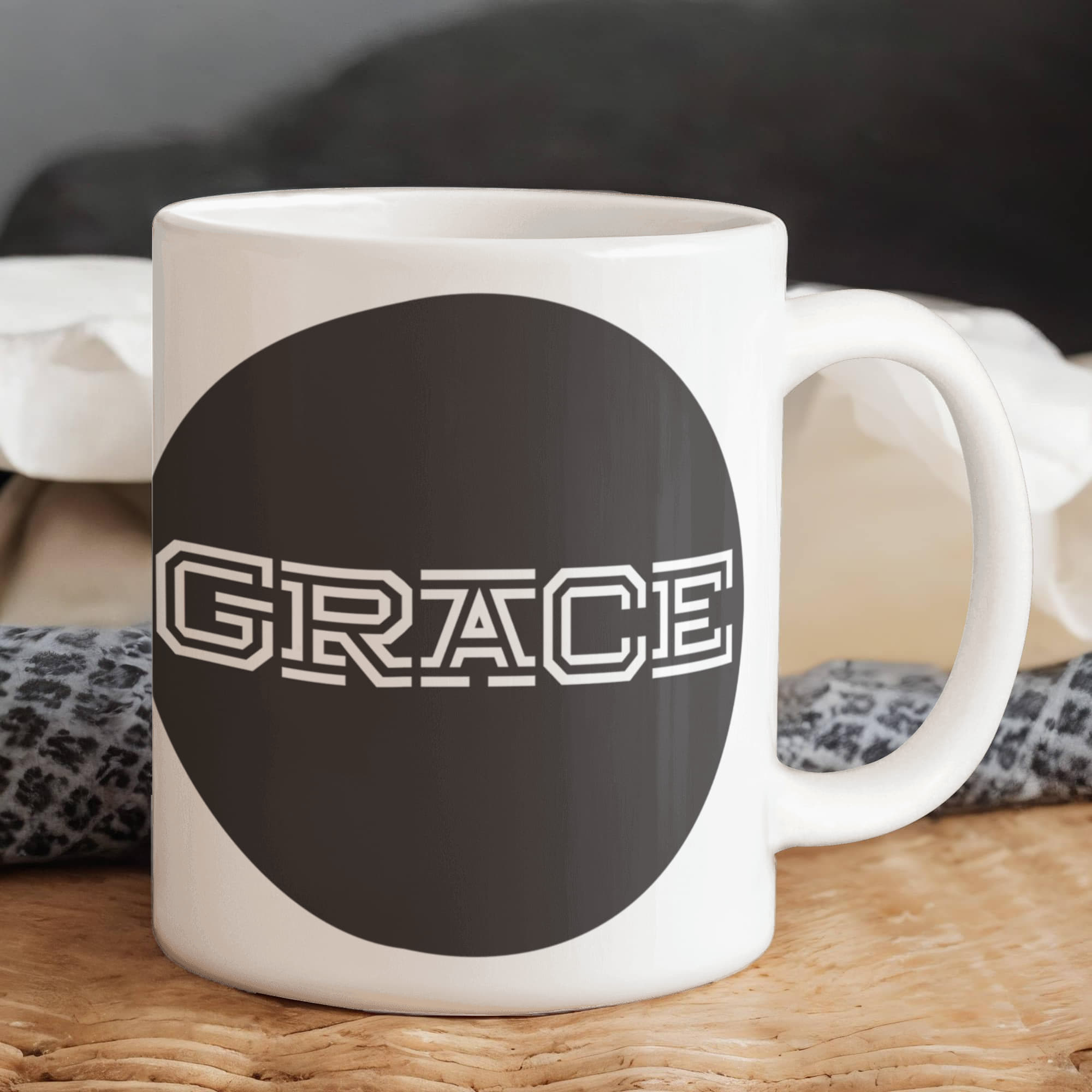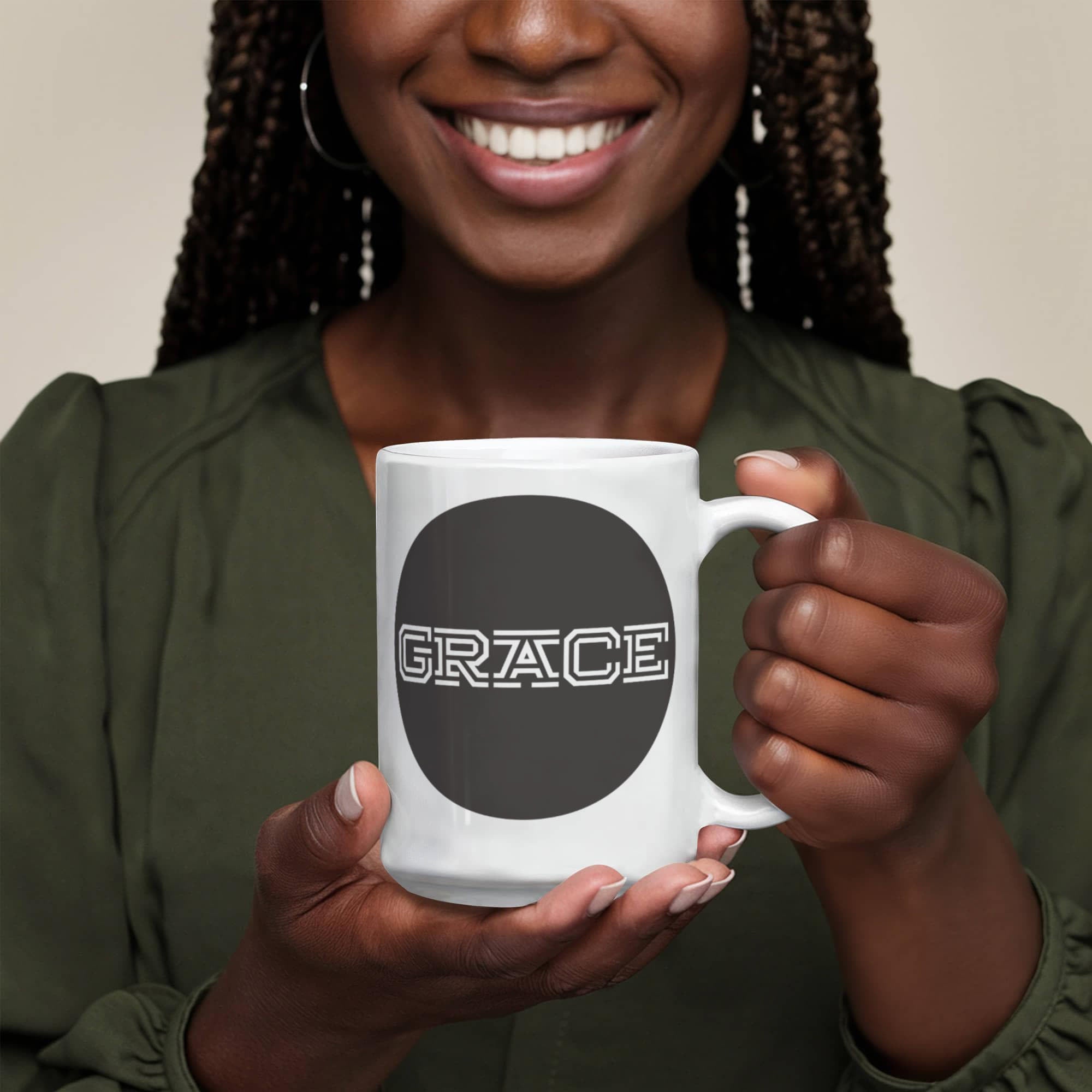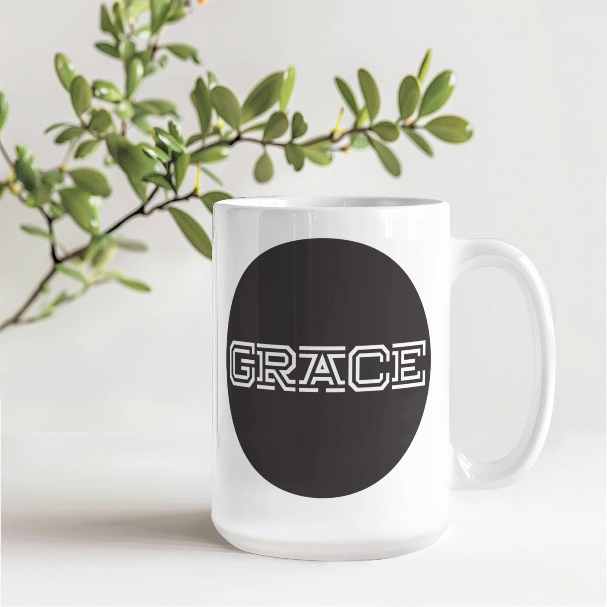 GRACE - White Ceramic Mug 11oz. & 15oz. - Gift for Her - Gift for Him