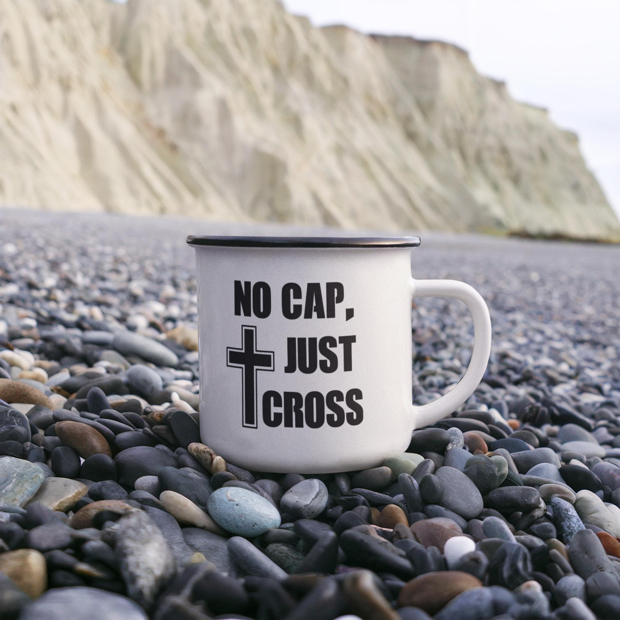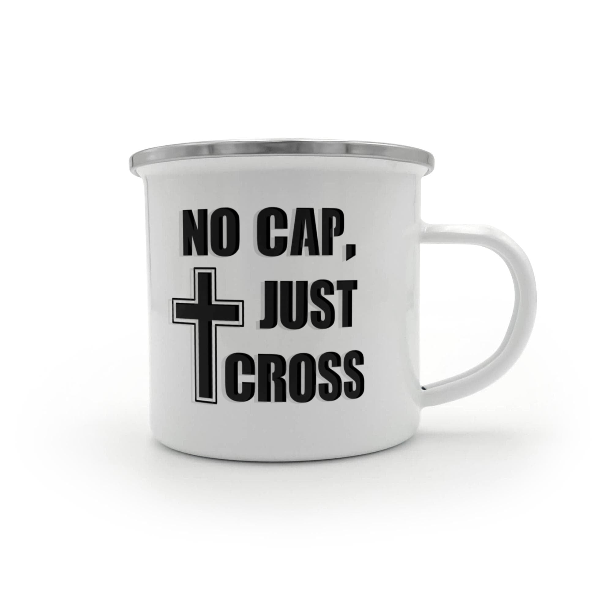 No Cap, Just Cross - 12oz Enamel Camping Mug - Gift for Her - Gift for Him