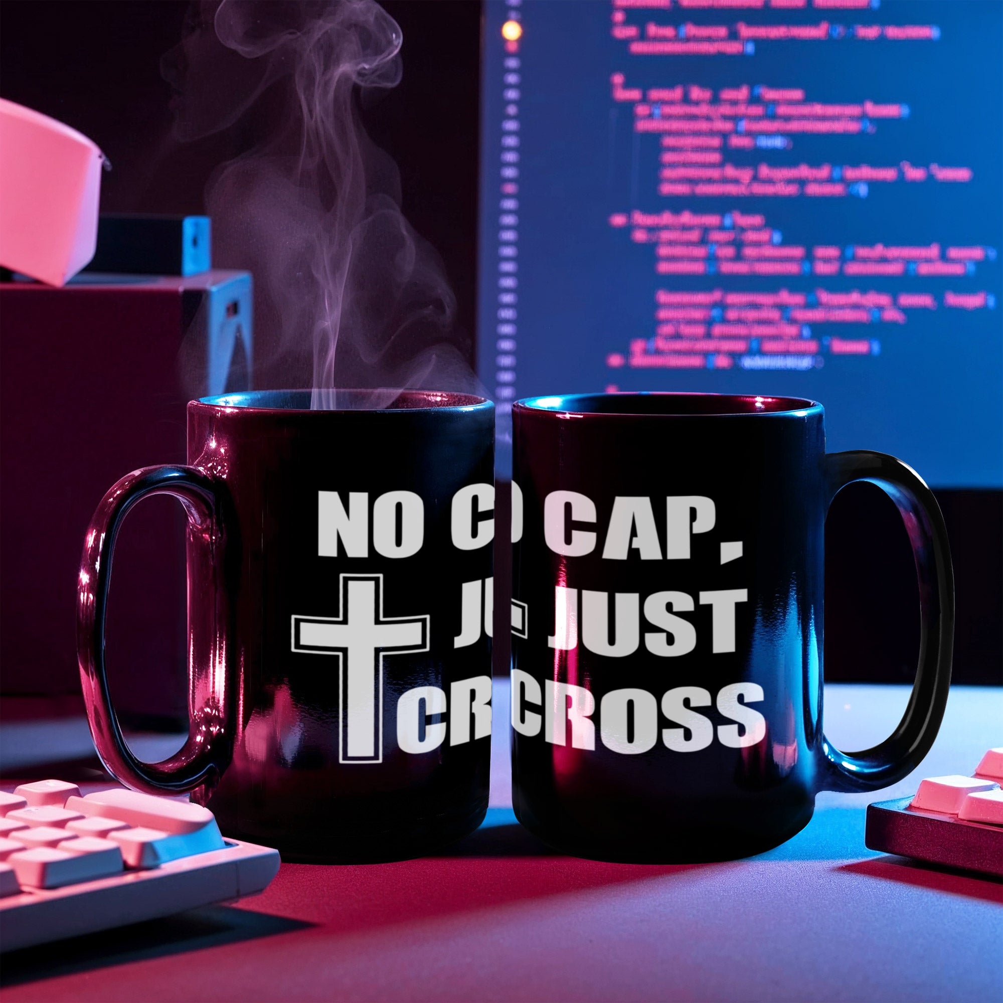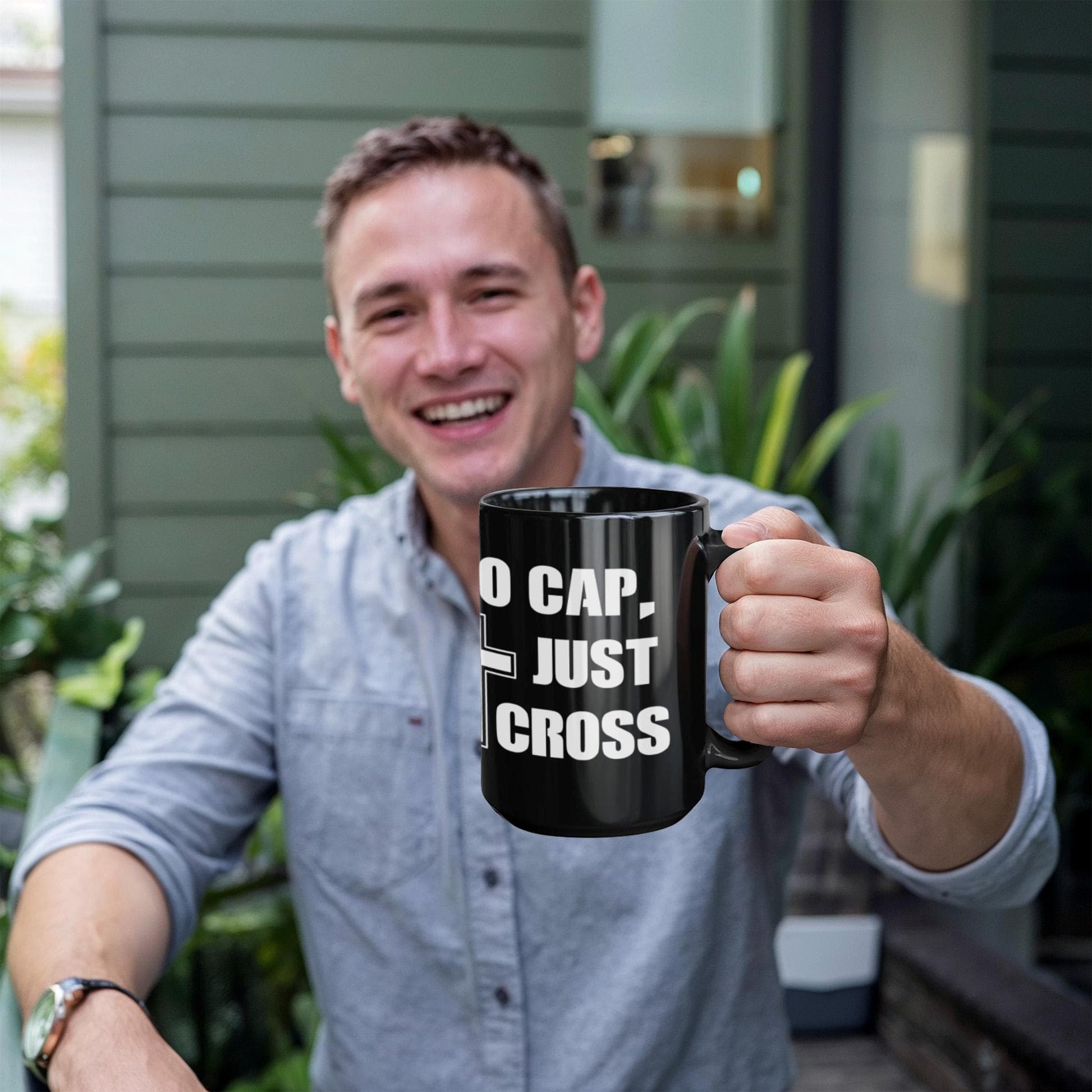 No Cap, Just Cross - Black Ceramic Mug 11oz. & 15oz. - Gift for Her - Gift for Him