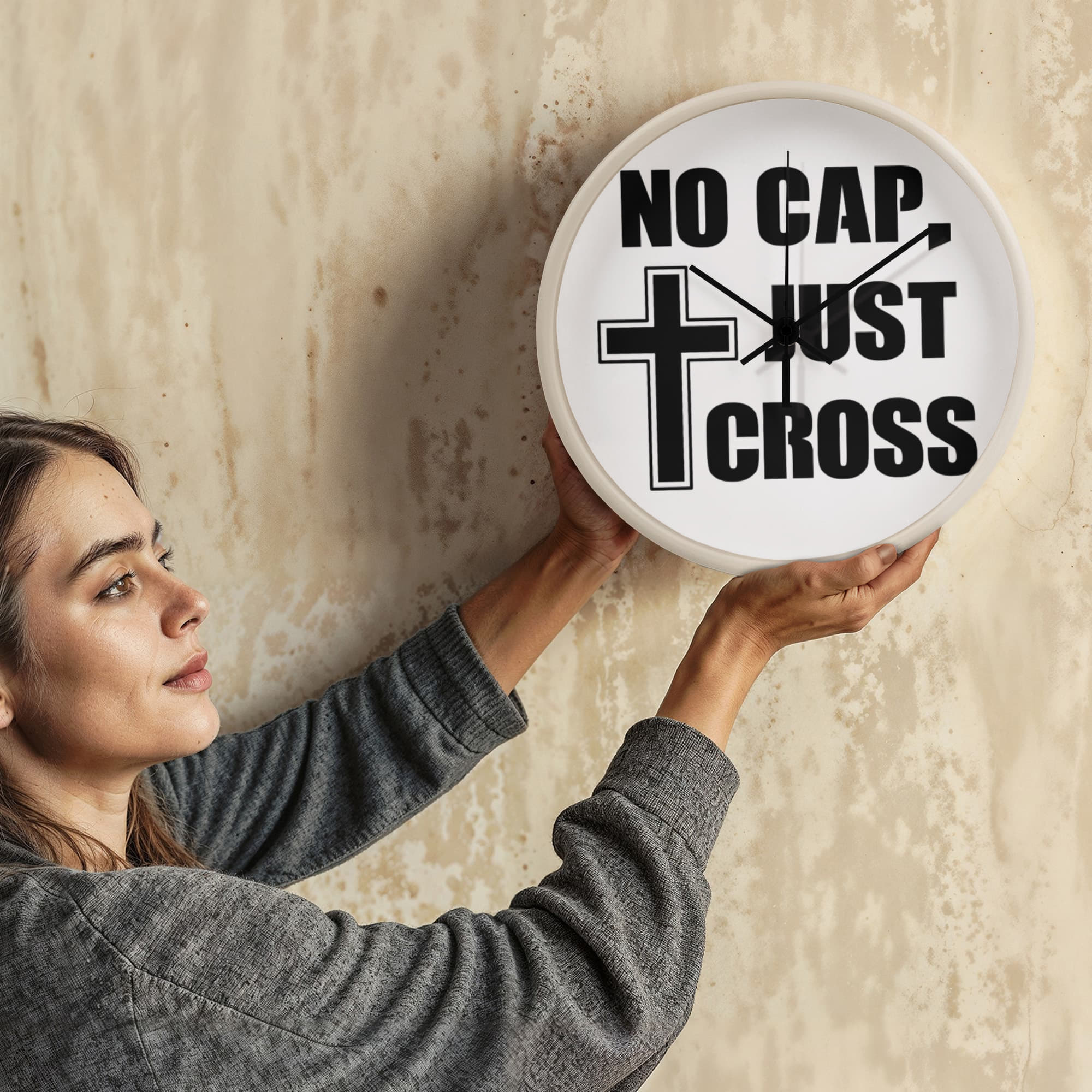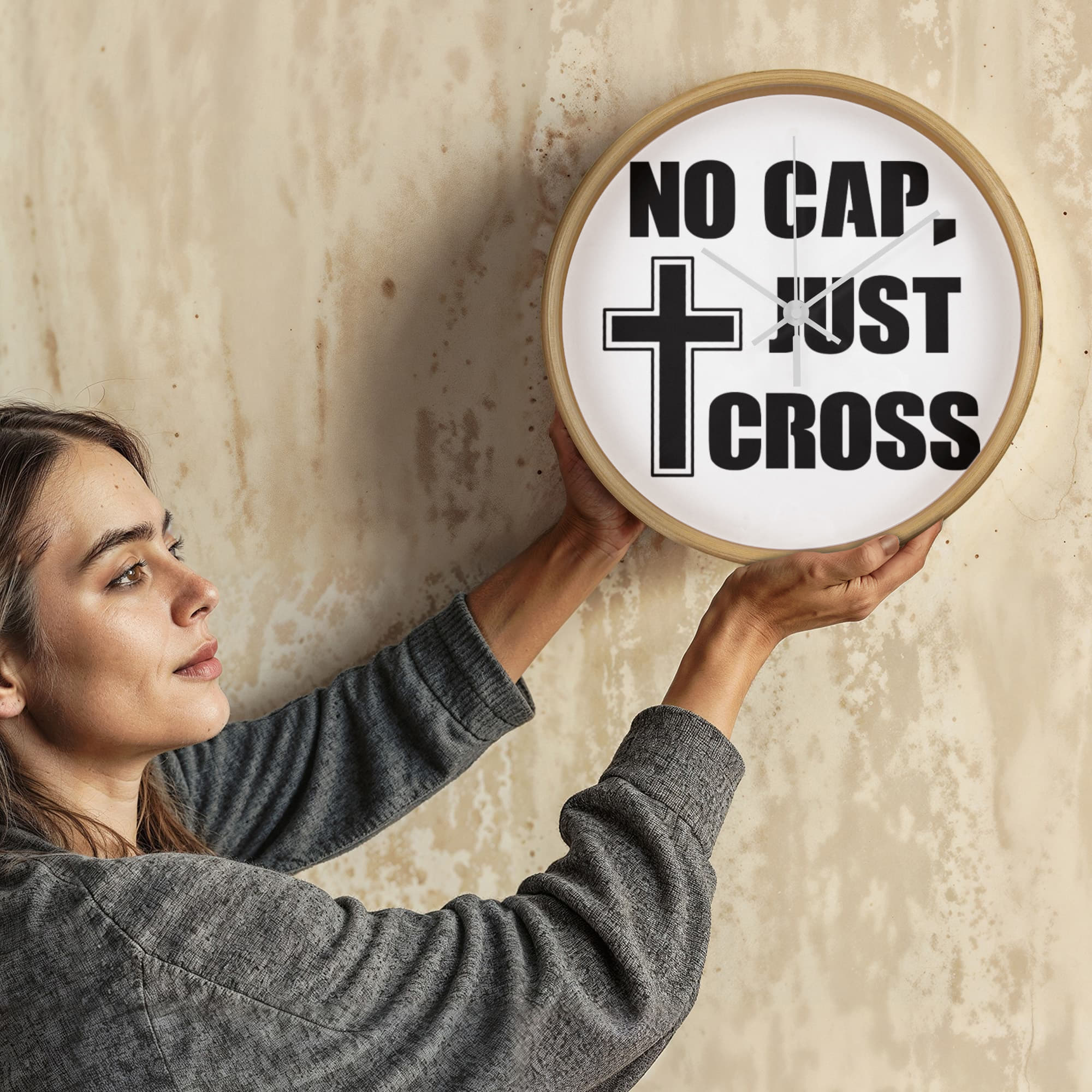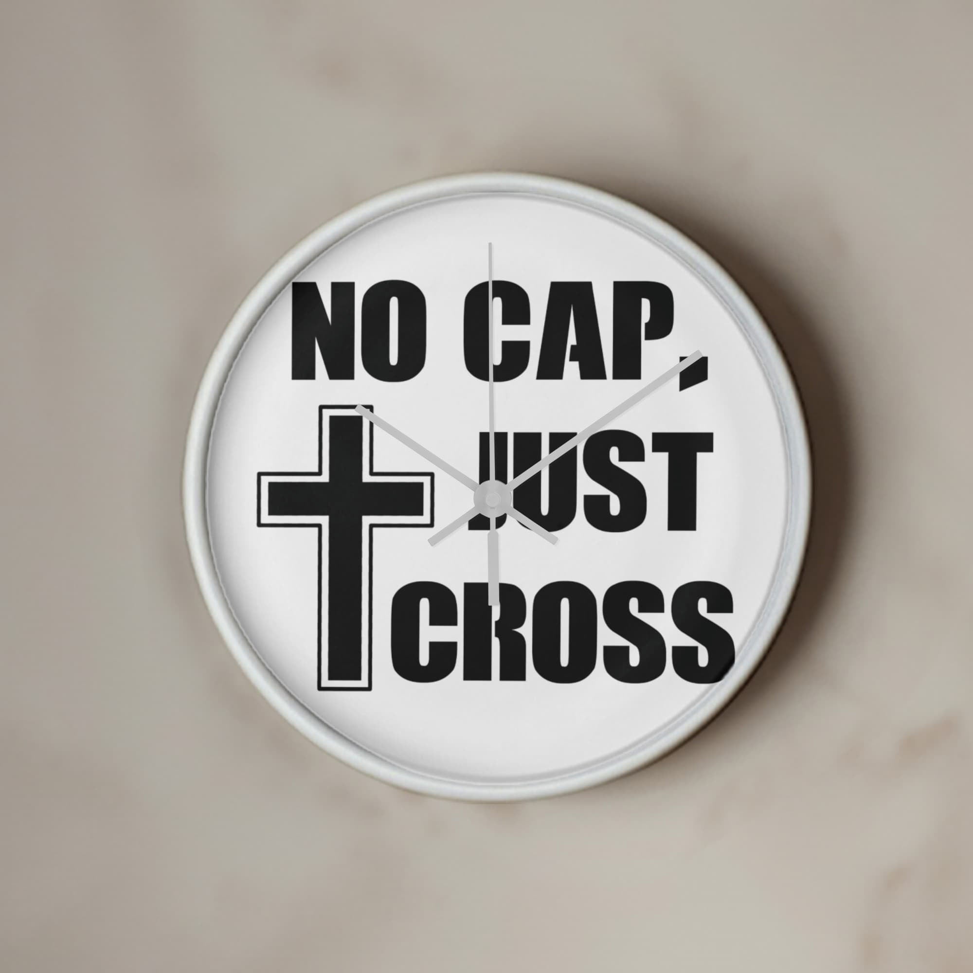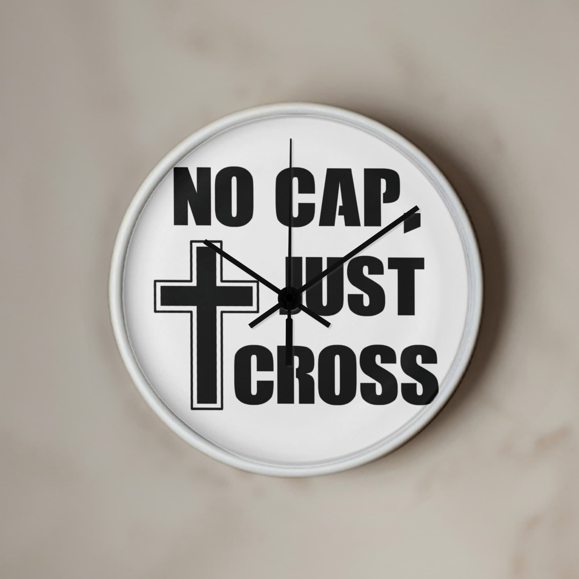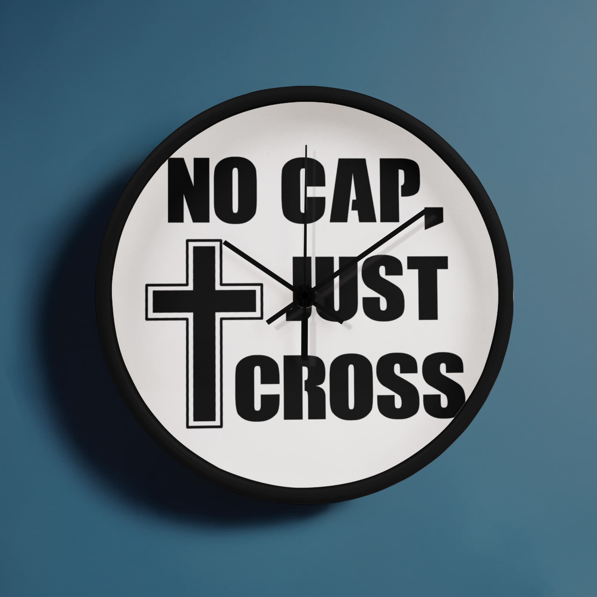 No Cap, Just Cross - Wooden Frame 10" Clock - Gift for Her - Gift for Him