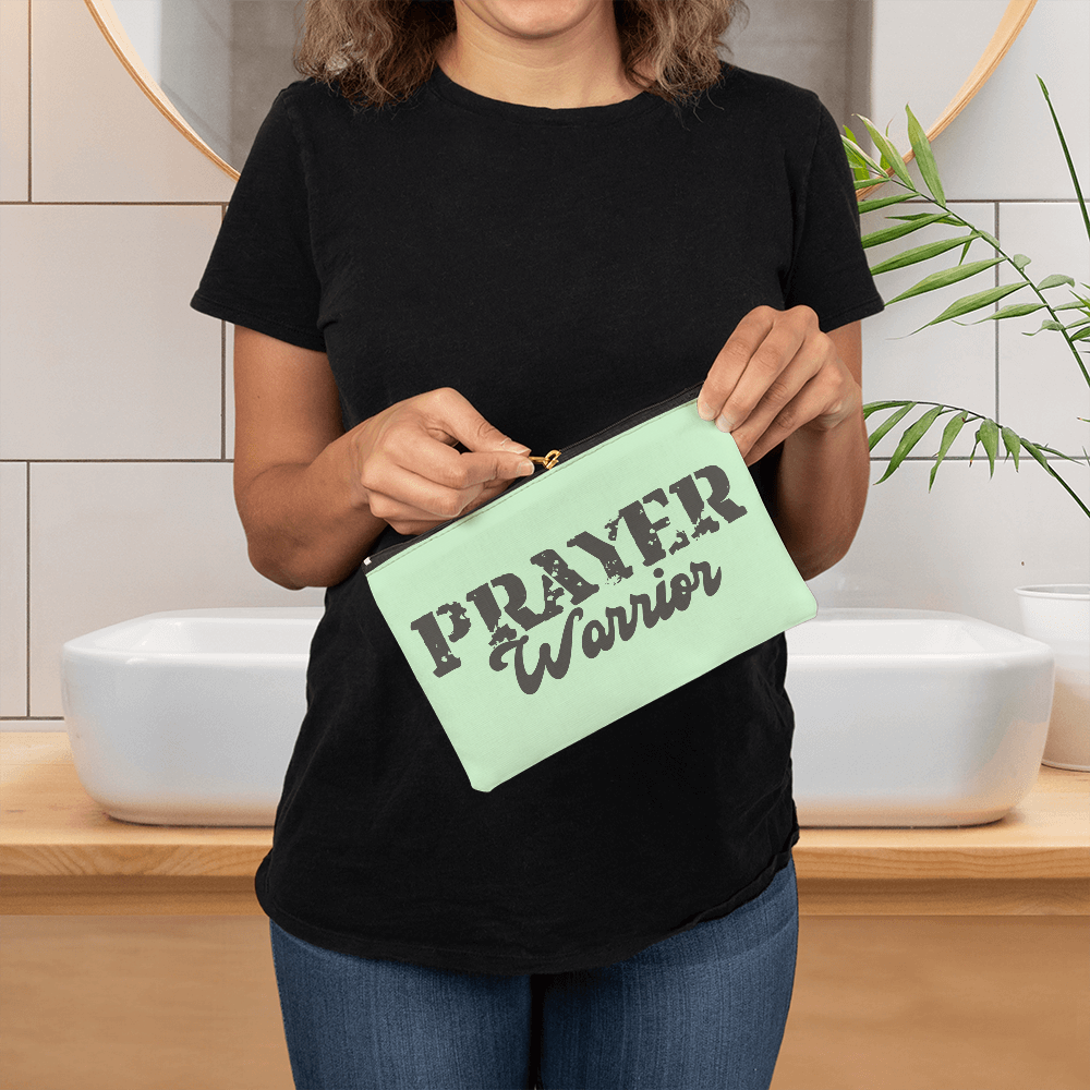 Prayer Warrior - Small Fabric Zippered Pouch - Gift for Her - Gift for Him