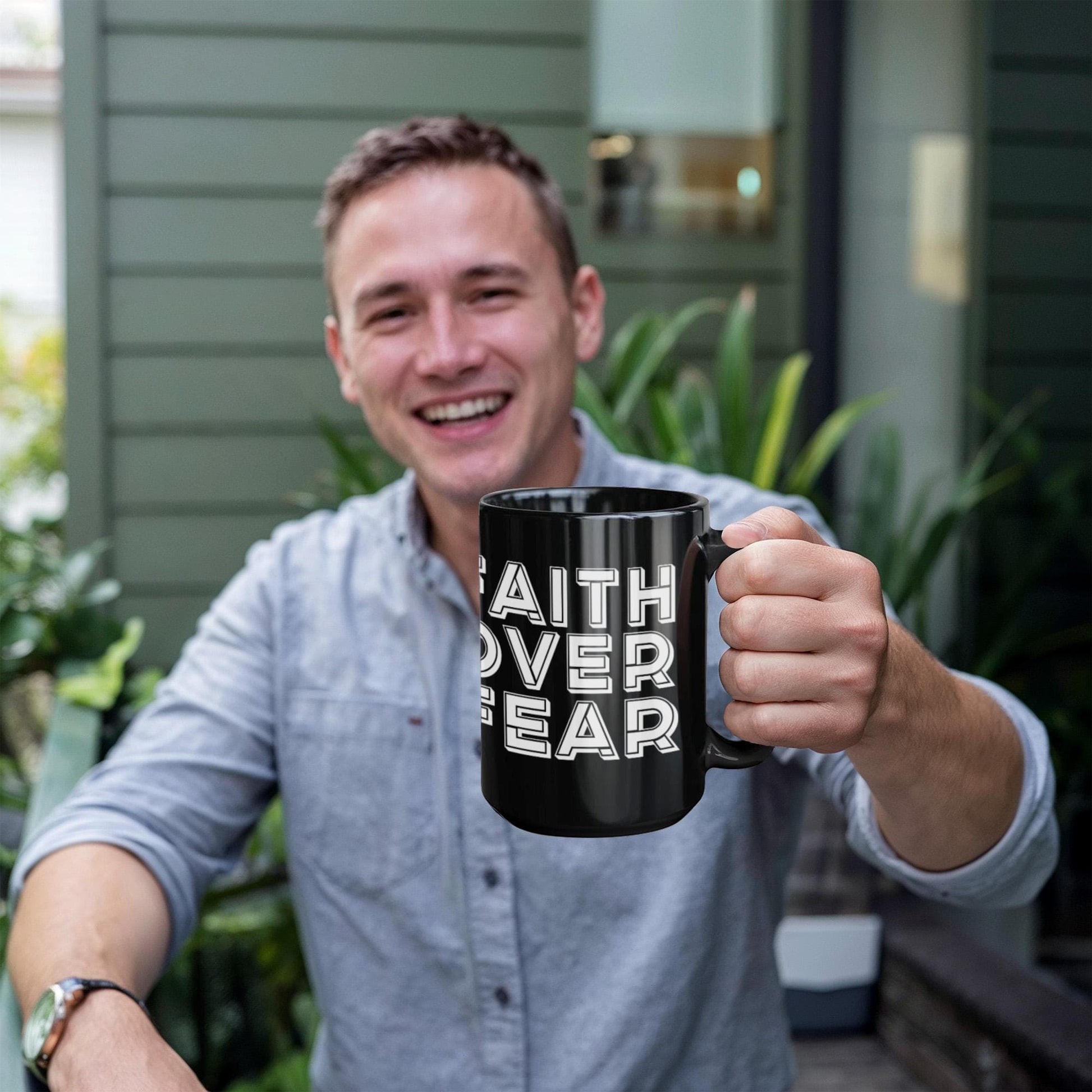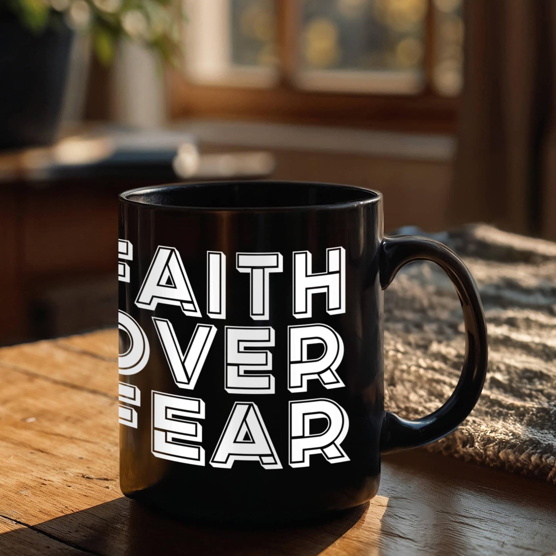 Faith Over Fear - Black Ceramic Mug 11oz. & 15oz. - Gift for Her - Gift for Him
