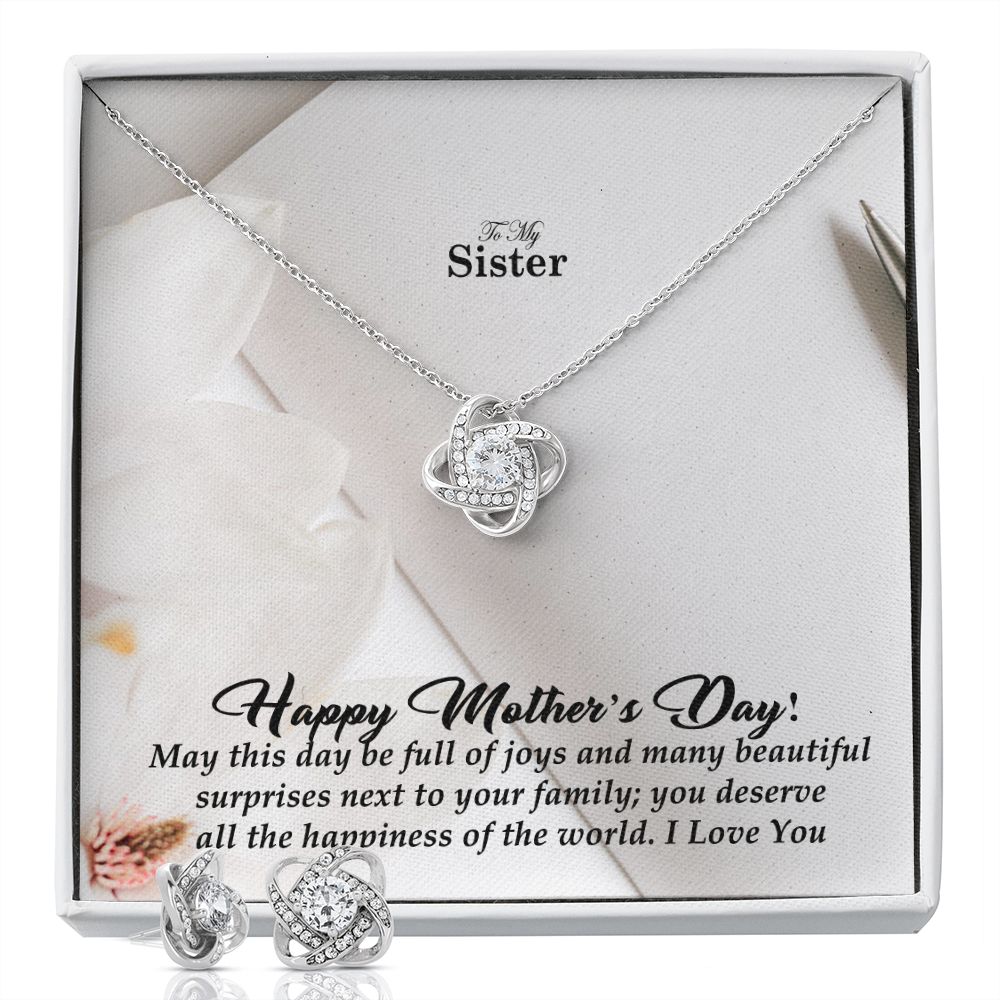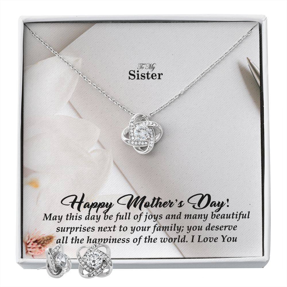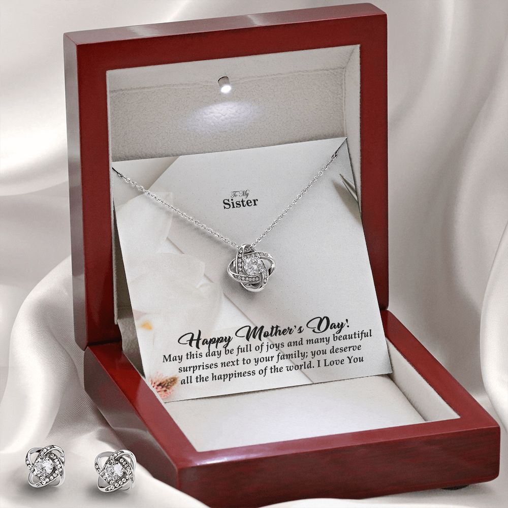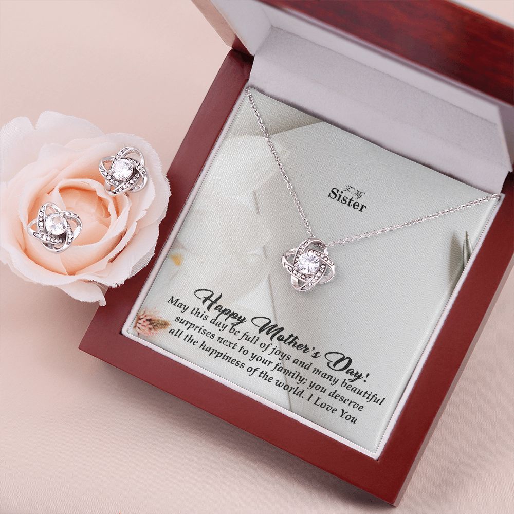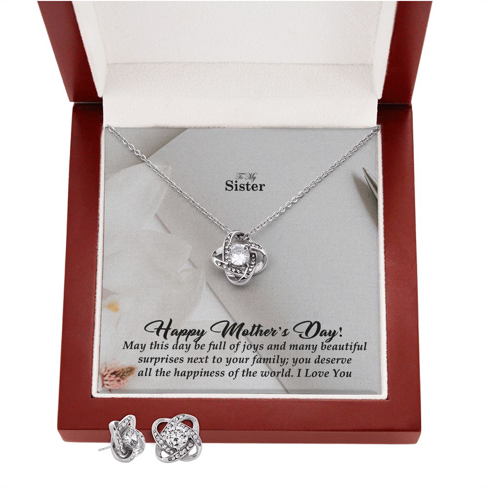 Happy Mother's Day! May This Day Be Full Of Joys & Many Beautiful Surprises Next To Your Family - Love Knot Earring & Necklace Set - Gift for Sister