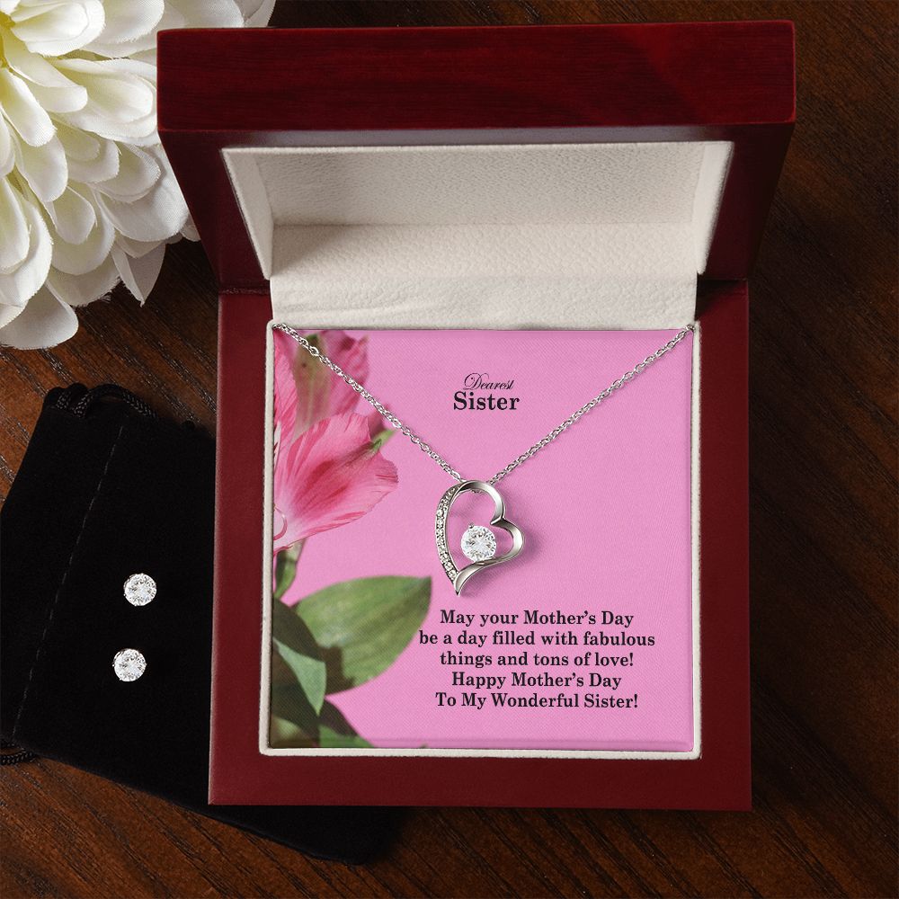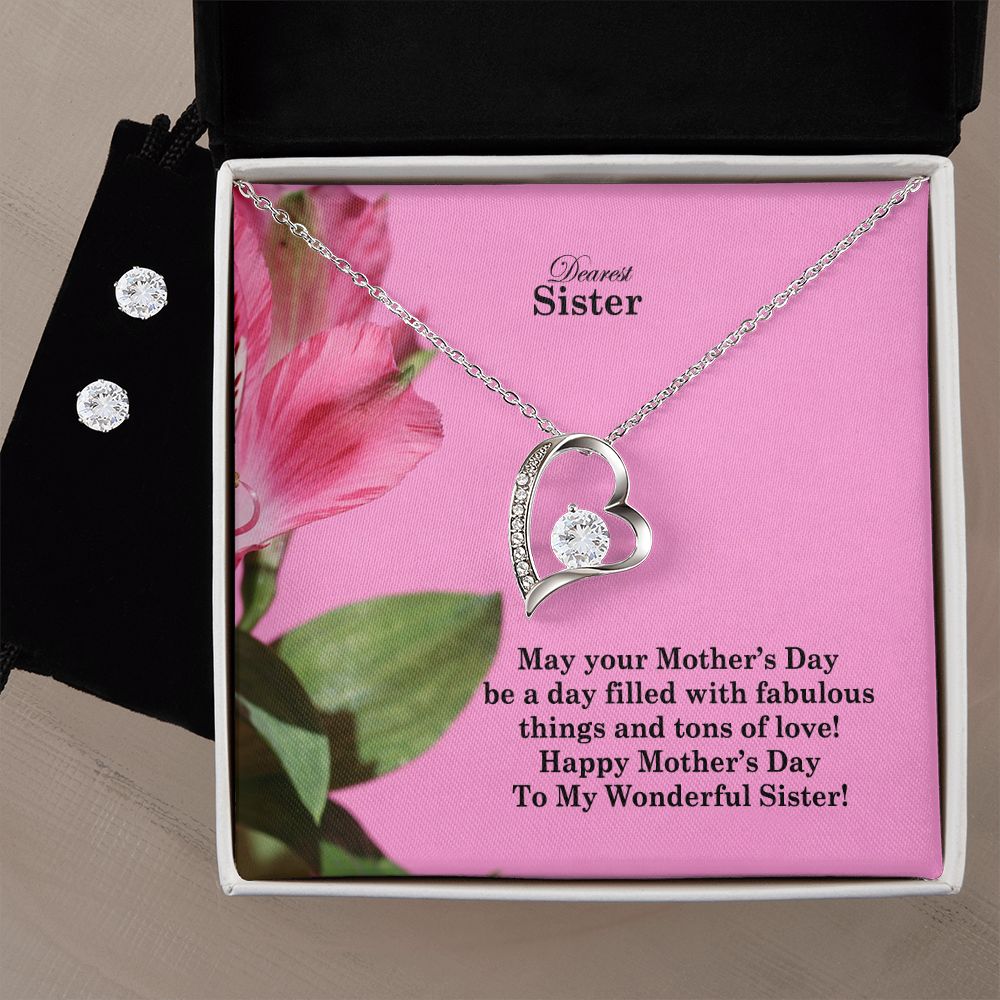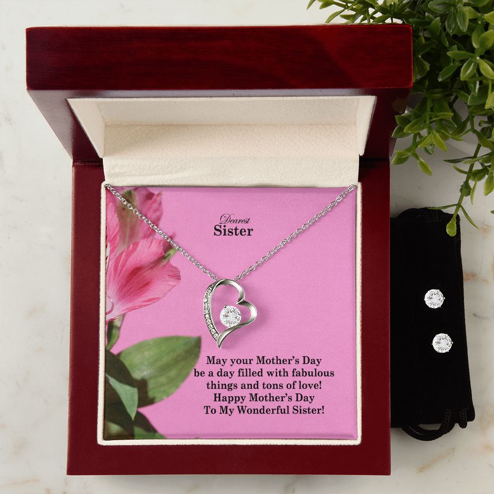 May Your Mother's Day Be A Day Filled With Fabulous Things & Tons Of Love! - Happy Mother's Day - Forever Love Necklace & Clear CZ Earrings - Gift for Sister