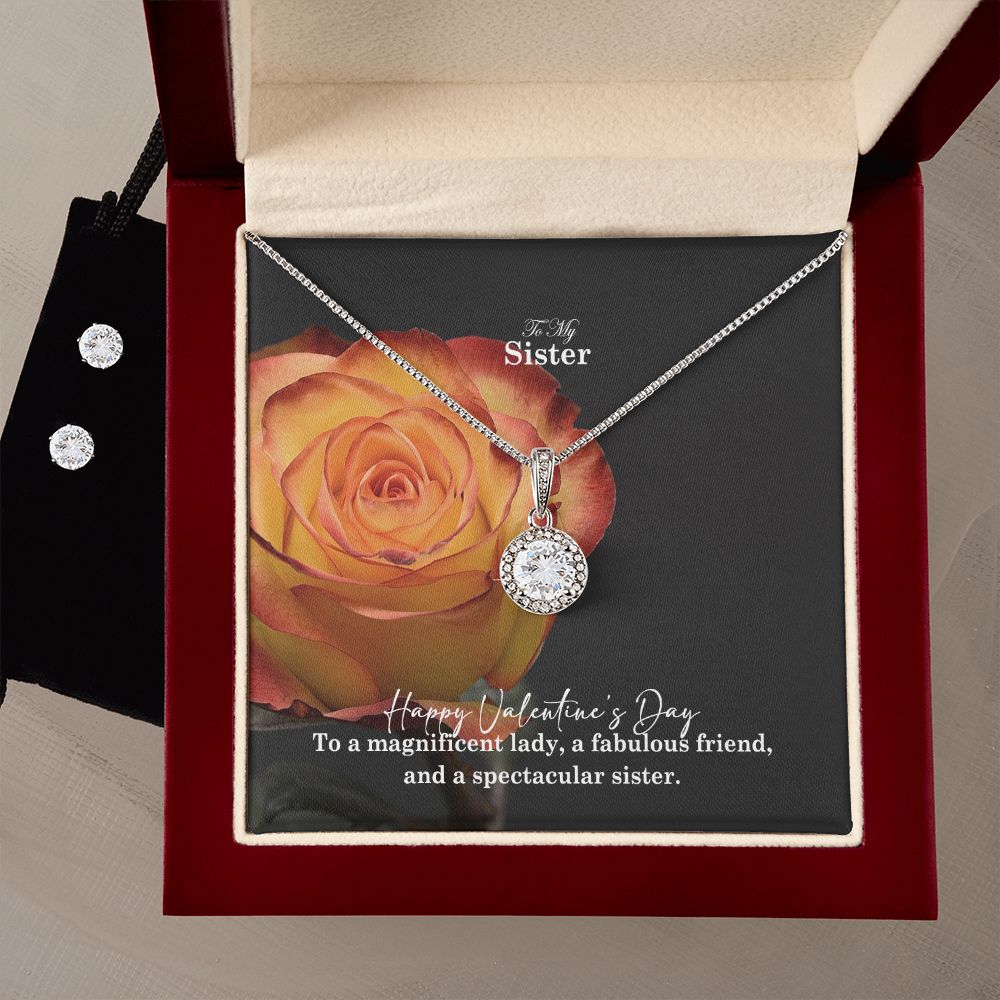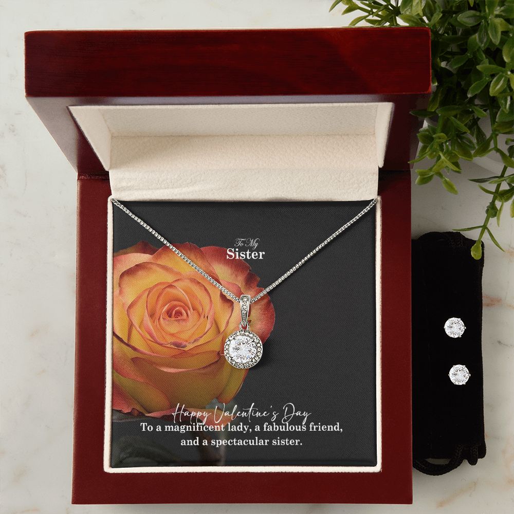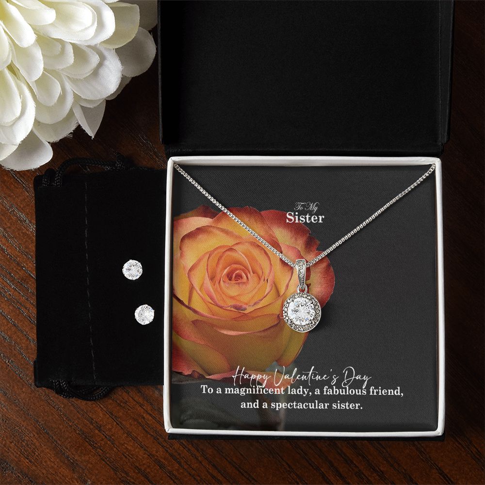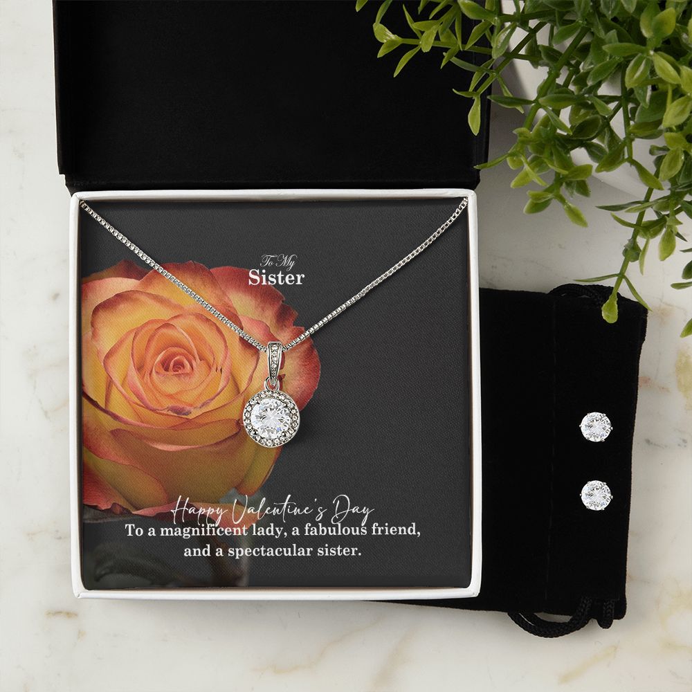 To My Sister, Happy Valentine's Day To A Magnificent Lady - Eternal Hope Necklace & Clear CZ Earrings - Gift for Sister