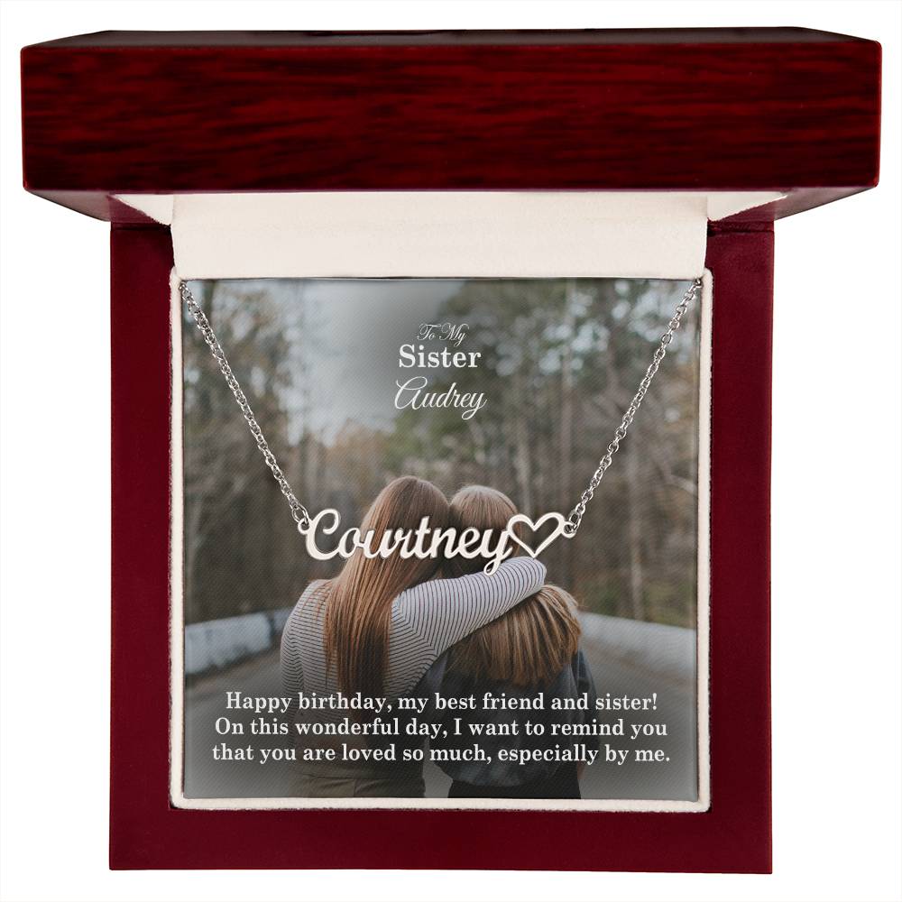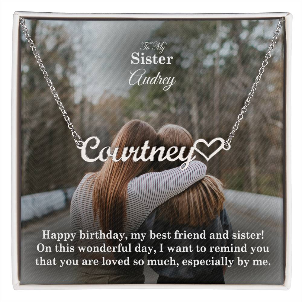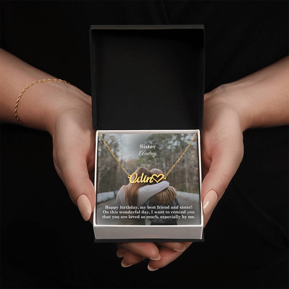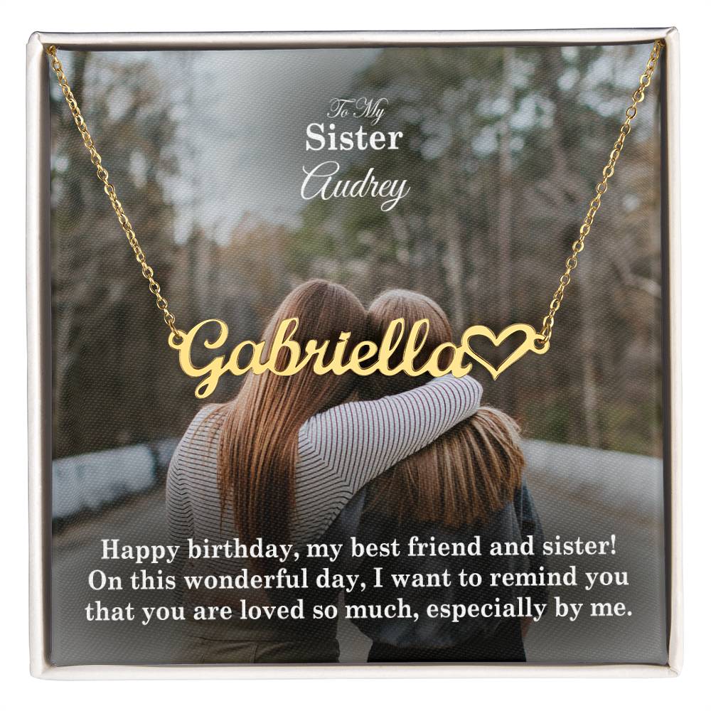To My Sister, I Want To Remind You That You Are Loved So Much - Happy Birthday - Name Necklace + Heart Character with Message Card - Gift for Sister