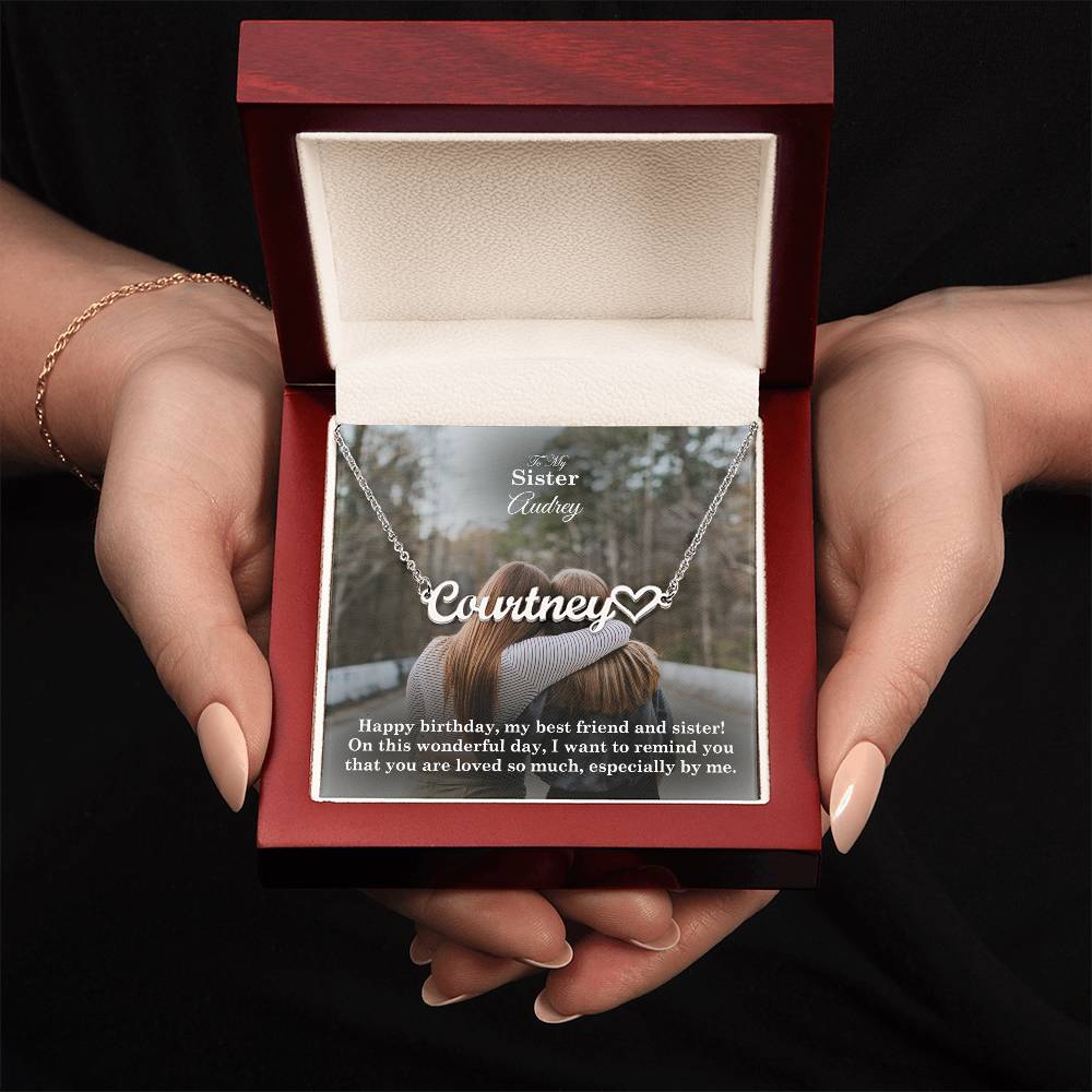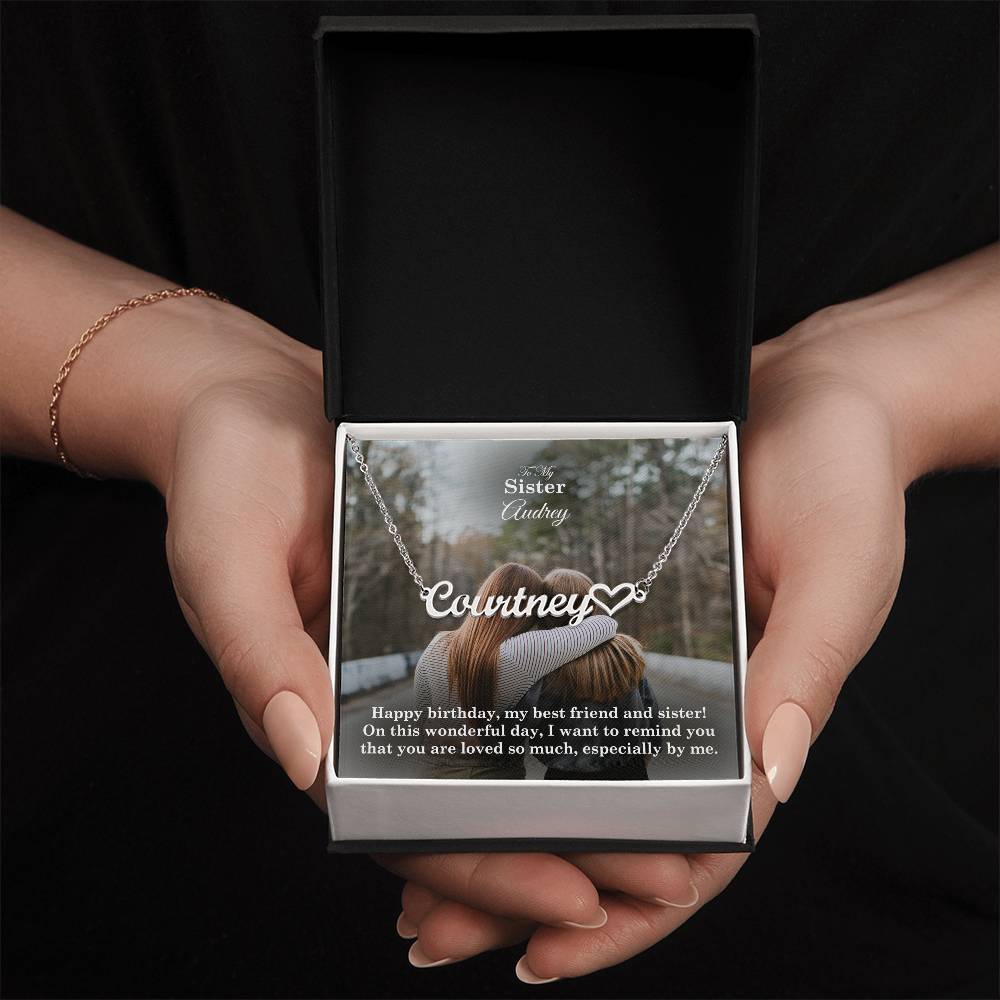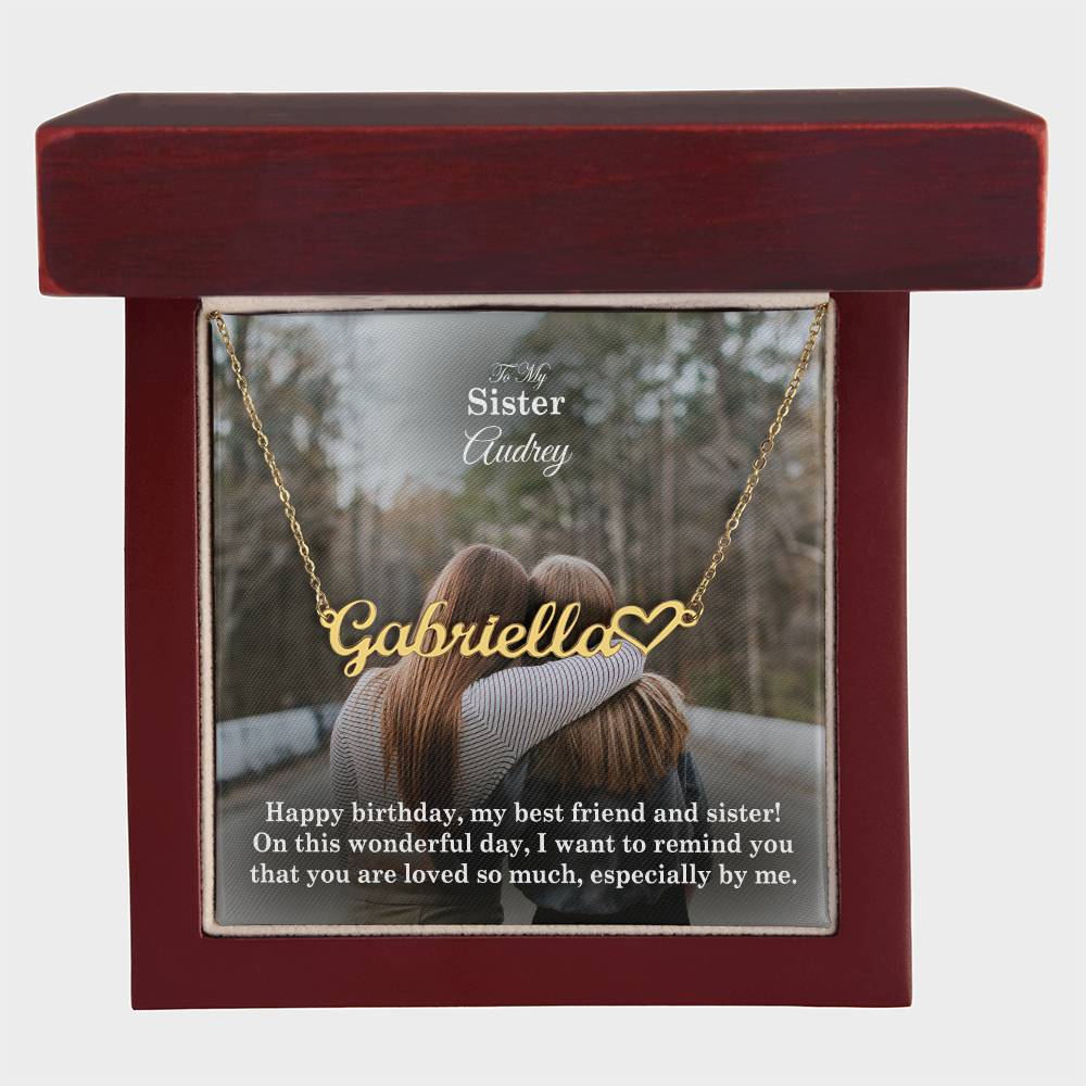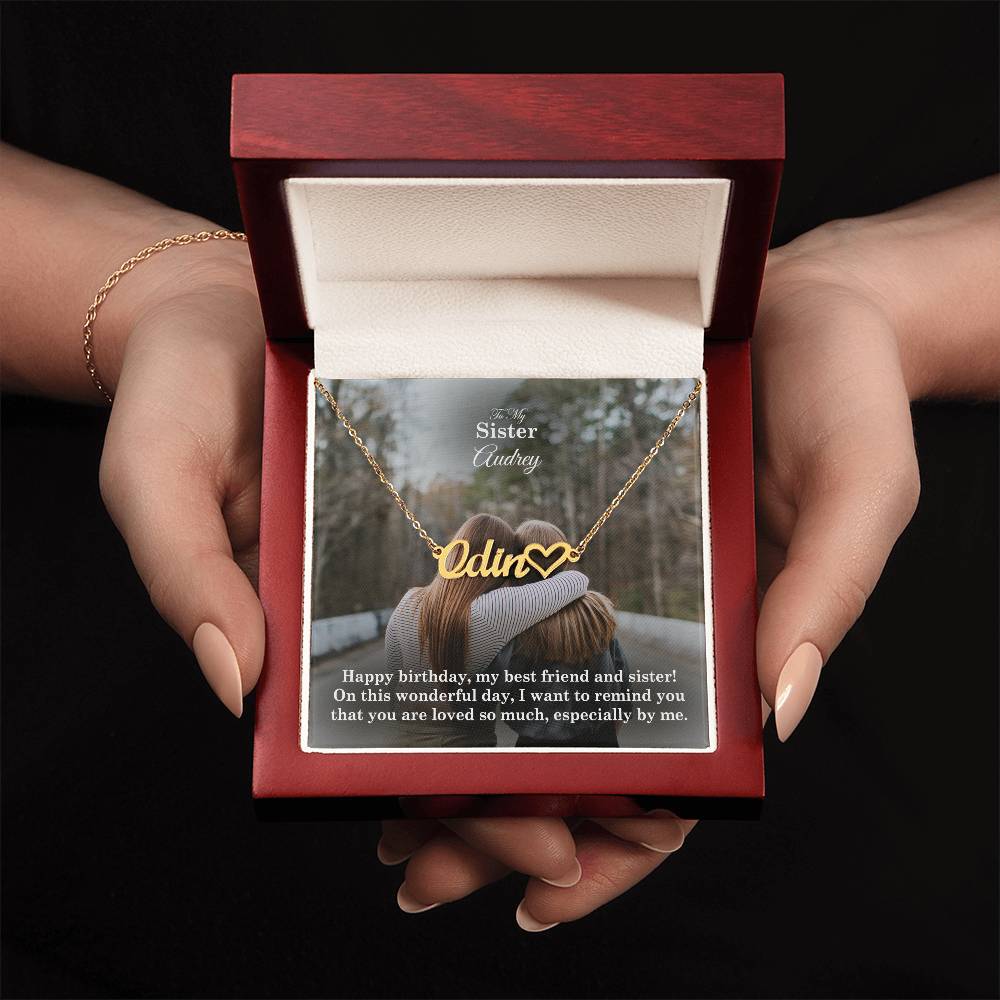 To My Sister, I Want To Remind You That You Are Loved So Much - Happy Birthday - Name Necklace + Heart Character with Message Card - Gift for Sister