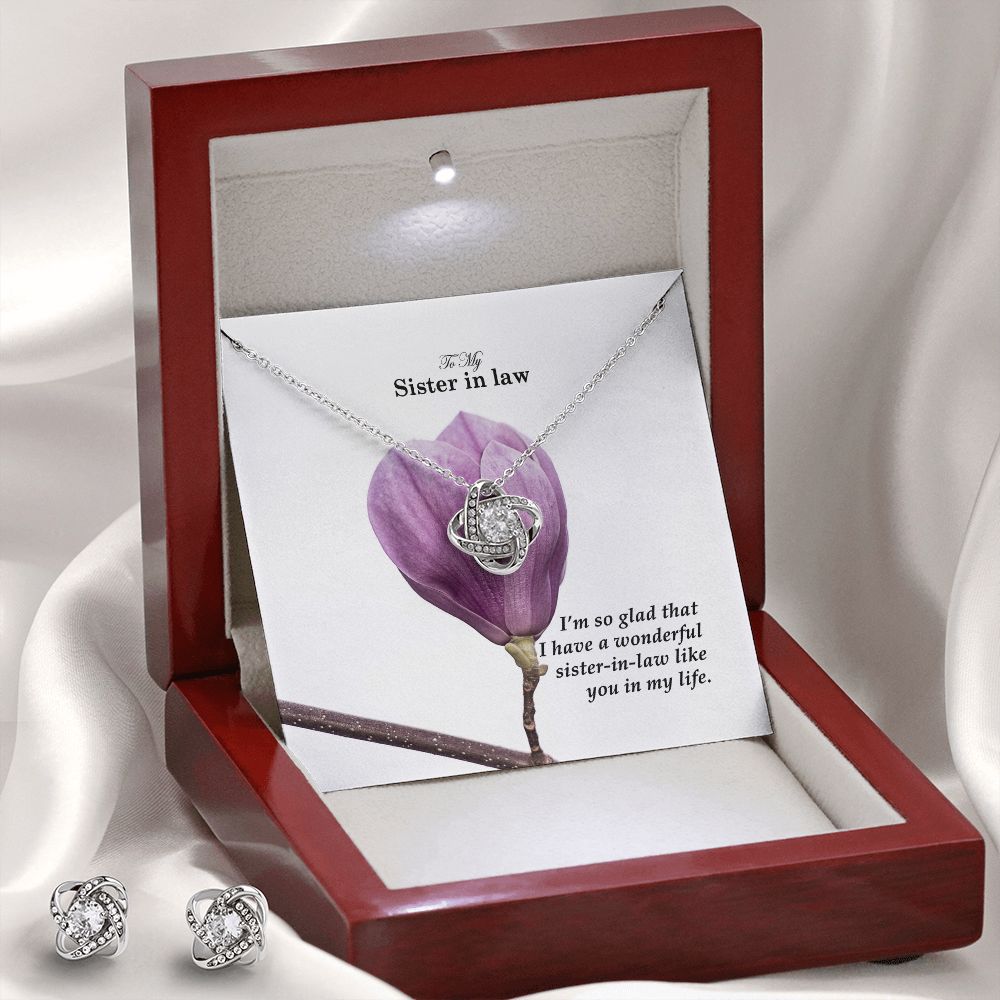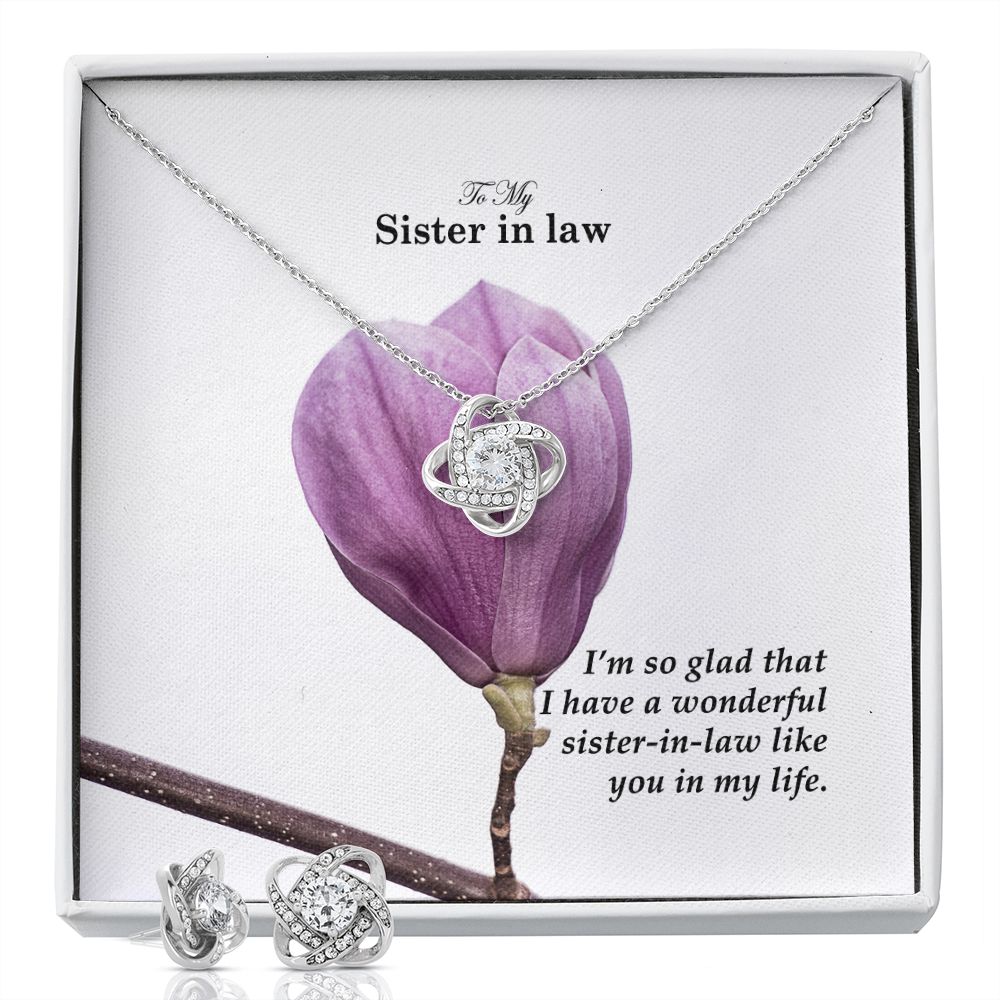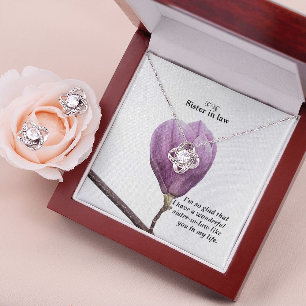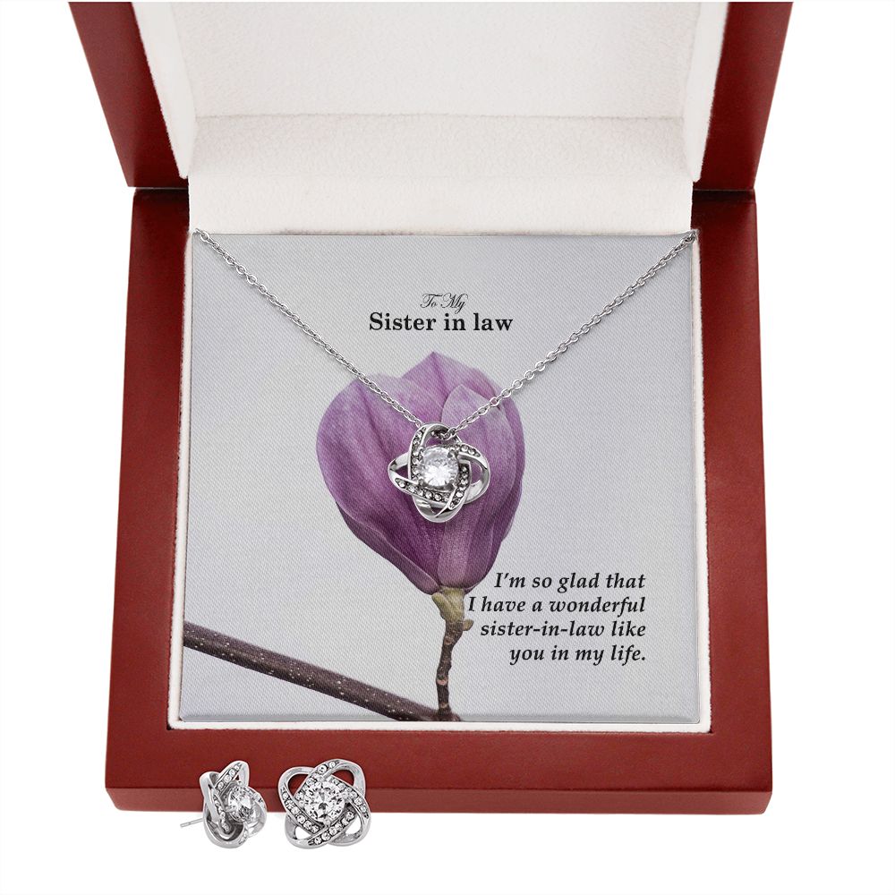 To My Sister in law, I'm So Glad That I Have A Wonderful Sister-in-law Like You In My Life - Love Knot Earring & Necklace Set - Gift for Sister in Law