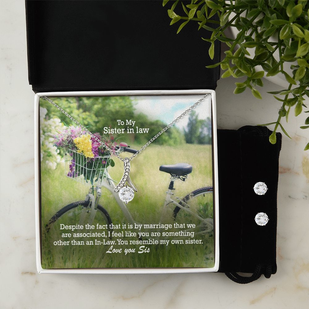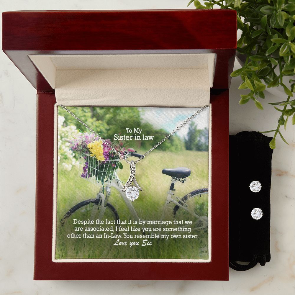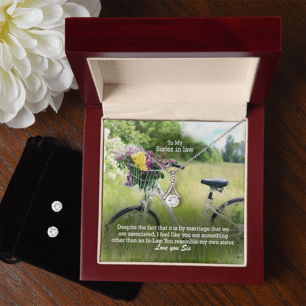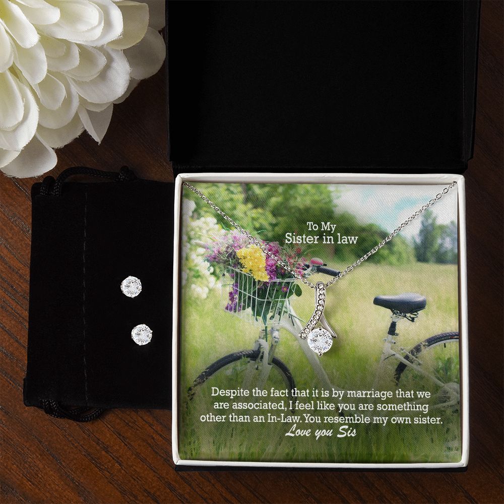 To My Sister in law, You Resemble My Own Sister. Love You Sis - Alluring Beauty Necklace & Clear CZ Earrings - Gift for Sister in Law