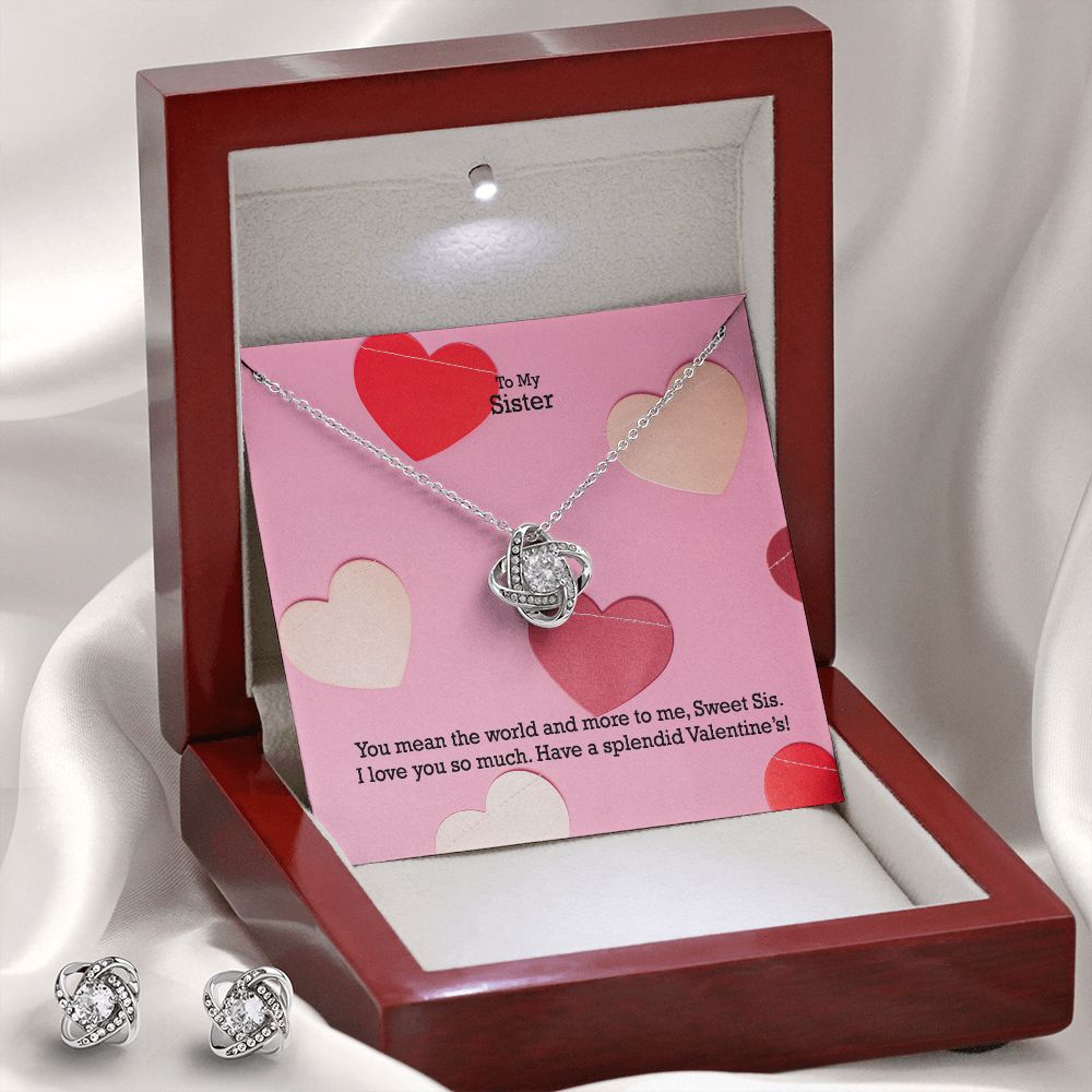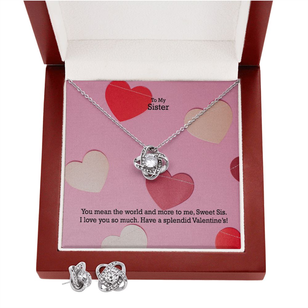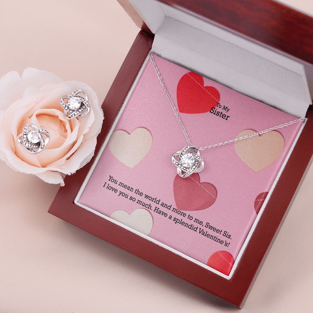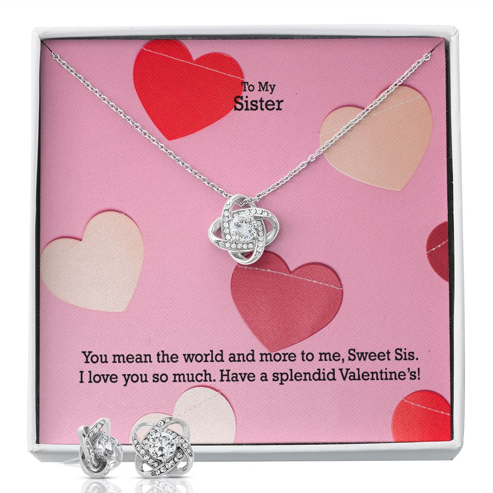 To My Sister, You Mean The World And More To Me - Love Knot Earring & Necklace Set - Gift for Sister