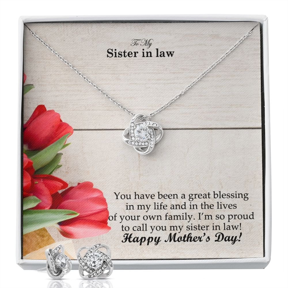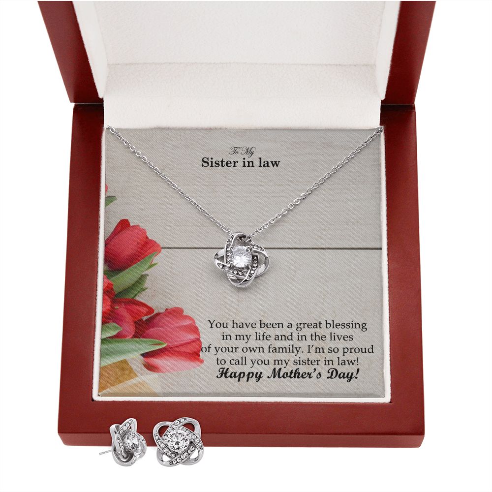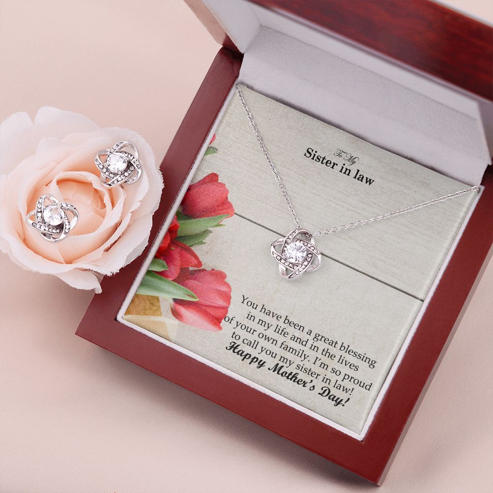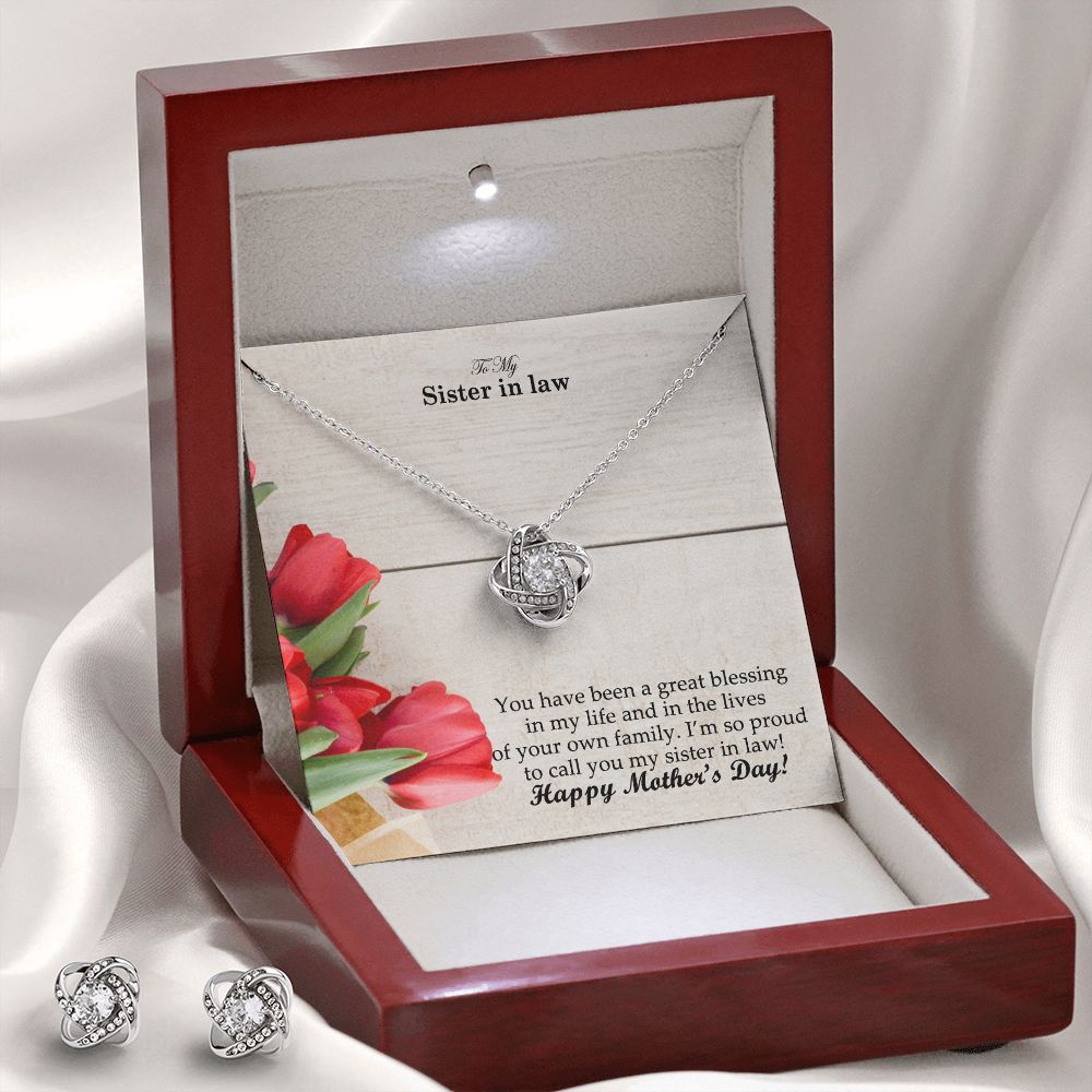 You Have Been A Great Blessing In My Life & In The Lives Of Your Own Family - Happy Mother's Day! - Love Knot Earring & Necklace Set - Gift for Sister in law