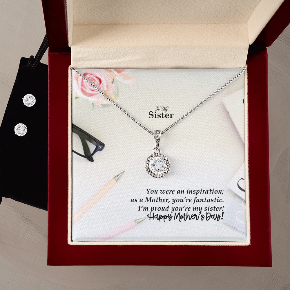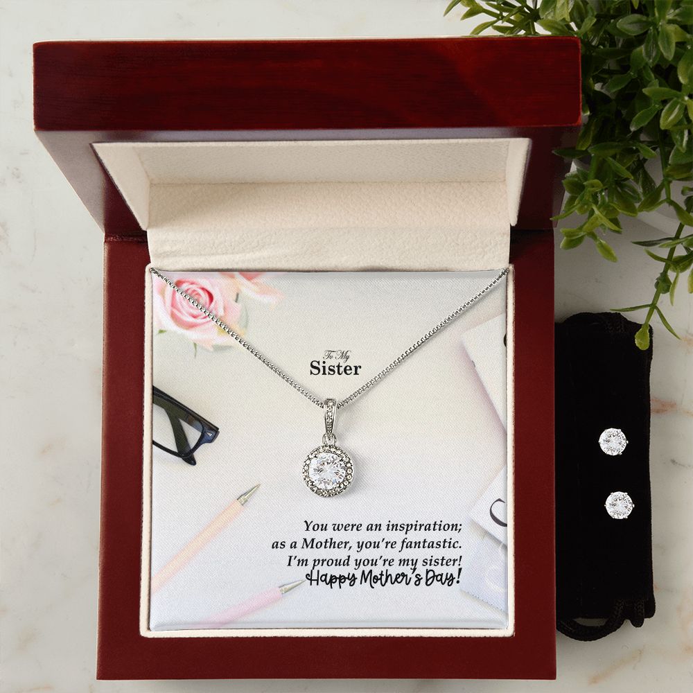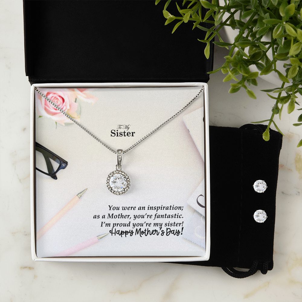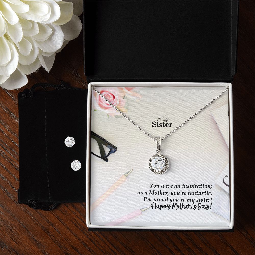 You Were An Inspiration; As A Mother, You're Fantastic. I'm Proud You're My Sister! - Happy Mother's Day - Eternal Hope Necklace & Clear CZ Earrings - Gift for Sister