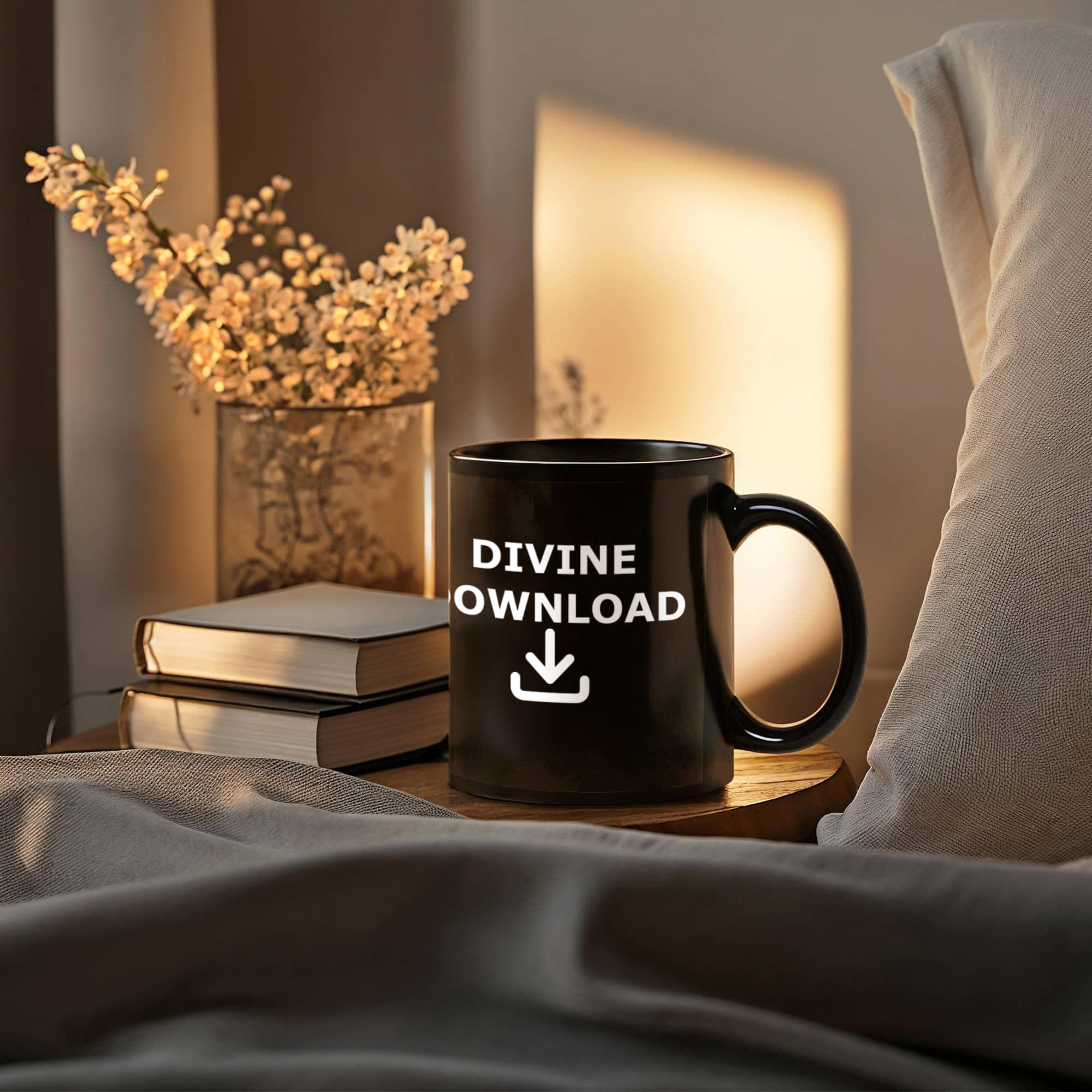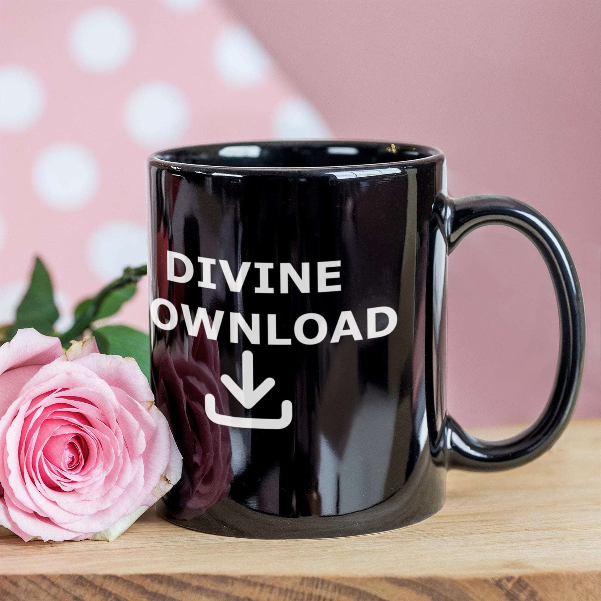 Divine Download - Black Ceramic Mug 11oz. & 15oz. - Gift for Her - Gift for Him